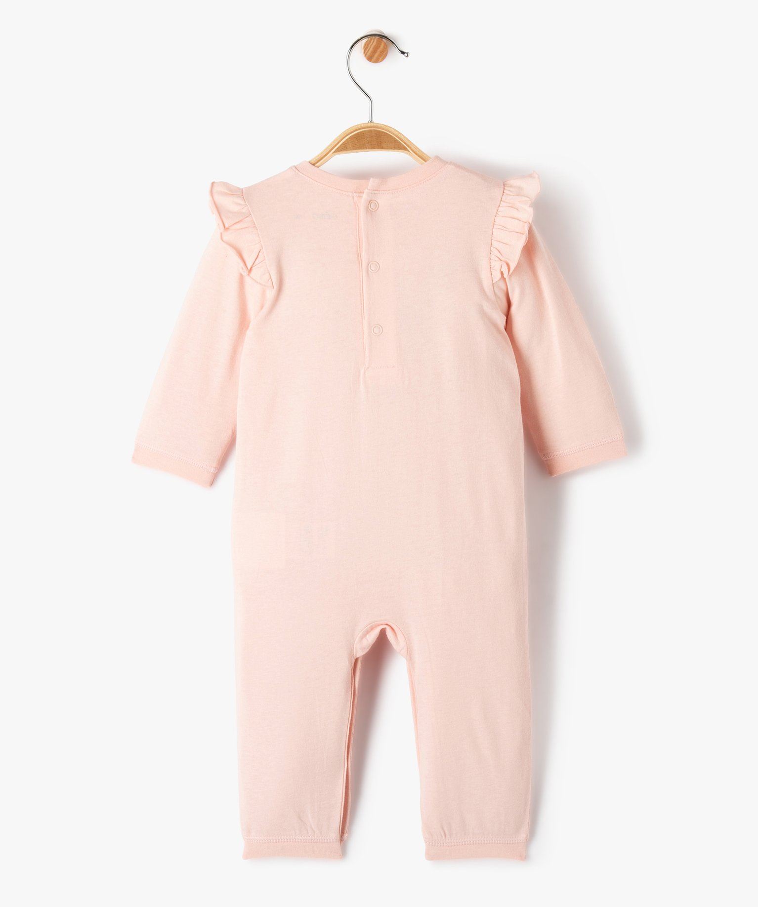 Une ravissante combinaison bébé en jersey de coton décoré sur la poitrine d'un motif renards et sur les épaules de jolis volants. Cette combi légère offre à votre tout petit une tenue hyper confortable et pleine de charme au quotidien. La combinaison longue est un premier vêtement bébé idéal comme tenue de jour. Elle est aussi parfaite comme pyjama. Finitions en bord-côte fin aux poignets et aux chevilles.