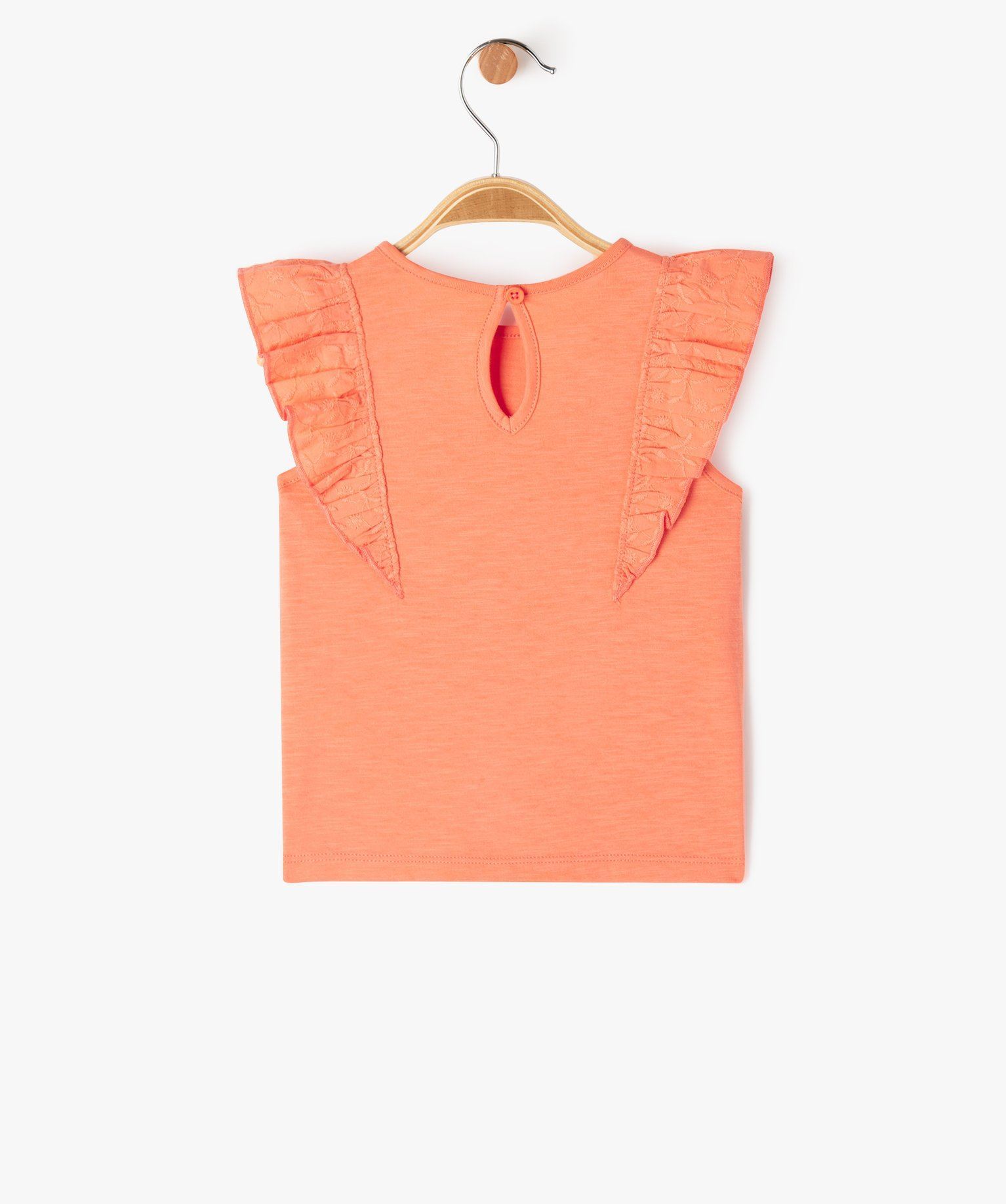 debardeur avec volants brodes sur les epaules bebe fille orange debardeurs