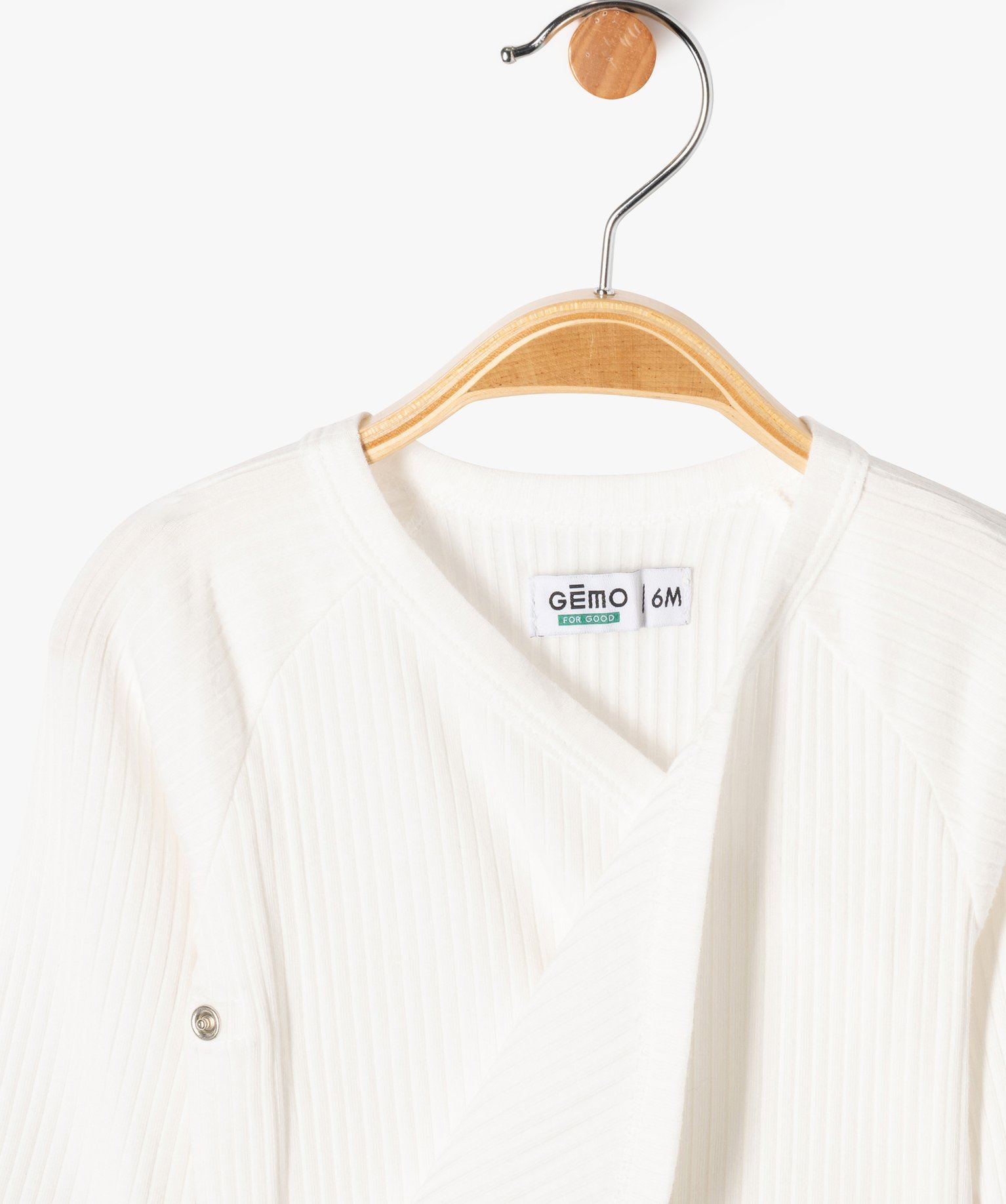 Cet ensemble évolutif pour bébé fille est aussi astucieux que charmant. Composé de trois pièces en coton côtelé, il comprend un body croisé, un pantalon en maille et un bonnet. Conçu pour s’adapter à la croissance des nourrissons, le body est doté de manches ultra-longues à retrousser et d'une double rangée de boutons-pression à l'entrejambe permettant un ajustement parfait. Le pantalon est doté de larges bords-côtes à la taille et aux chevilles, permettant de suivre la croissance de bébé. Le bonnet arbore un large noeud sur l’avant, ajoutant une délicate touche rétro à l’ensemble ! Un ensemble bébé décliné dans des couleurs tendres et orné de jolis motifs.