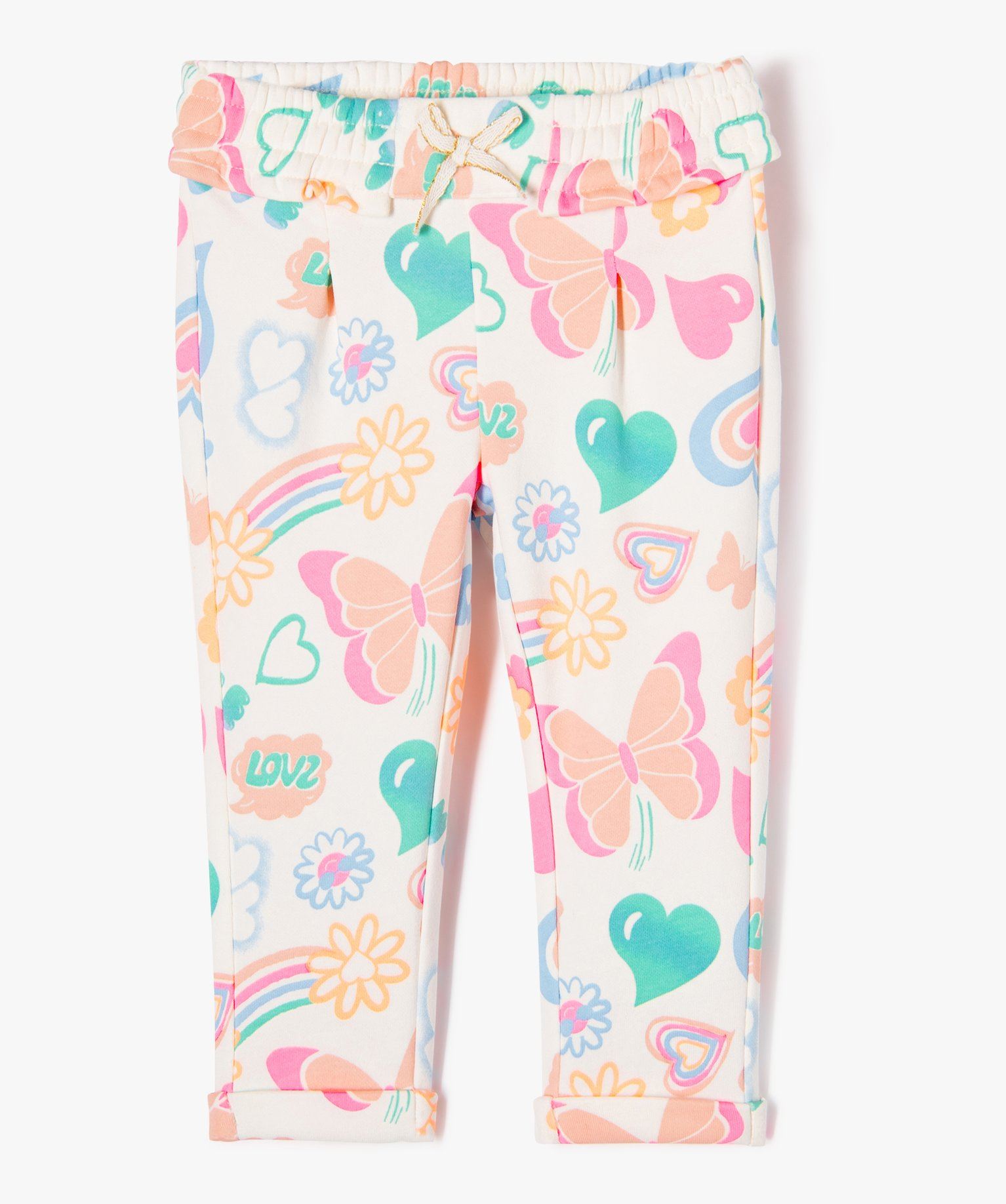 Vous allez craquer pour ce jogging à pinces très élégant, revisité dans une version maille pour apporter plus de confort aux tout-petits. Un pantalon bébé fille avec intérieur molletonné très doux, monté sur une ceinture élastiquée froncée et ornée d’un petit nœud pailleté. Ce pantalon en maille possède de petits revers cousus en bas de jambe. Il se porte avec une blouse imprimée ou un sweat pour un look élégant ou casual.