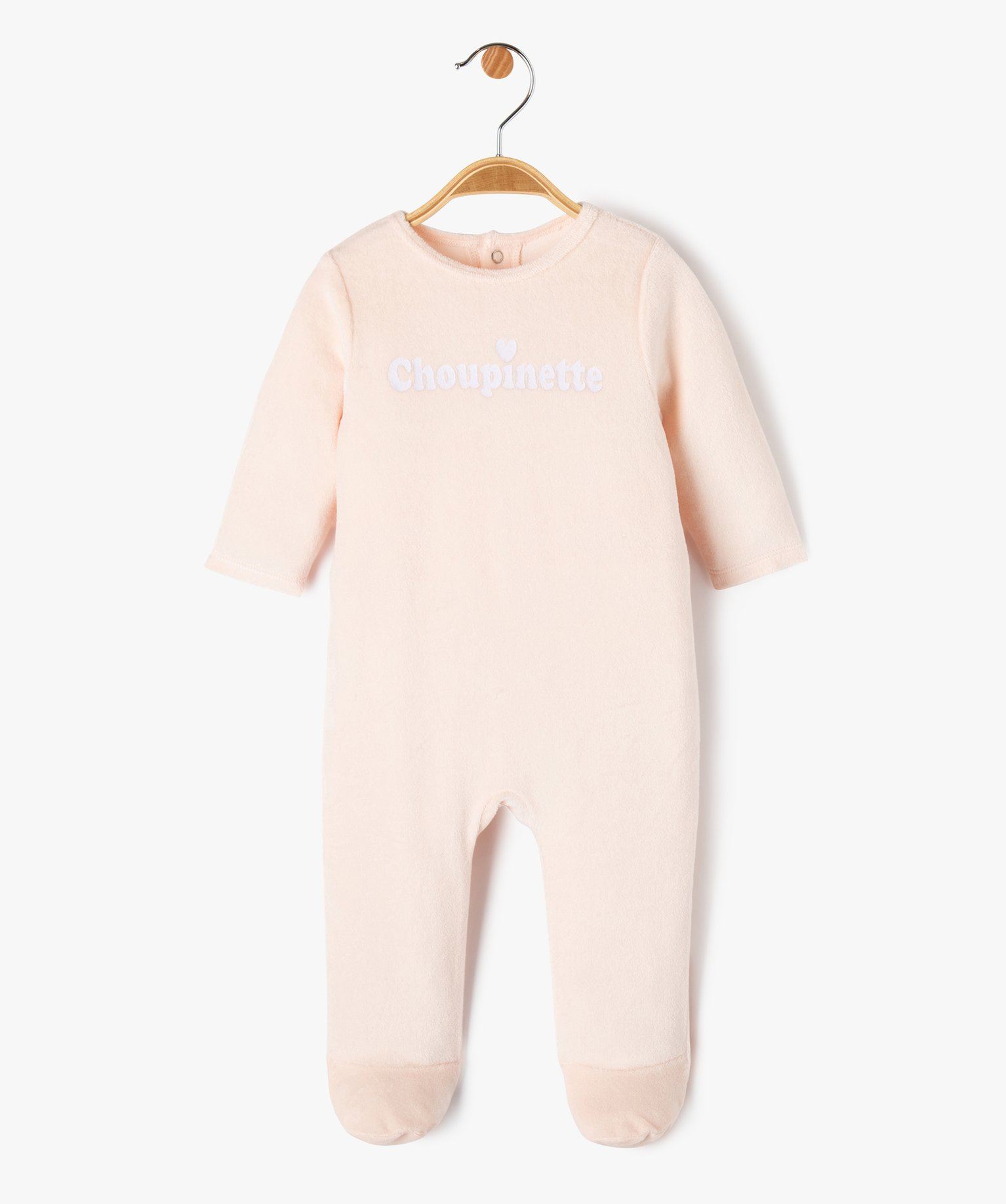 pyjama dors-bien en velours avec message bebe fille rose pyjamas velours