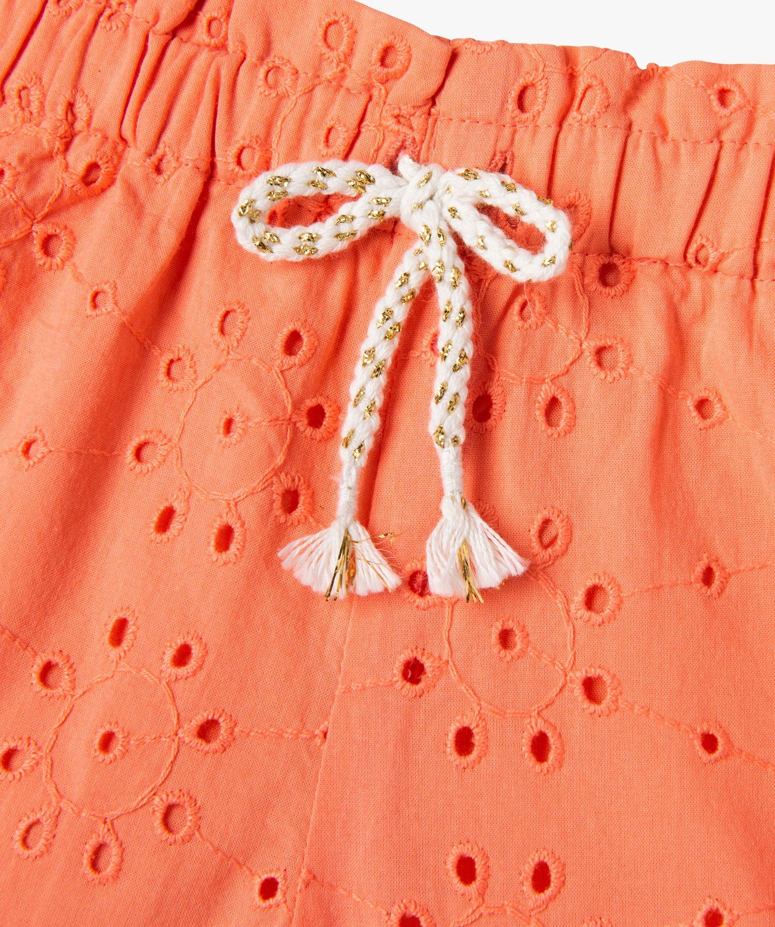 Ce joli short en coton offrira aux petites filles un maximum de style avec ses jolies broderies anglaises et sa petite cordelette incrustée de fil pailleté à la taille. Facile à enfiler grâce à sa ceinture élastique, il affiche une coupe ample. Un short bébé fille, entièrement doublé pour ne pas être transparent, à porter tout l’été avec un débardeur ou un tee-shirt à paillettes et une paire de sandales.