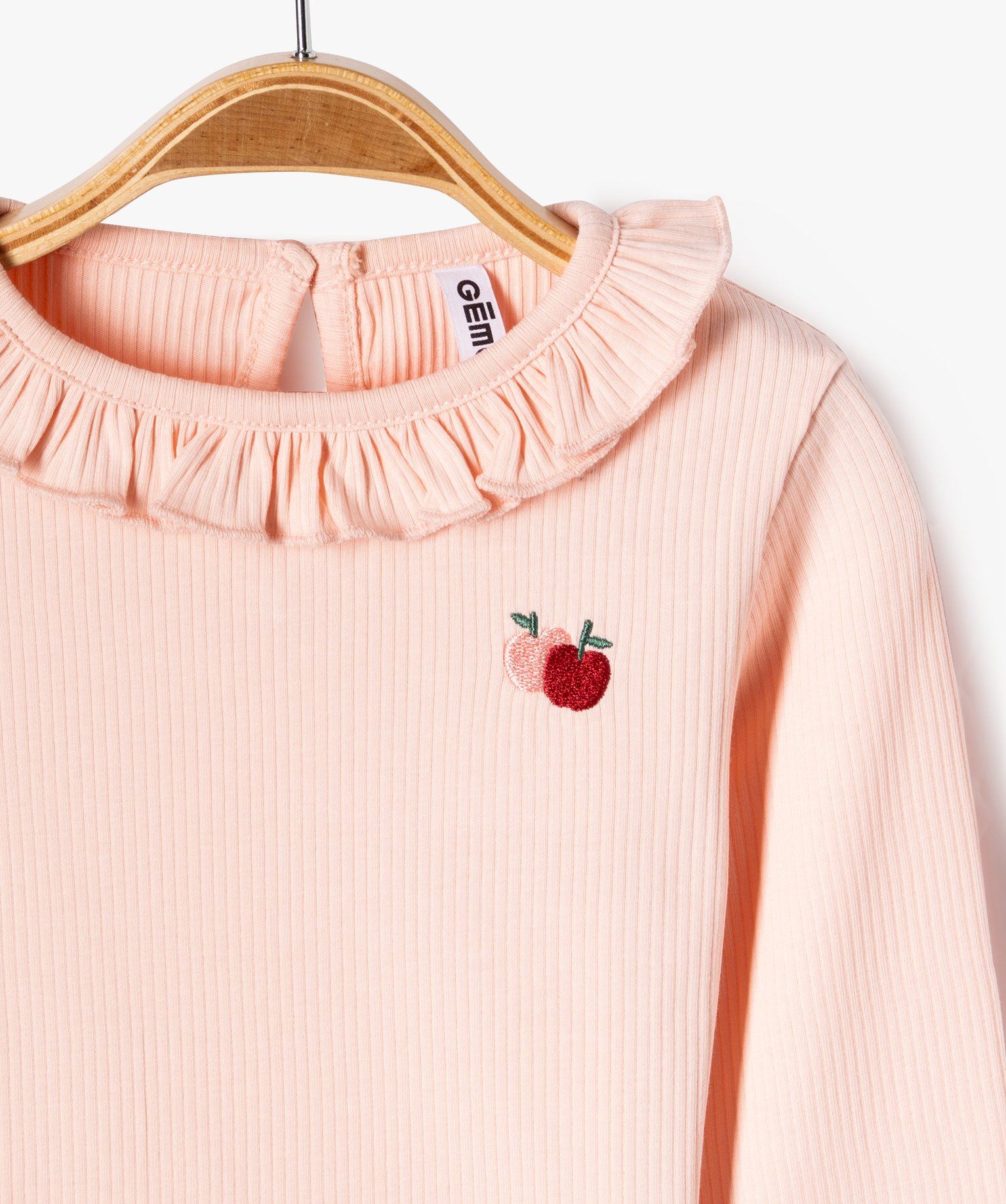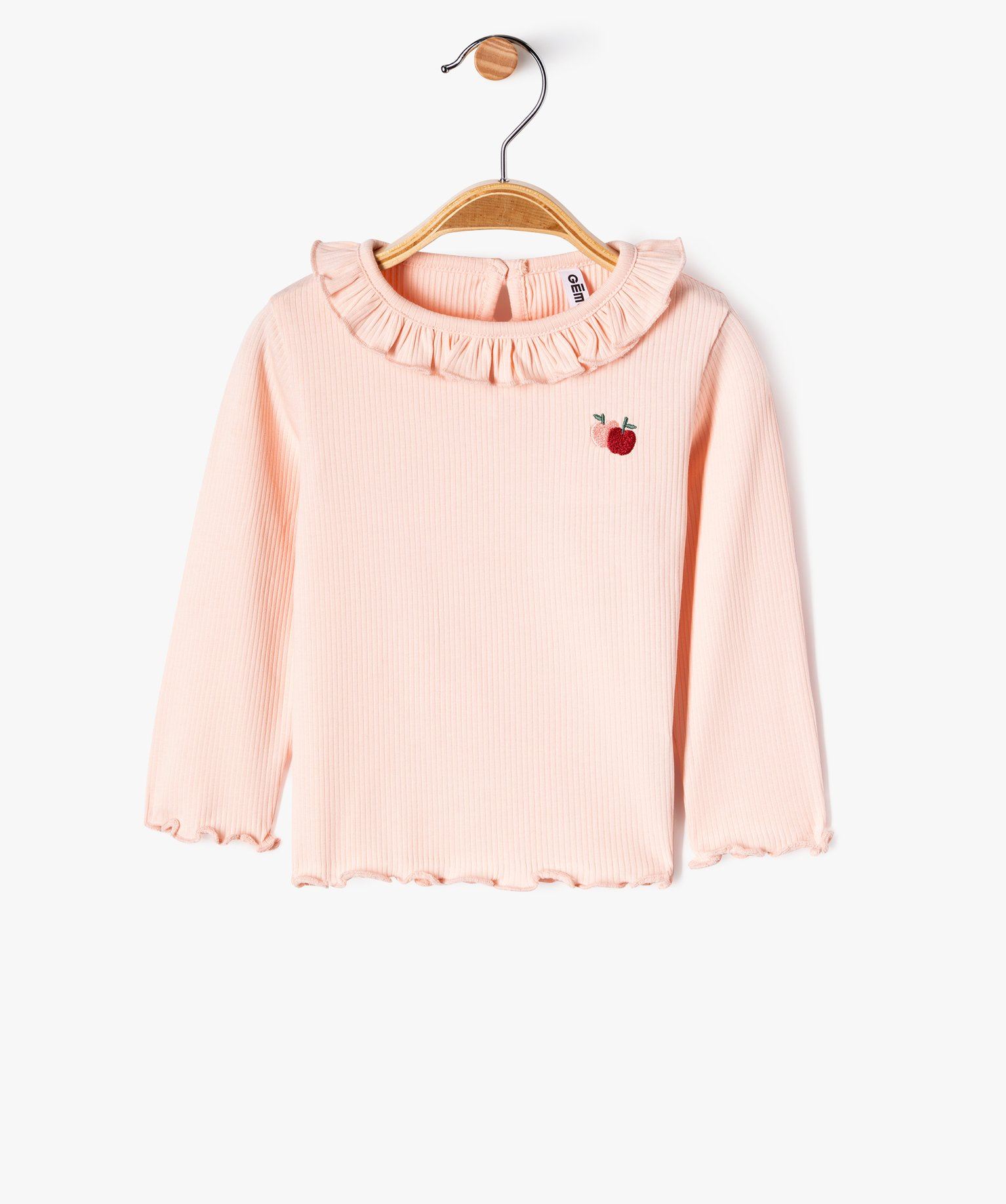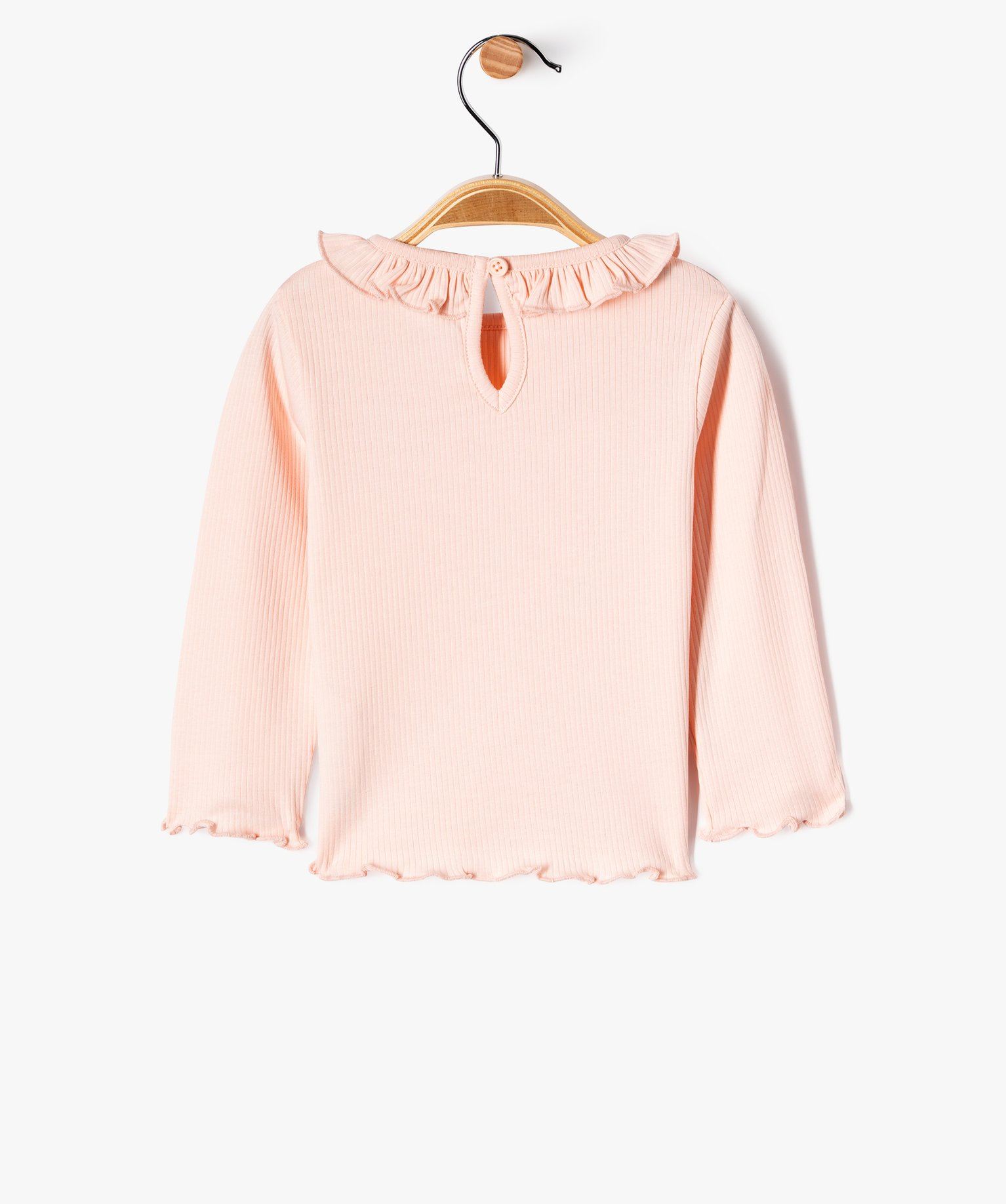Tee-shirt manches longues avec col à volant bébé fille rose standard