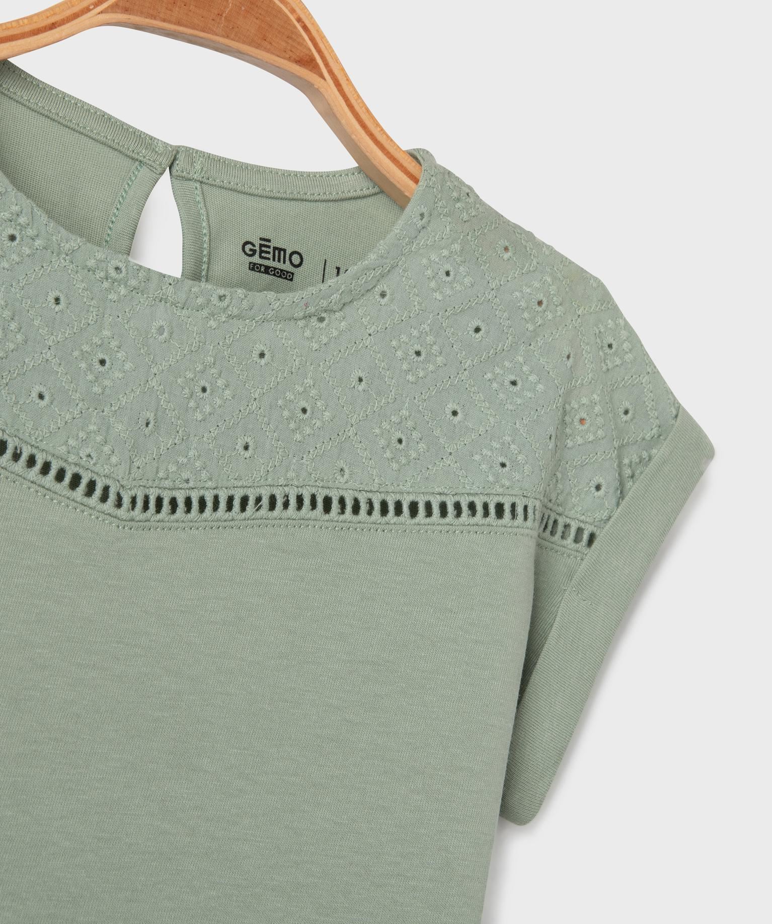 Cet élégant tee-shirt à manches courtes apportera une délicate touche bohème aux tenues des petites filles. Il est orné d’une empiècement brodé sur le haut du buste, souligné par un liseré ajouré et possède des revers cousus au bord des manches. Ce tee-shirt bébé fille possède un col rond et se ferme par un bouton dans le haut du dos, accompagné d’une ouverture en forme de goutte. Un tee-shirt brodé à associer à une petite jupe à volants ou un pantalon ample.