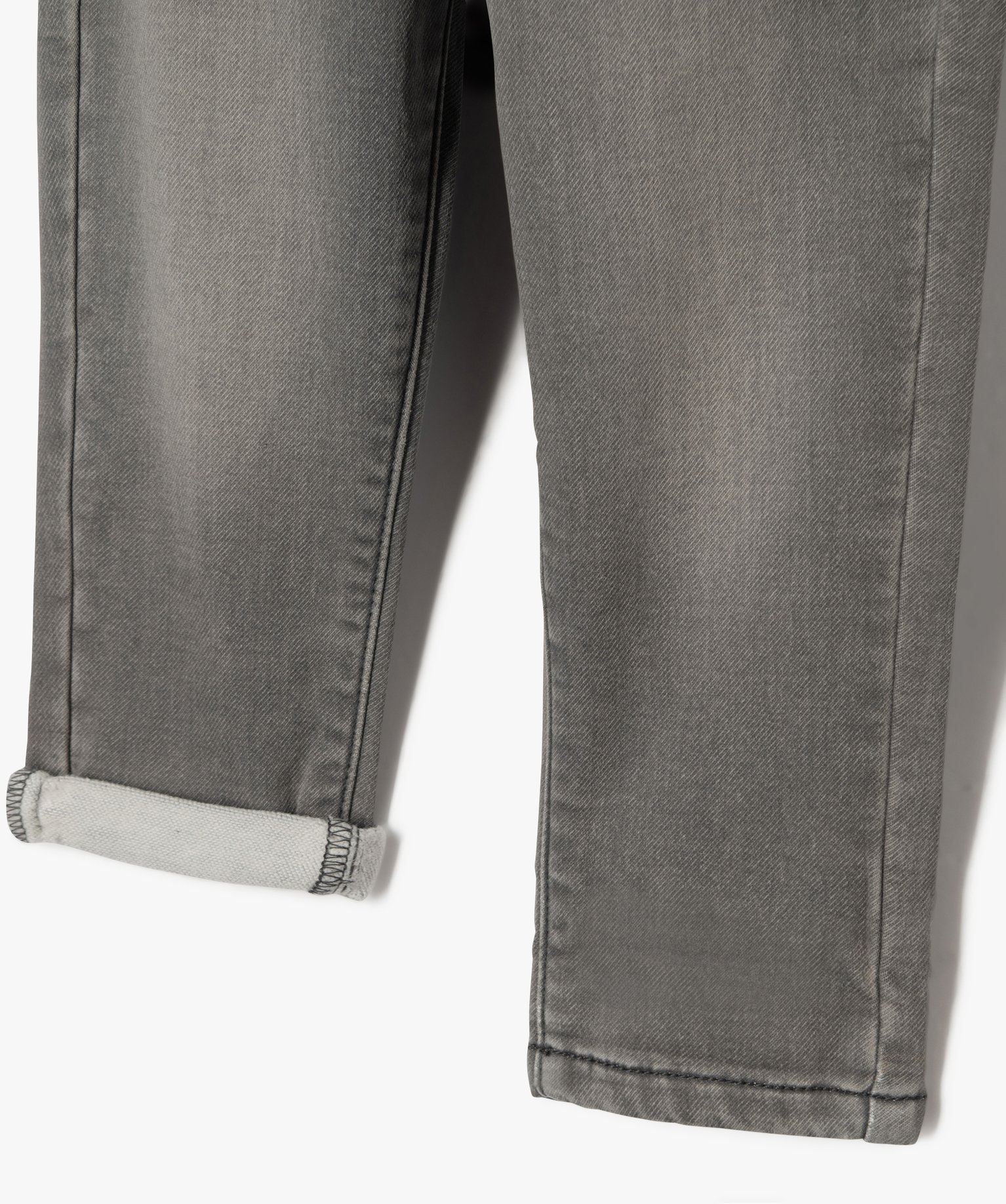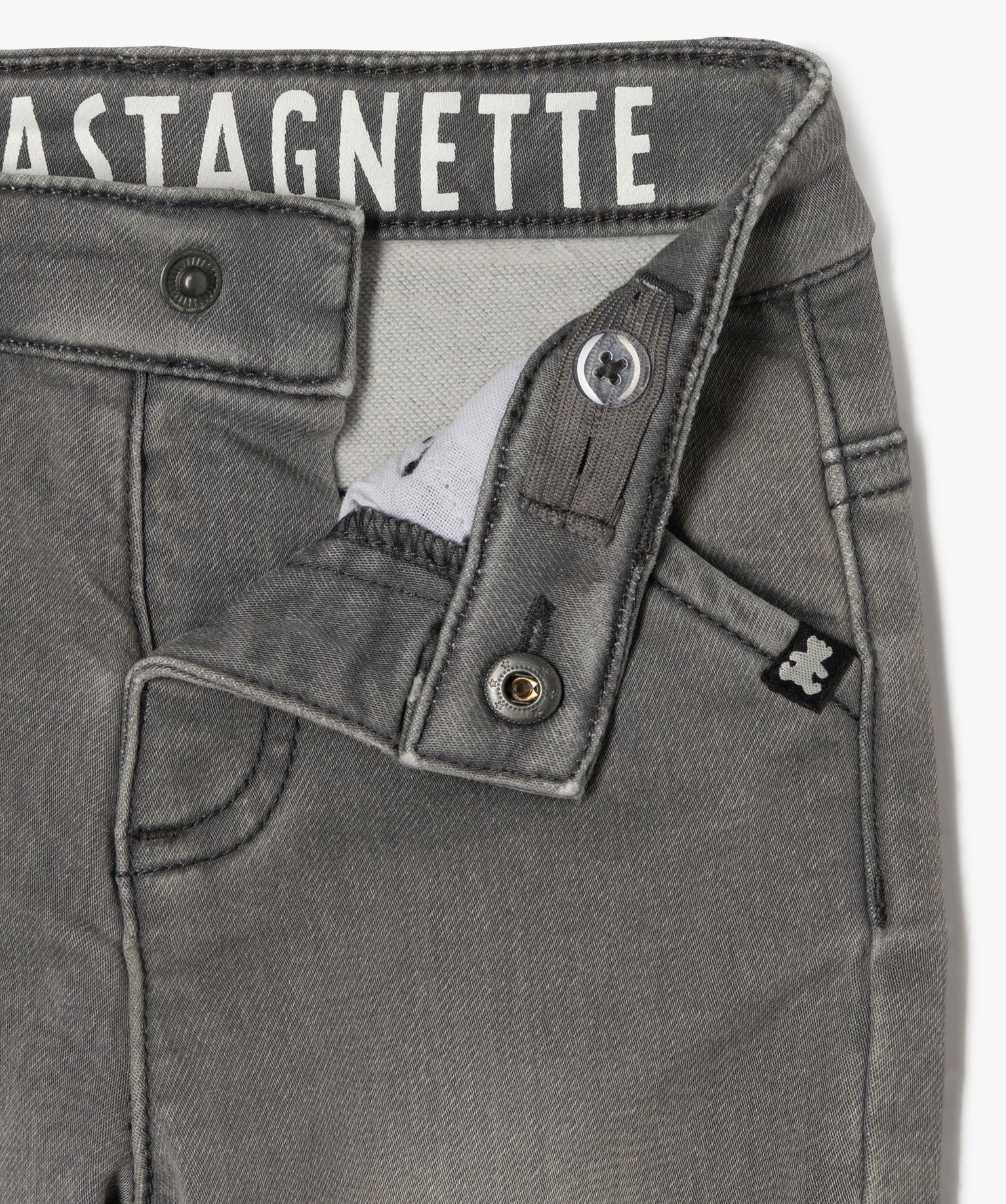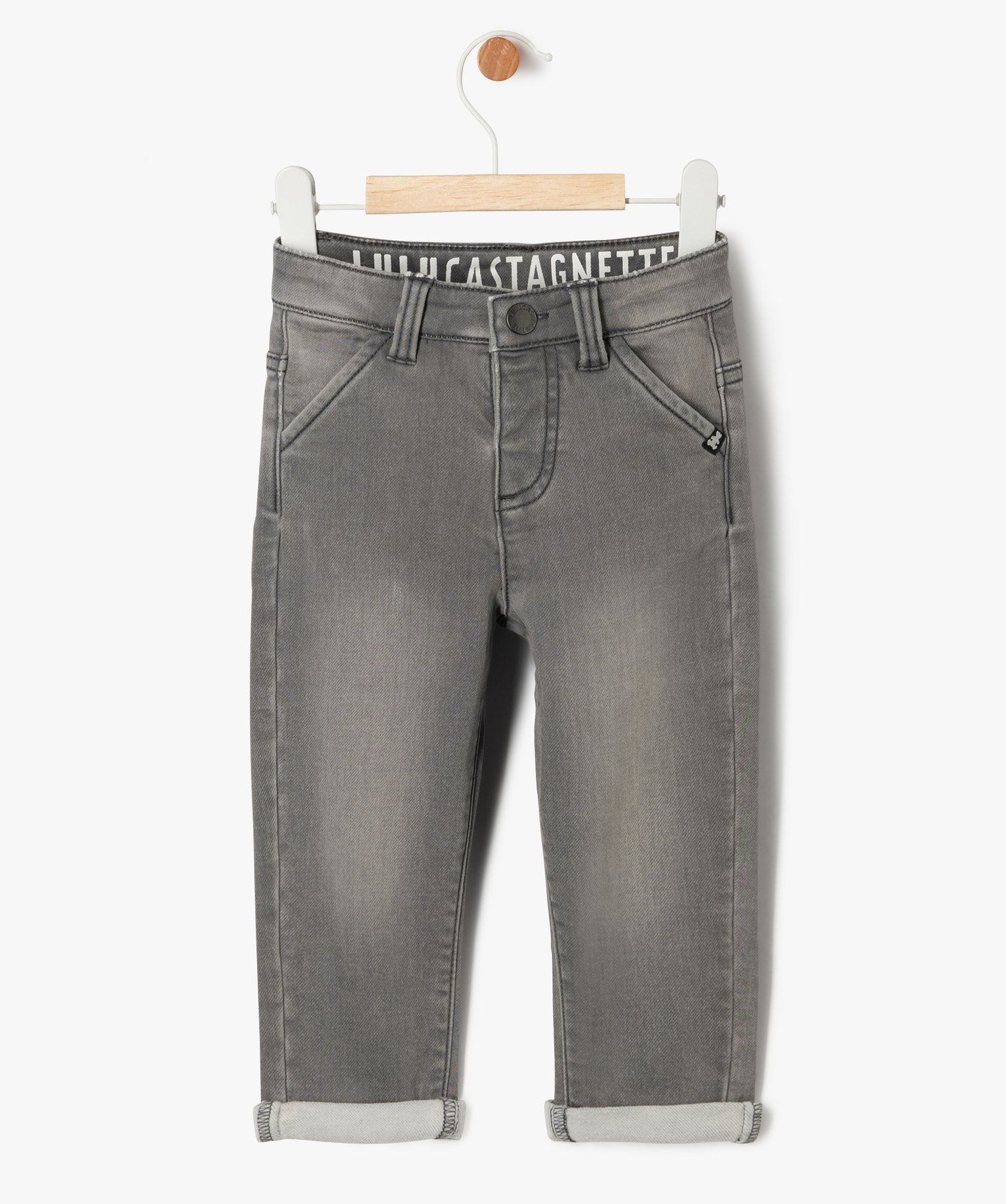 Optez pour un style tendance et confortable avec ce jean bébé garçon de la marque LuluCastagnette. Ce pantalon en denim coupe slim est confectionné en coton stretch extensible, assurant une grande liberté de mouvement à votre enfant. Pratique, le jean se ferme par un bouton-pression et possède une taille réglable grâce à des élastiques intérieurs. Doté de deux poches à l'avant et de passants pour ceinture, il est légèrement délavé pour un look moderne. Pour un style casual chic, retroussez le bas et associez-le à des baskets, un tee-shirt manches longues et une chemise ouverte.