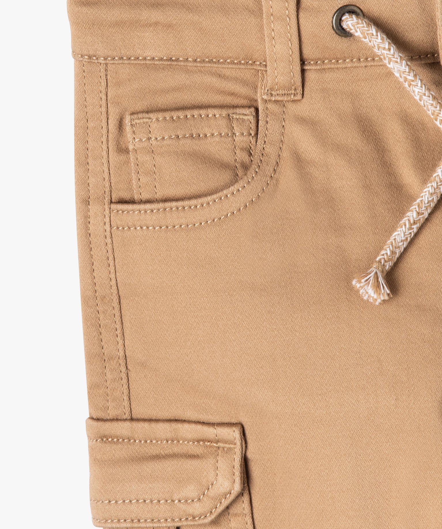 Offrez une allure chic et décontractée à votre bout de chou grâce à ce pantalon doté de larges poches à rabat sur les cuisses. Un pantalon bébé garçon confectionné dans une belle toile de coton aux reflets irisés, avec une pointe d’elasthanne pour plus de confort. Ce pantalon s’ajuste à la taille par un cordon coulissant bicolore ajoutant une touche de style. Il se porte en version casual avec un pull torsadé et des boots, ou en version plus chic avec une chemise et des derbies. Trois poches sur l'avant. Fermeture bouton pression.