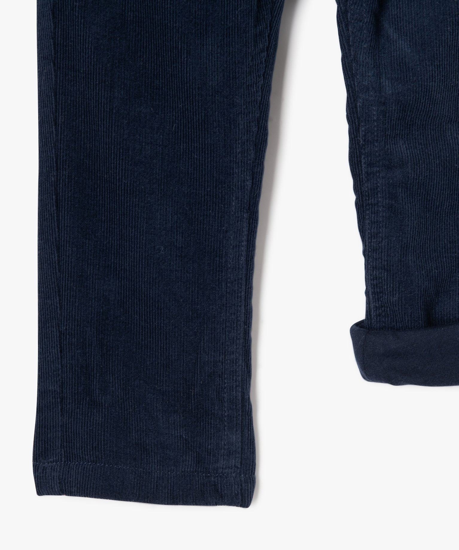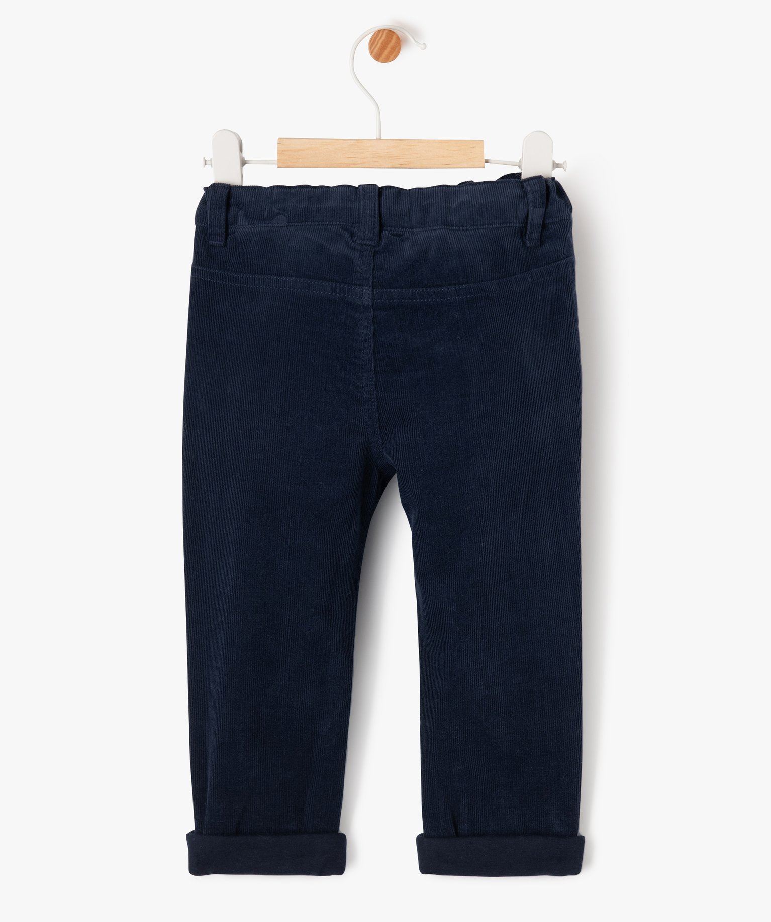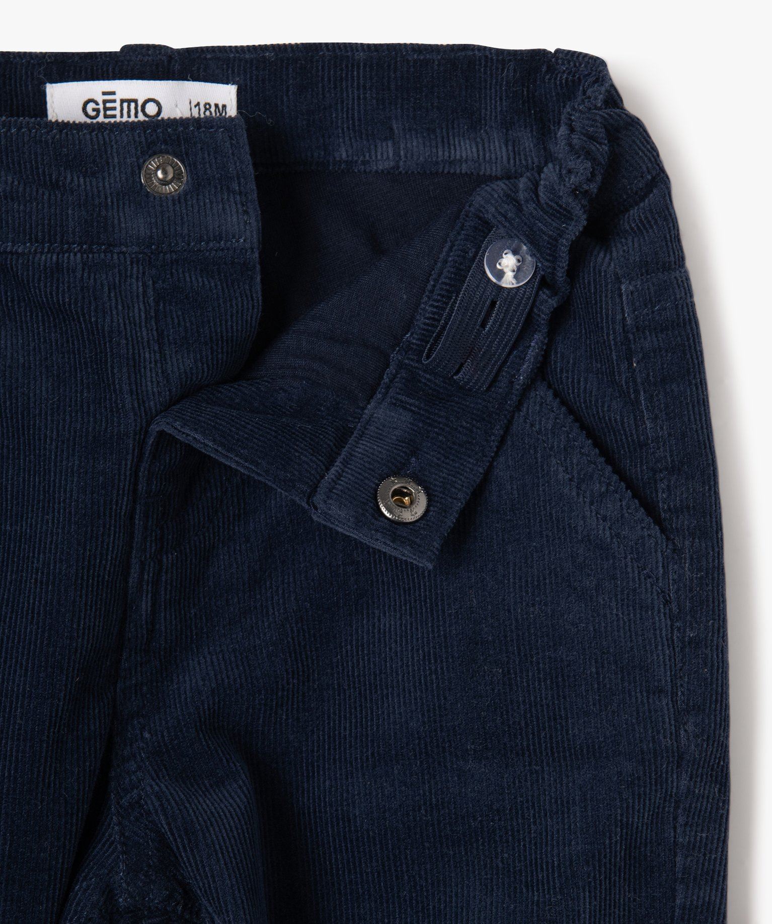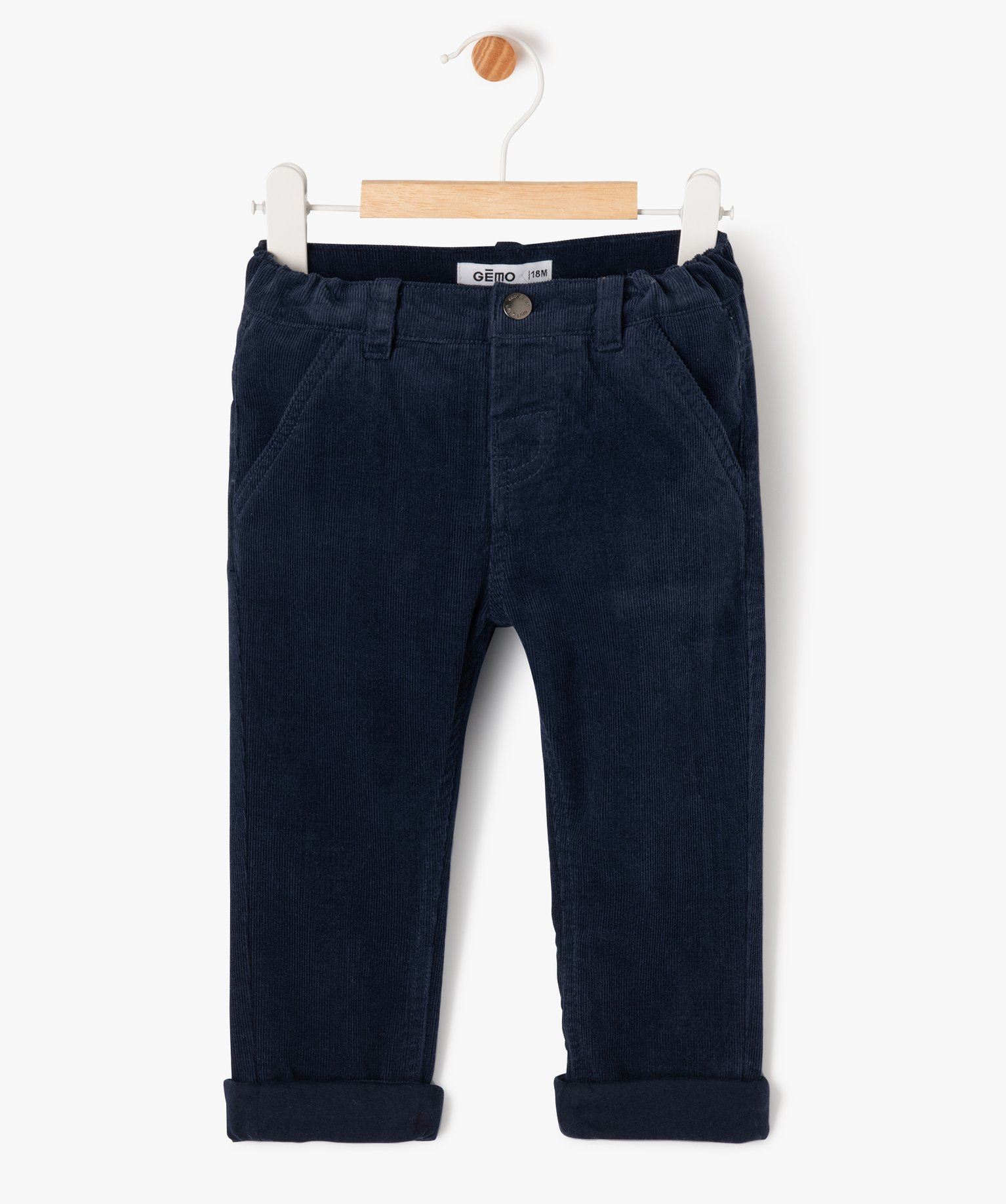 Saison après saison, le pantalon en velours reste un essentiel du vestiaire des bébés ! Ce pantalon bébé garçon doté d’une doublure en jersey offre un grand confort aux tout-petits. Le pantalon s’ajuste parfaitement à chaque morphologie grâce sa taille réglable par un système d'élastique intérieur, et se ferme facilement grâce à son bouton pression. Il se porte idéalement avec le bas retourné, des sneakers et un sweat imprimé. 2 poches italiennes. Passants pour ceinture.