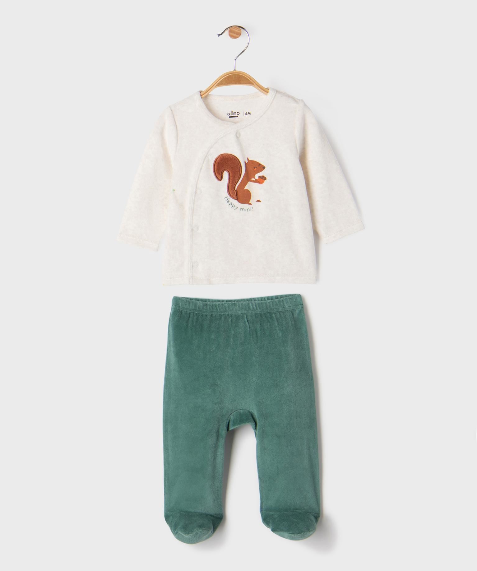 Offrez à votre bébé des nuits douces et réconfortantes avec cet adorable pyjama 2 pièces en velours. Conçu pour allier confort et style, ce pyjama bébé se compose d’un haut à manches longues, délicatement orné d’un motif écureuil en relief, et fermé par des boutons-pression sur l’avant pour un habillage facile. Son pantalon à pieds au coloris contrastant, garde les petits petons bien au chaud tout au long de la nuit. Une tenue irrésistiblement douce, idéale pour des instants cocooning et des nuits paisibles.