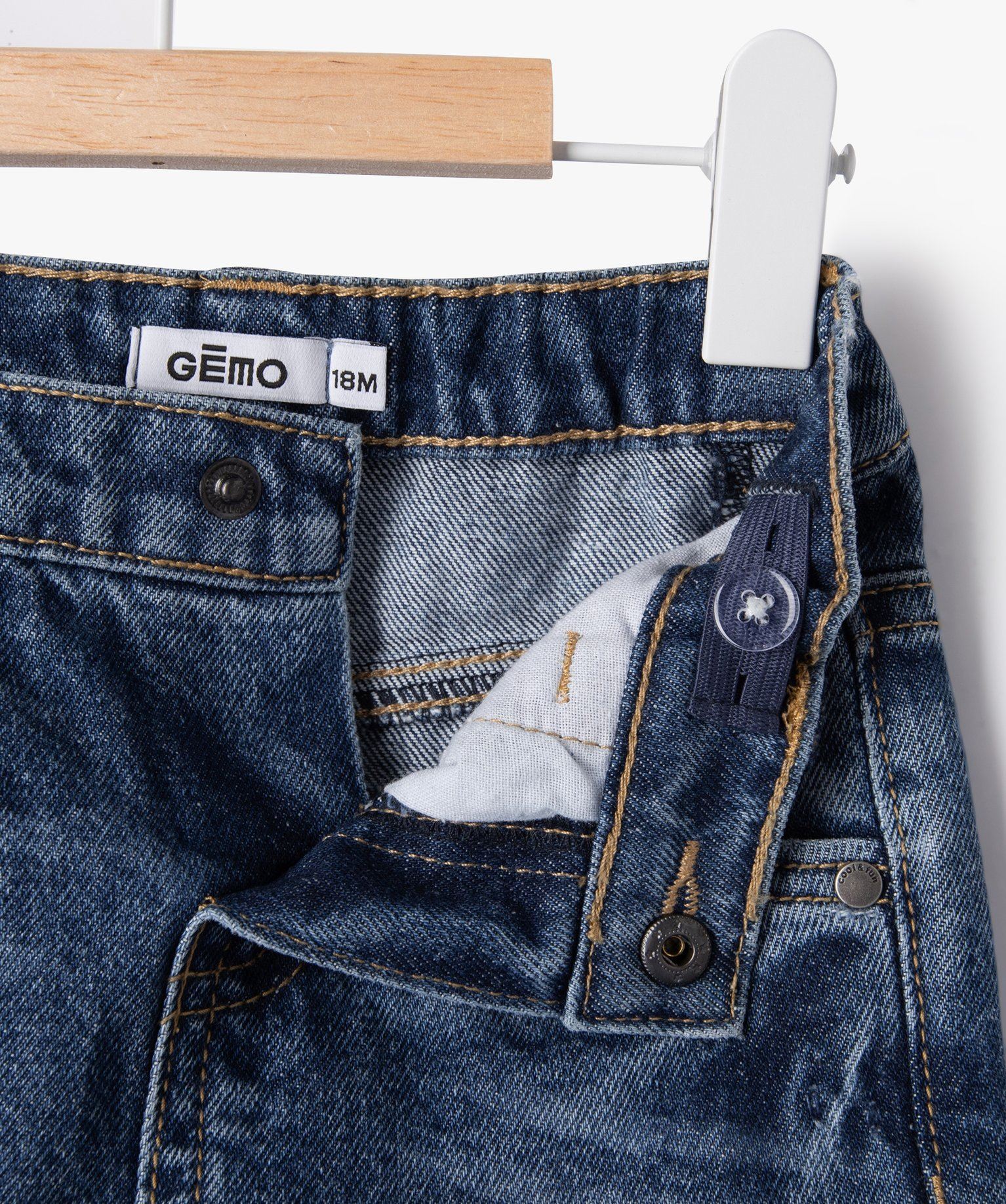 Incontournable des dressings, quel que soit l'âge : le short en jean délavé a forcément sa place dans le vestiaire de votre bambin. Associé à un tee-shirt, une chemise ou un polo, il fait partie des indispensables. Ce short bébé garçon est confectionné dans une toile denim 100% coton au style authentique. Son délavage est mis en relief par la poche ticket contrastante. Ce short en jean se ferme par un bouton-pression et s’ajuste à la taille grâce à un élastique intérieur. 3 poches rivetées devant et 2 poches plaquées au dos. Étiquette cousue à l’arrière de la ceinture.