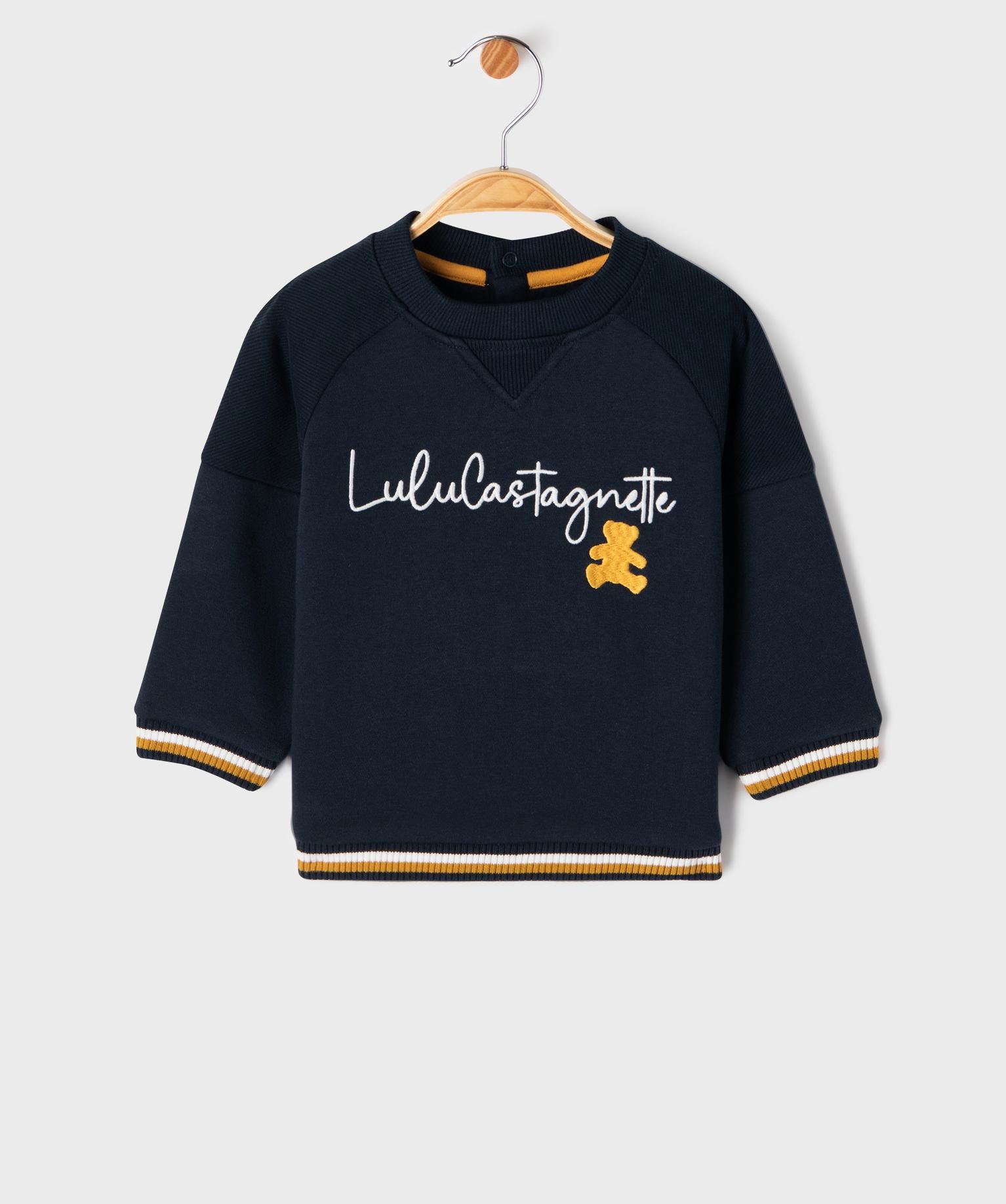 Assurez à votre enfant un look ultra tendance avec ce joli sweat LuluCastagnette. Un basique revisité par la célèbre marque à l’ourson, affichant sa signature en version brodée sur le buste. Ce sweat bébé garçon se distingue également par des empiècements texturés sur les épaules et sous le col, ainsi que par ses finitions en bord-côte tricolores. Chaud et agréable à porter grâce à son intérieur molletonné, il conjugue confort et style au quotidien. Un sweat brodé à porter avec le pantalon assorti ou avec un jean. Col rond avec boutons pression en haut du dos.