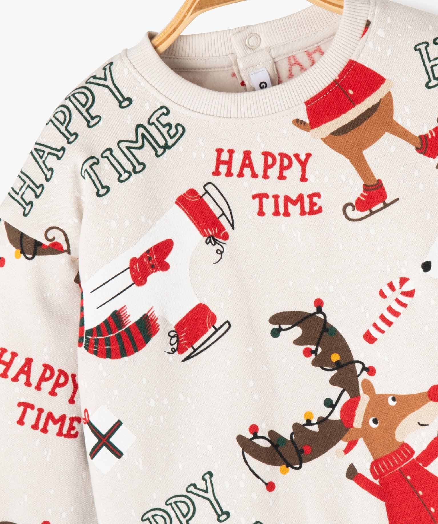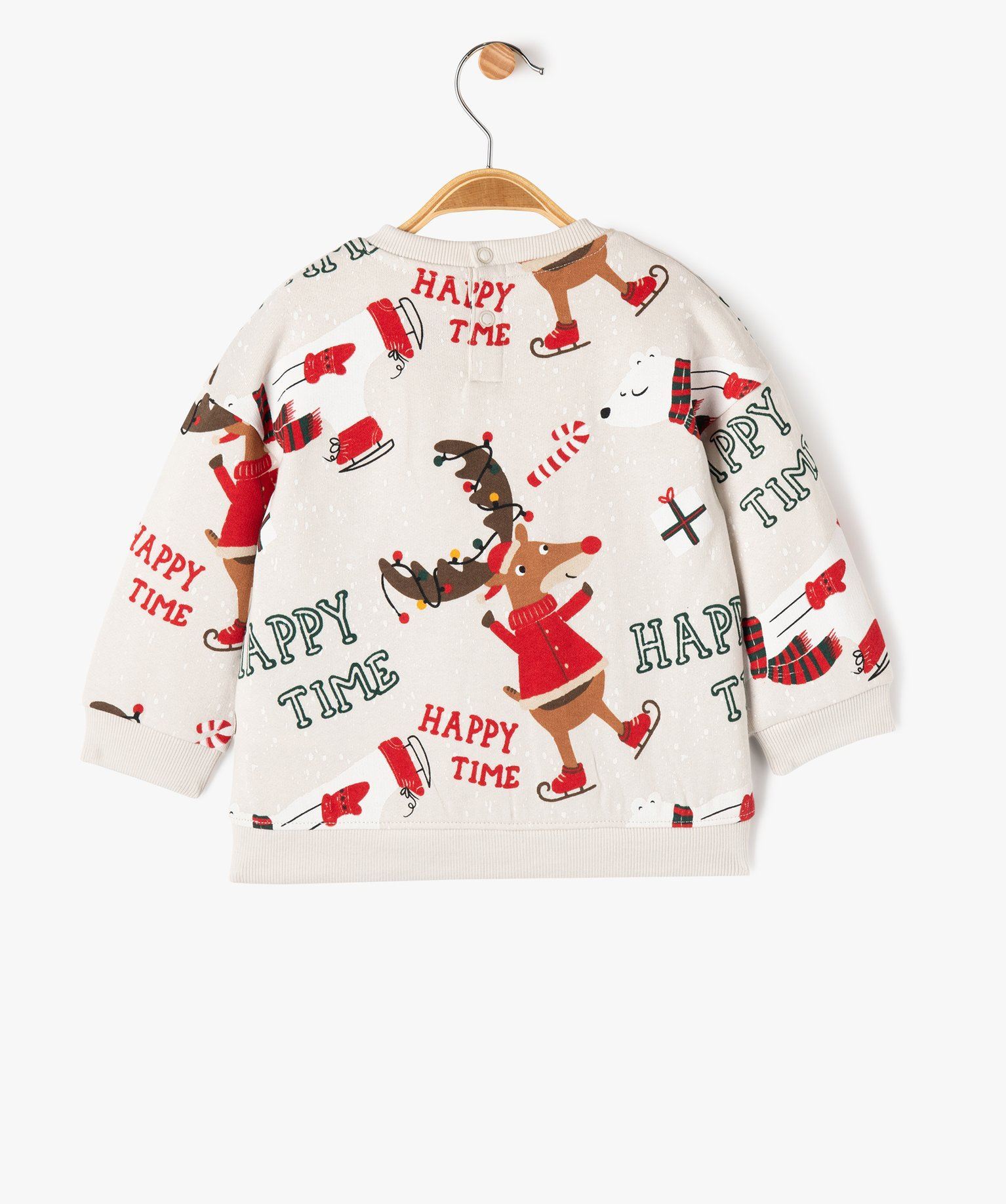 Spécialement conçu pour les fêtes de fin d'année, ce sweat à motifs Noël ajoutera une touche de couleur et de fantaisie aux tenues d'hiver de votre bambin. Un sweat bébé garçon décliné dans une palette de couleurs traditionnelles, décoré de motifs rigolos (rennes, ours polaires, cadeaux, sucres d'orge, dinos...) pour assurer aux bébés un look festif. Un sweat avec intérieur molletonné doux et chaud à porter avec un pantalon en maille, un jogging ou encore un jean. Col rond avec 2 boutons pression dans le haut du dos. Finitions bord-côte.