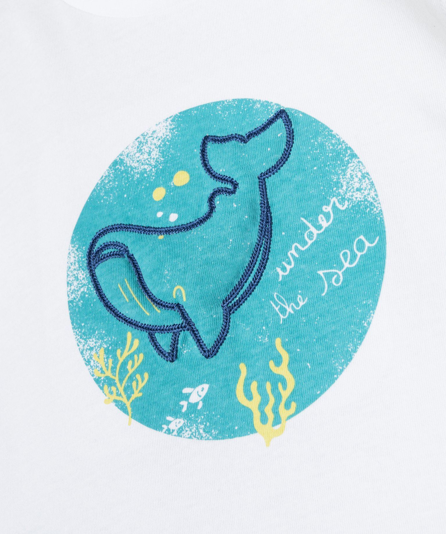 Allure estivale assurée pour les bouts de chou grâce à ce tee-shirt à manches courtes orné d’un motif marin brodé. Un motif en relief qui apportera une touche d’originalité aux tenues des tout-petits. Ce tee-shirt bébé garçon arbore une coupe droite classique avec col rond en bord-côte et boutons sur l’épaule pour faciliter le passage de la tête. Un tee-shirt à ranger parmi les basiques et à porter avec un short en jean et des sandales.