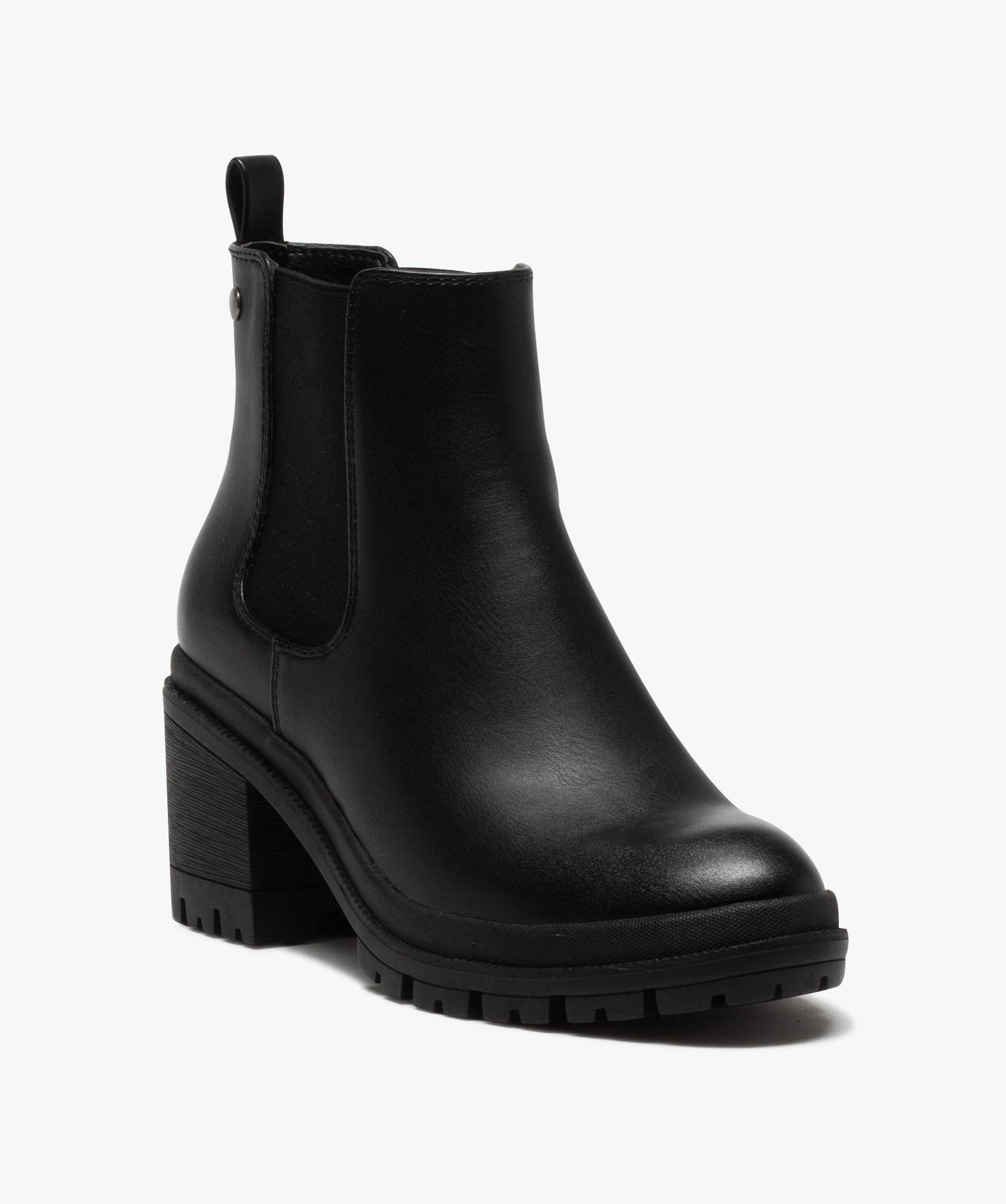 Affirmez votre côté rock ! Ces boots femme se distinguent par leur semelle épaisse et crantée, rehaussée d’un talon carré de 7 cm avec un patin de 2,5 cm. Une belle cambrure, qui affinera la silhouette tout en restant confortable à la marche. La tige est inspirée des boots chelsea avec deux larges élastiques sur les côtés du col. On portera ces boots pour femme dans un total look monochrome, avec un jean slim et un pull oversize. Succès assuré !