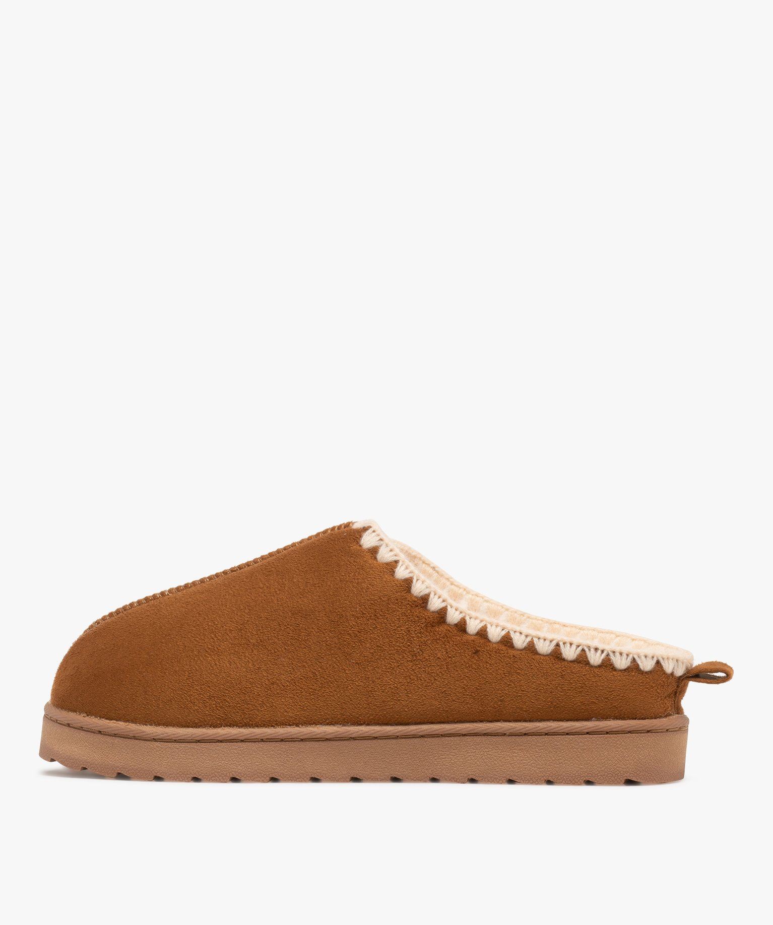 Ces mules d’intérieur séduiront les adeptes de mode. Des chaussons femme tendance dotés d’un dessus en suédine et d’une doublure en maille peluche ultra douce. Leur col est décoré de jolies broderies et une couture ajoute une touche de relief sur le dessus du pied. Ces chaussons chauds reposent sur une épaisse semelle crantée ultra légère. Ils s’accorderont aussi bien avec un ensemble homewear, qu’avec un jean et un pull en maille, pour une tenue confortable au top du style !