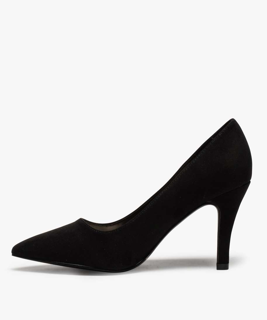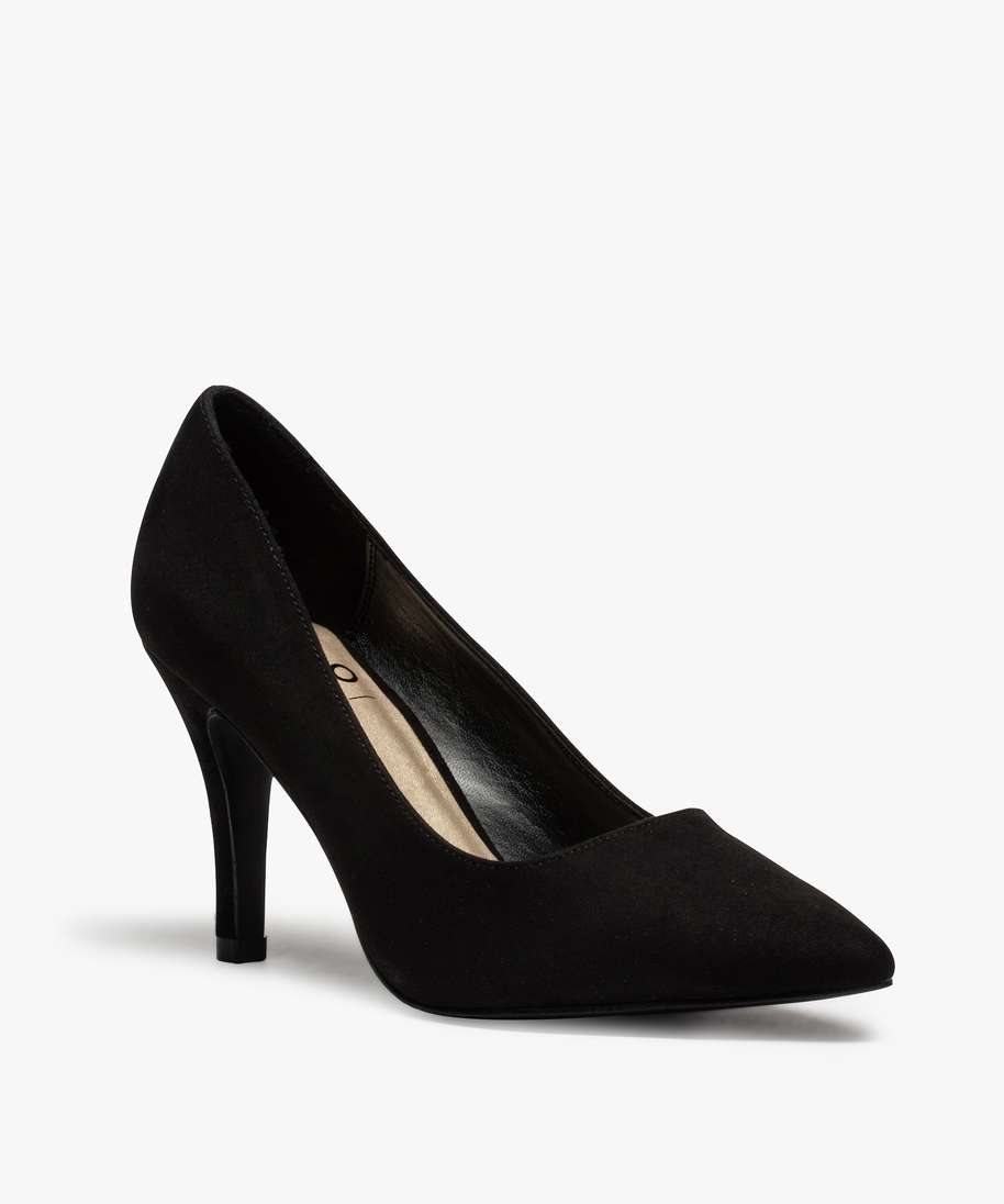 Les pieds larges méritent aussi des chaussures féminines et élégantes ! Gémo propose ici des escarpins femme aux lignes classiques et résolument glamour. Large échancrure sur le dessus et talon aiguille sont au rendez-vous pour dégager une belle cambrure du pied. Ces escarpins sont confectionnés sur une semelle intérieure rembourrée en mousse et légèrement élargie pour que toutes les morphologies de pieds y trouvent leur confort. A porter avec une jupe crayon ou un pantalon 7/8.