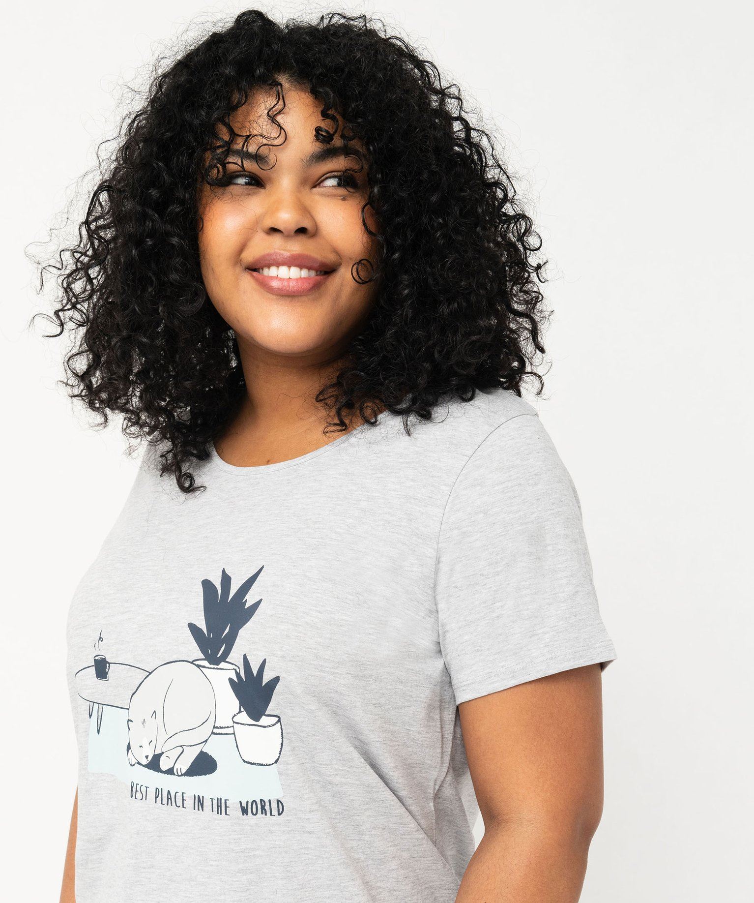 chemise de nuit a manches courtes avec motifs femme grande taille gris nuisettes chemises de nuit