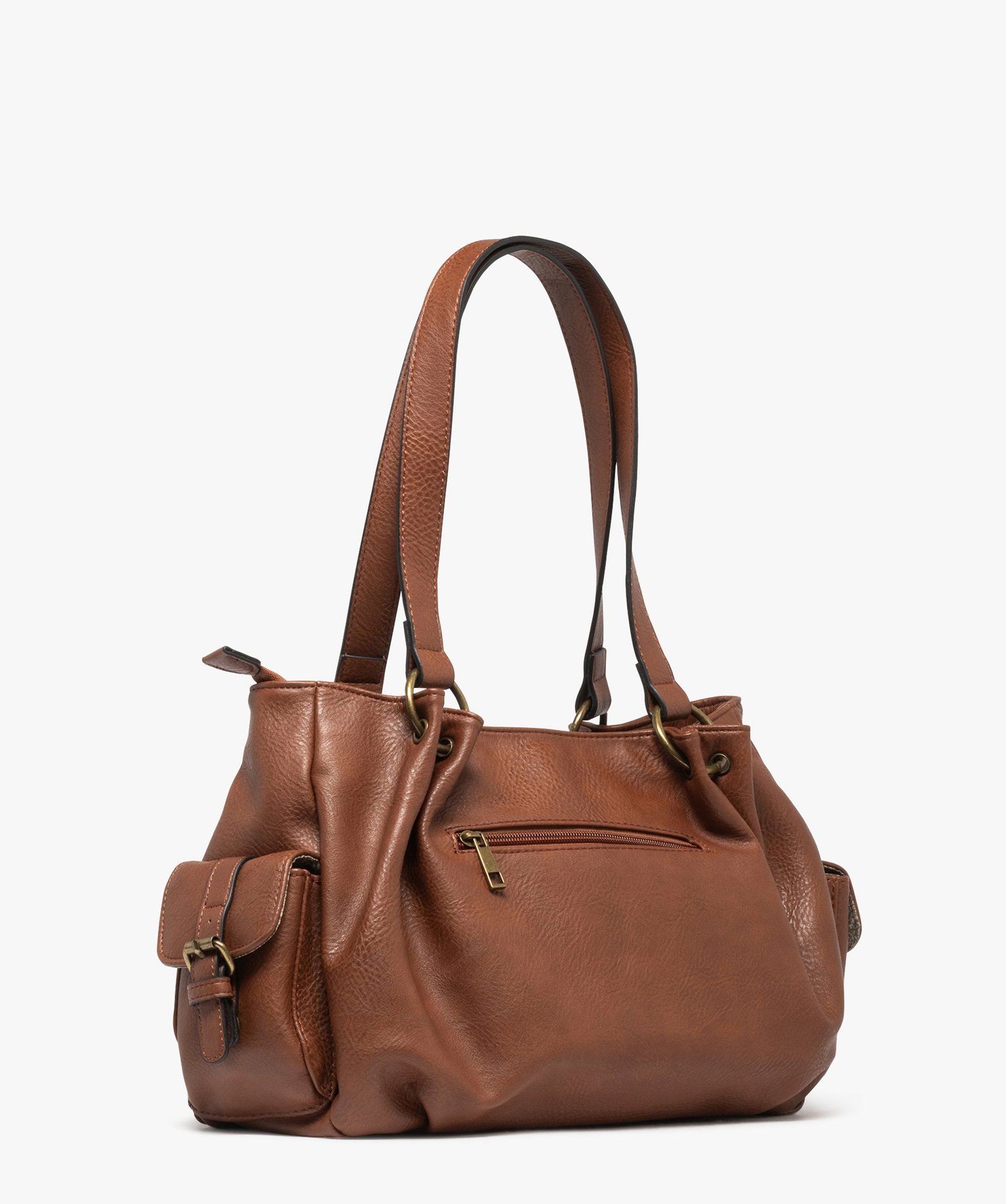 Un sac à main très pratique avec son grand volume et ses nombreuses poches intérieures et extérieures. Ce sac pour femme possède une fermeture zippée et une doublure textile ravissante avec son motif fleurie. Un grand sac au look féminin et élégant idéal pour transporter toutes les affaires personnelles et professionnelles. On le porte à la main ou sur l’épaule grâce à ses deux anses plates. Pompons décoratifs. 2 poches latérales à rabat aimanté décoré d'une boucle. Une poche zippée au dos. À l'intérieur : 1 grande poche zippée, 1petite poche zippée, 2 poches plaquées.
