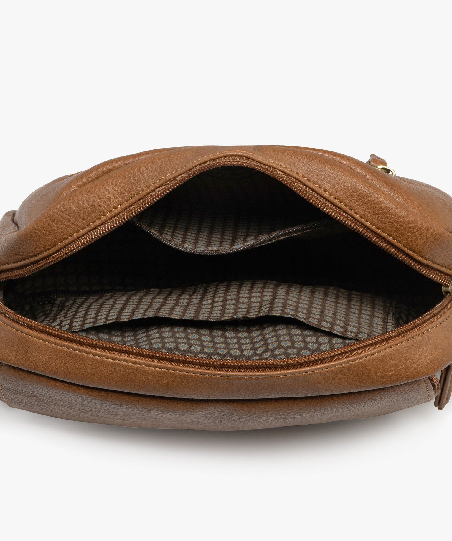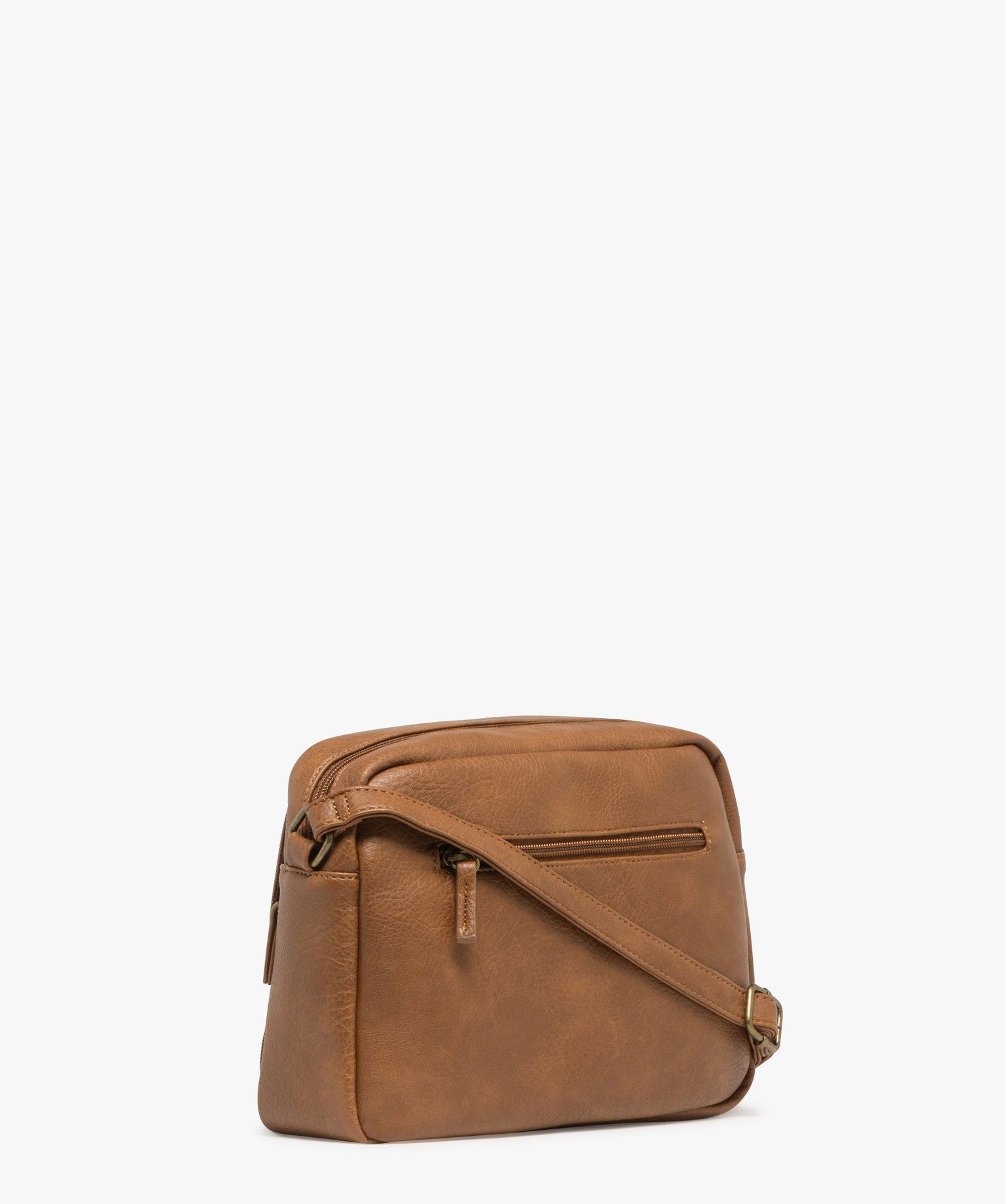 Ce sac besace en matière synthétique veinée cuir imitation orné de deux pompons ajoute une touche bohème à vos looks du quotidien. Il se porte à l'épaule ou croisé, grâce à une bandoulière ajustable. Son compartiment principal avec pochette zippée et pochette plaquée se ferme à l'aide d'un zip. Sur le devant, une grande poche se ferme grâce à un bouton aimanté sous le rabat. 2 petites pochettes zippées devant et une poche zippée au dos permettent de ranger de petits objets. Ce sac femme au format idéal sera le compagnon idéal au quotidien. Doublure tissu à motifs fleuris.