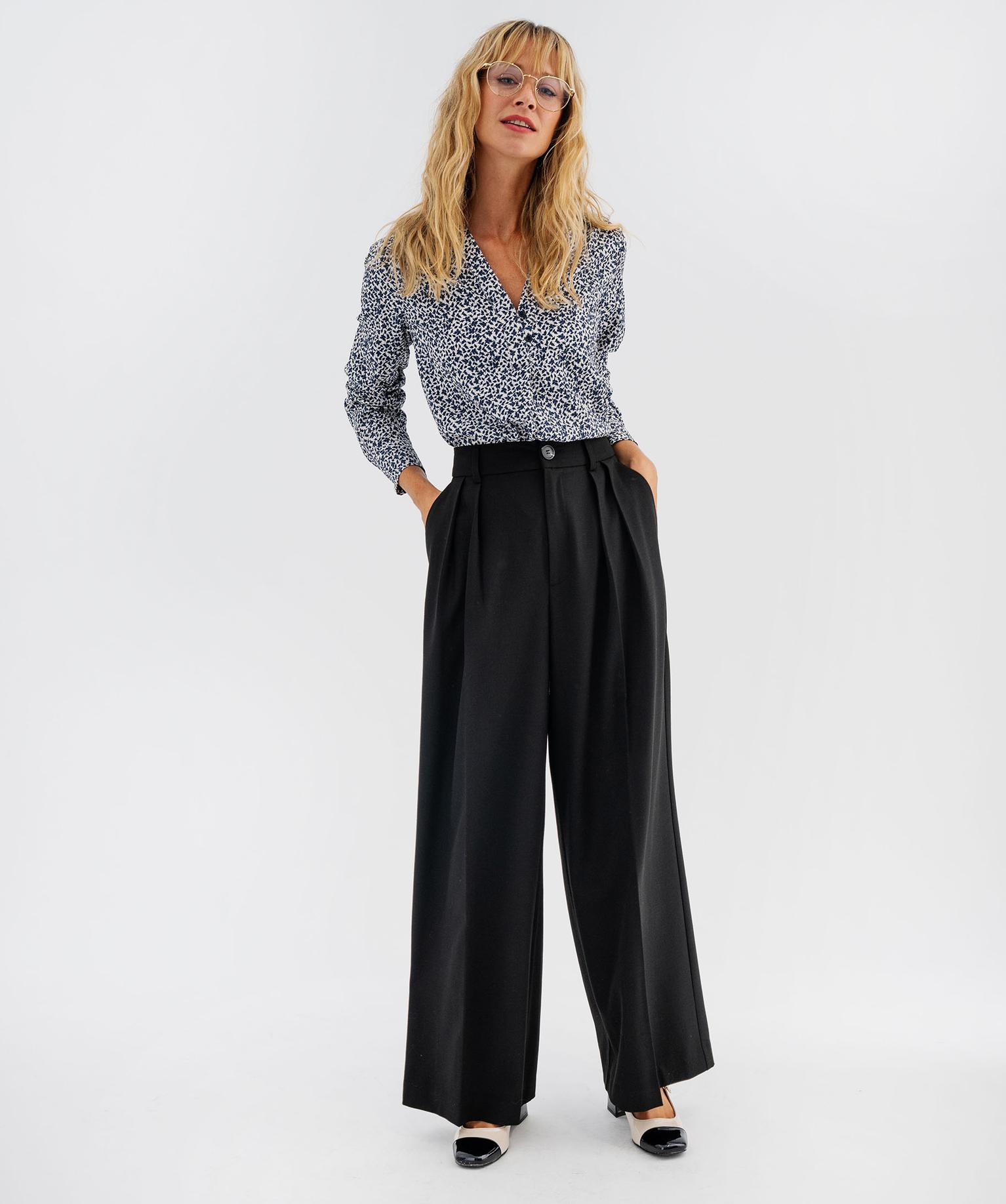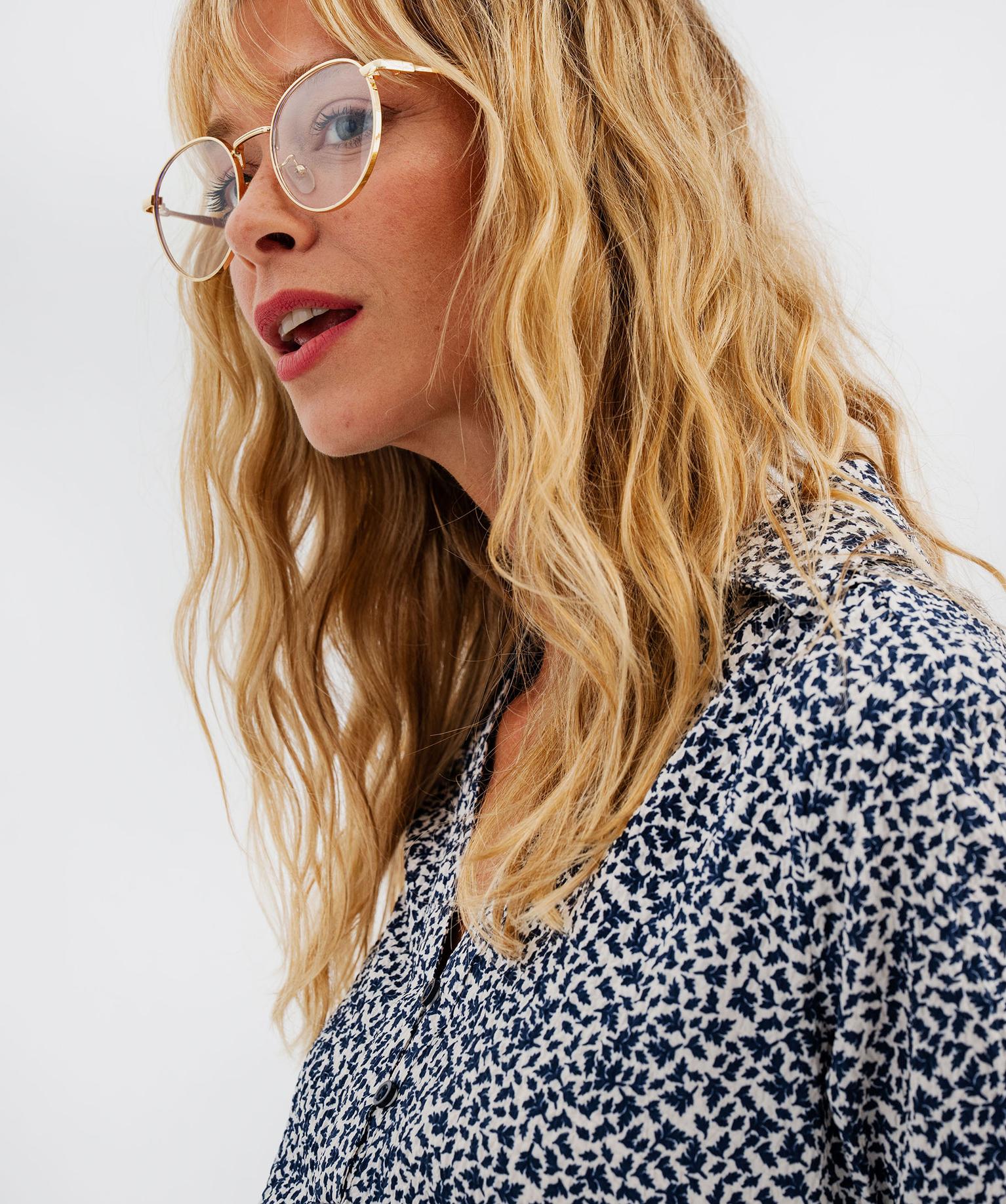 Ravissante blouse pour femme, confectionnée dans une maille gaufrée, fine et extensible, parsemée de délicats motifs fleuris. Cette blouse est dotée de manches longues à poignets boutonnés qui peuvent se porter retroussées grâce à une patte à de boutonnage. Très féminine, cette blouse imprimée possède un col chemise avec décolleté en V et boutons décoratifs. Sa coupe légèrement évasée avec plis creux sous le col offre une grande aisance. Un chemisier à porter avec un pantalon de tailleur pour une allure élégante ou un jean pour un look plus cool. Bas arrondi dans le dos.