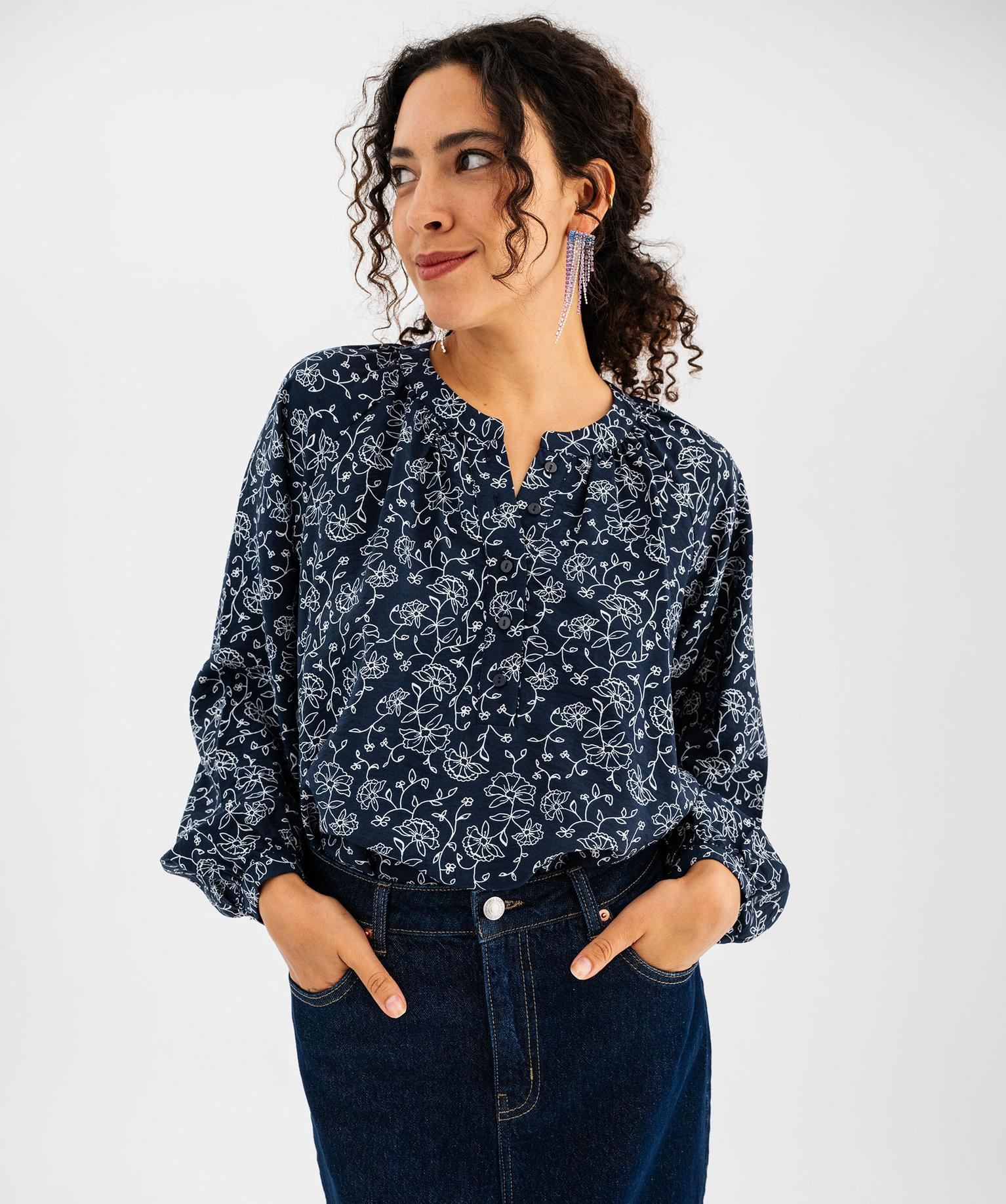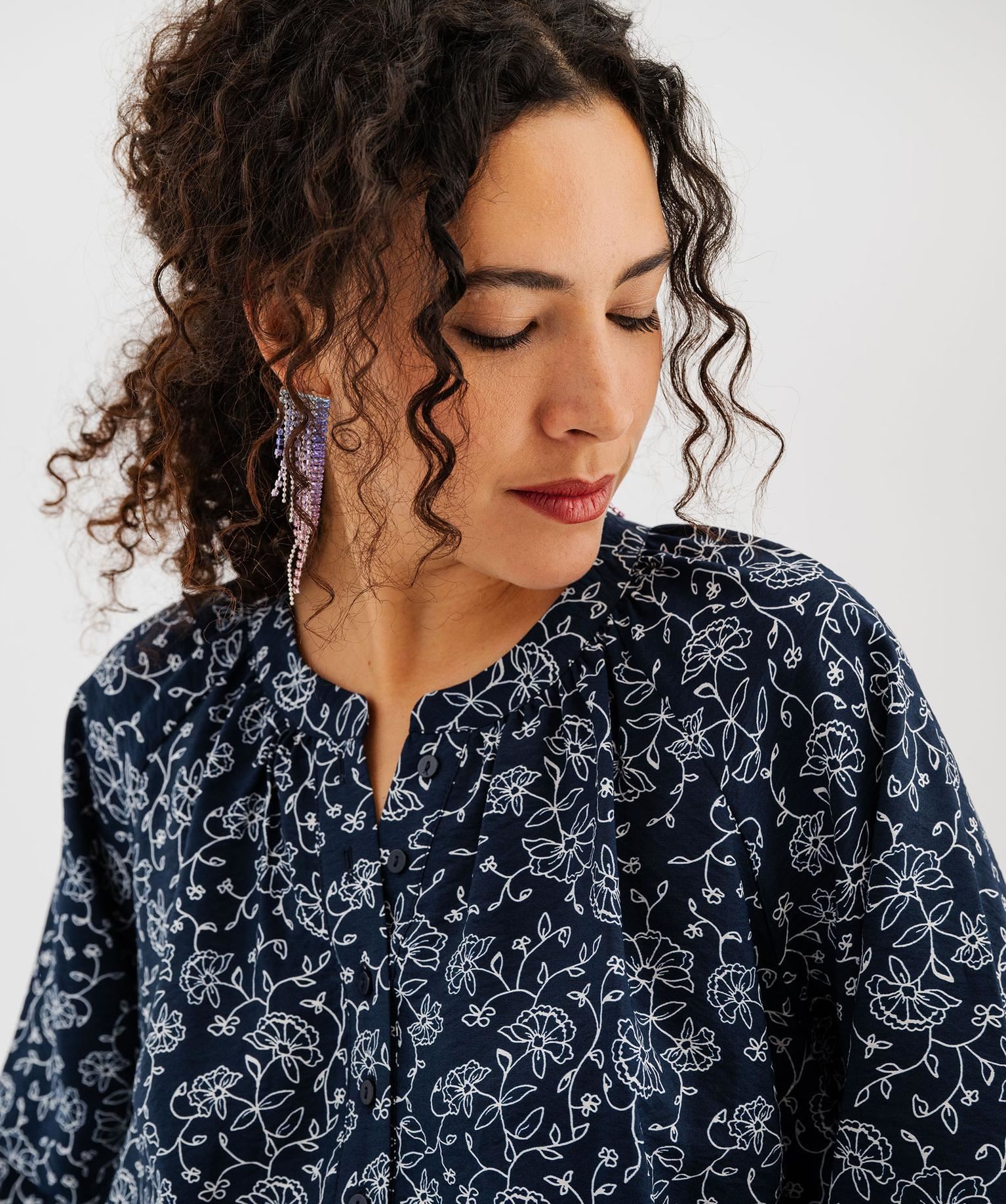 Fluide et légère, cette blouse femme en viscose est idéale pour une allure bohème. Sa matière subtilement froissée apporte un joli relief naturel. La coupe droite et ample assure un tombé parfait. Les emmanchures raglan offrent une grande liberté de mouvement. Les manches longues blousantes se terminent par des poignets boutonnés élégants. Son col arrondi, froncé, avec patte de boutonnage complète son style romantique.