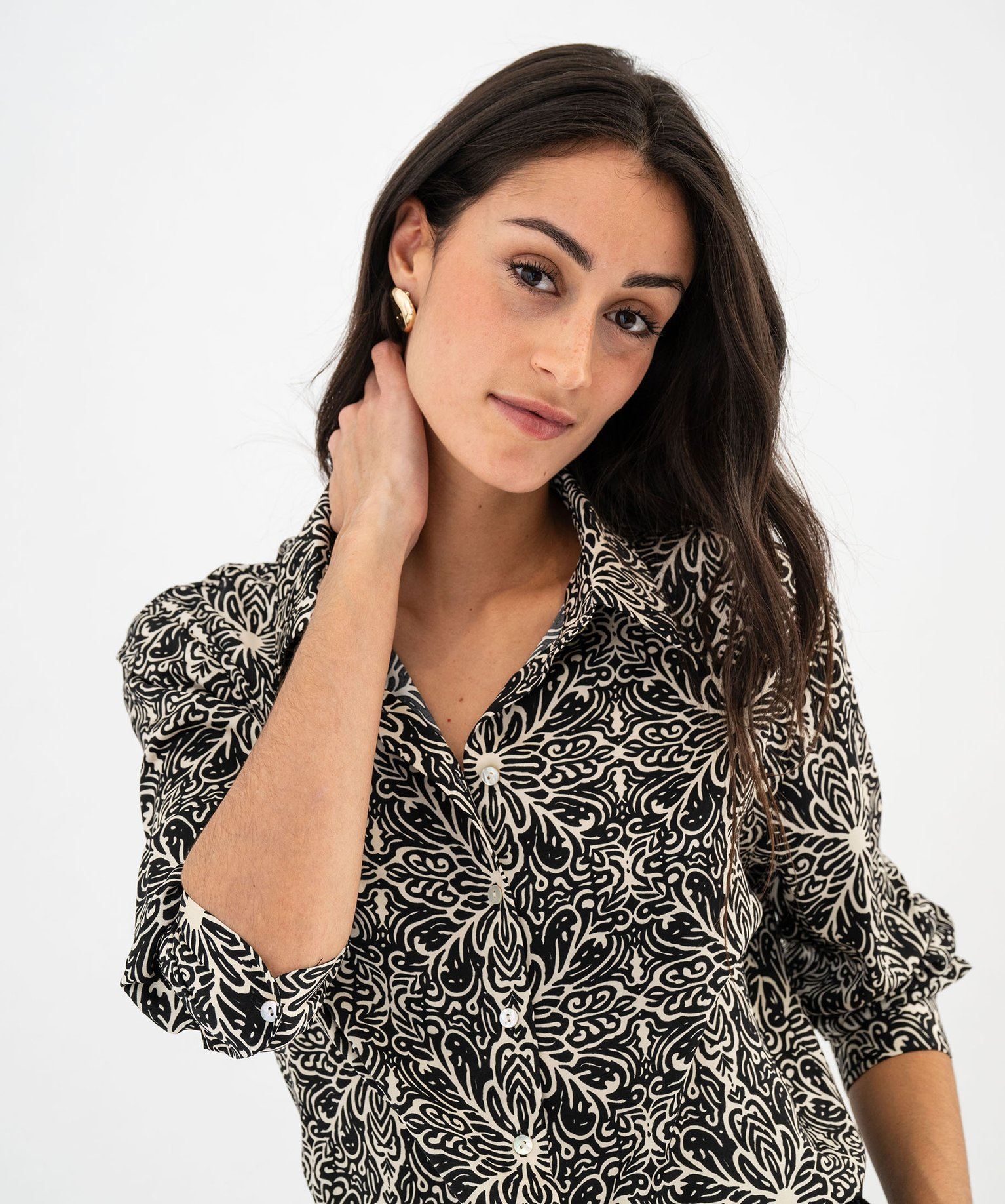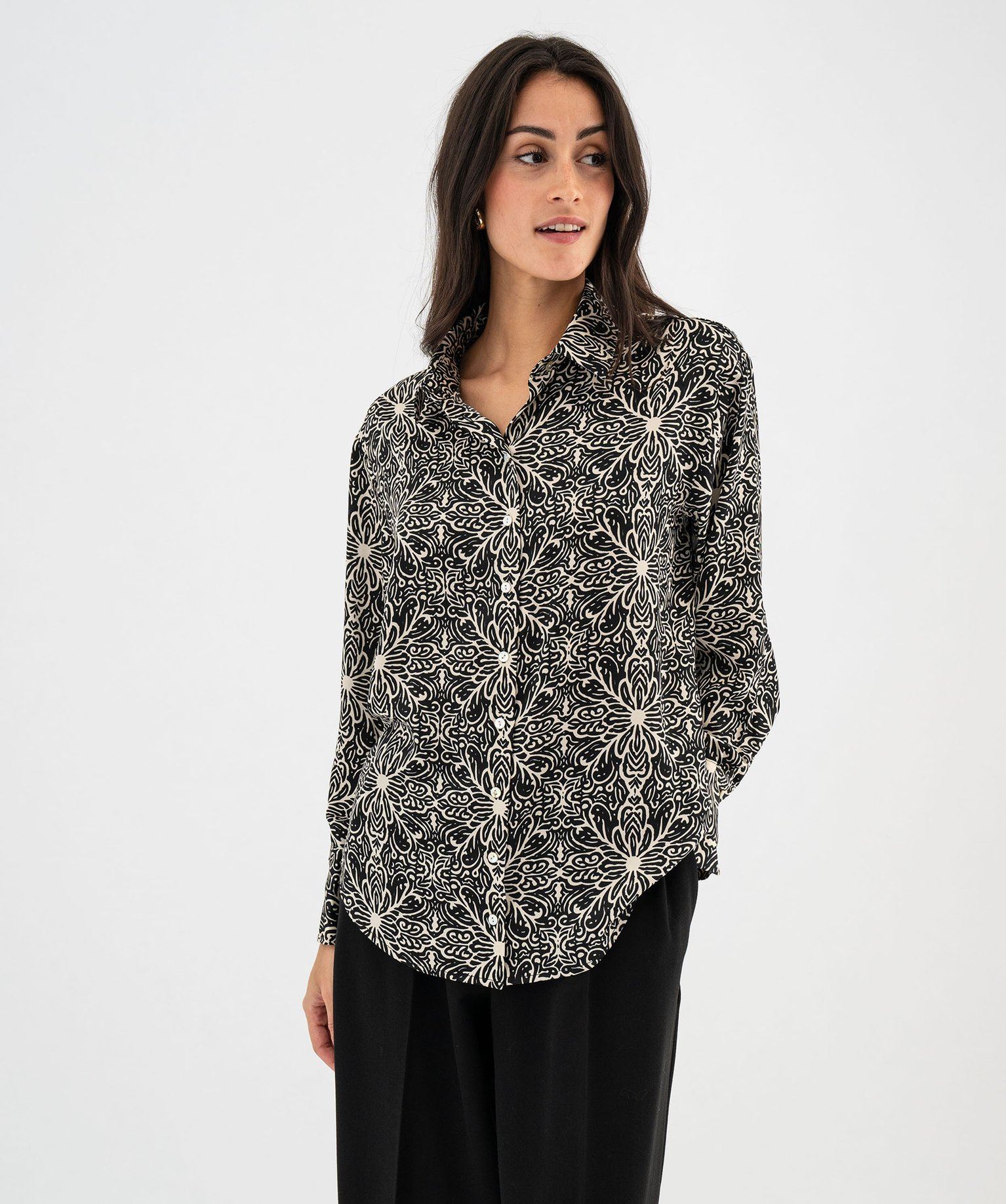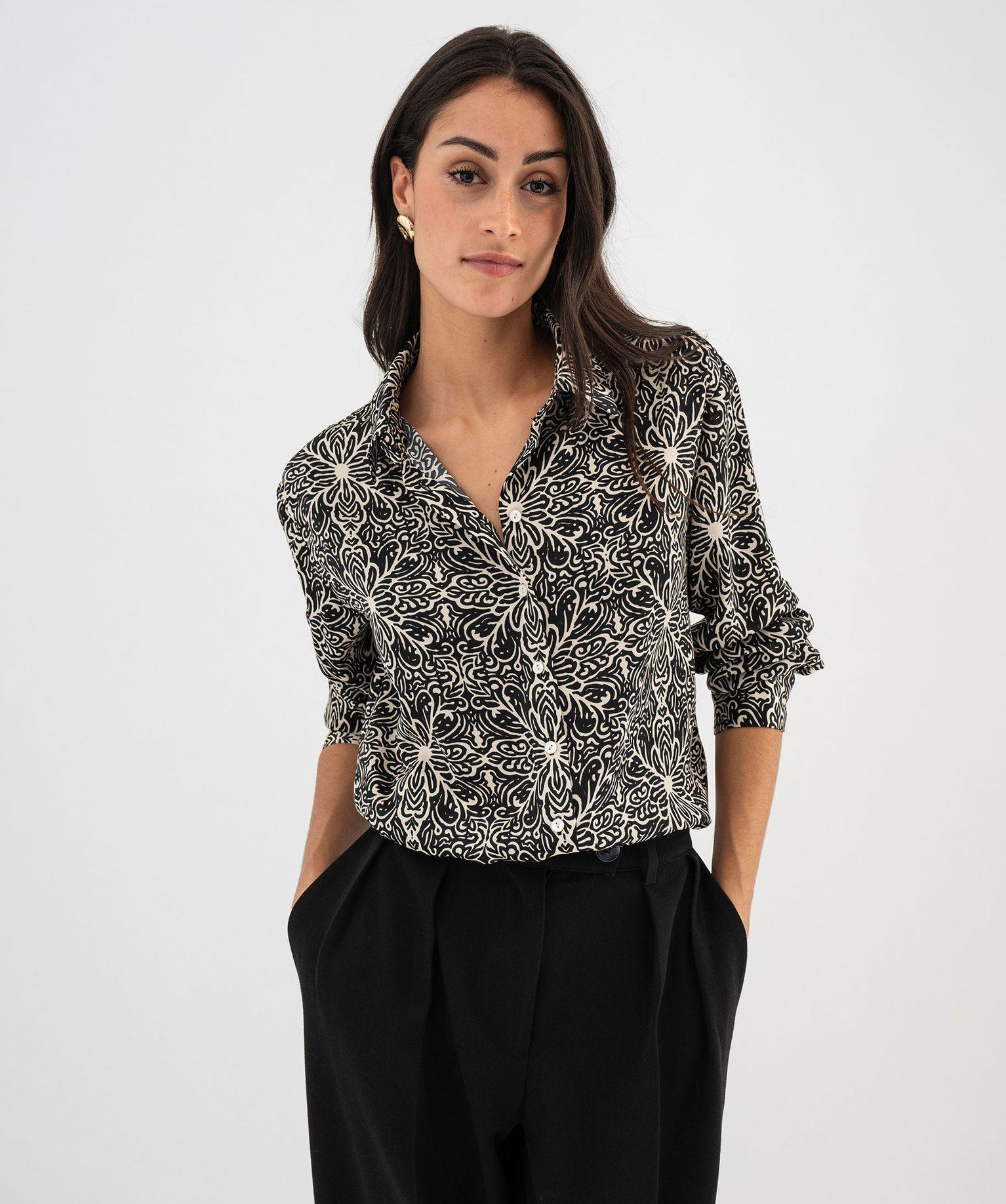Mettez de la fantaisie dans vos tenues tout en vous assurant un look raffiné avec ce chemisier en satin. Une chemise femme manches longues, à la coupe droite plutôt ample, à porter par-dessus un pantalon ajustée ou rentrée dans la taille haute d'une jupe crayon ou d'un jean flare. Sa matière douce, fluide, aux subtils reflets brillants ajoutera une touche très féminine à vos outfits. La chemise présente un col classique souple, de larges poignets boutonnés, une base arrondie et une boutonnière en nacre.
