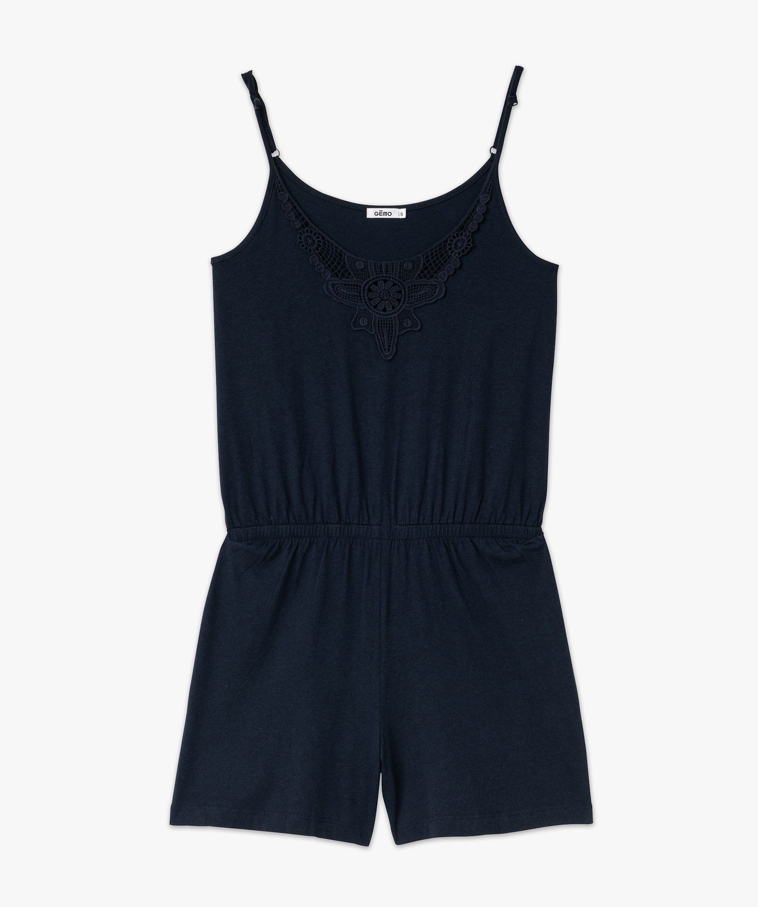 Désormais basique du vestiaire estival, le combishort femme se décline ici dans une version ultra confortable. Sa confection coton/viscose fluide lui apporte légèreté et fluidité. Les fines bretelles sont ajustables. Ce combishort uni est également fait pour mettre votre silhouette en valeur grâce à sa taille marquée par élastique et son décolleté souligné d'un empiècement crocheté. Malin pour apporter une petite touche de transparence en toute subtilité.