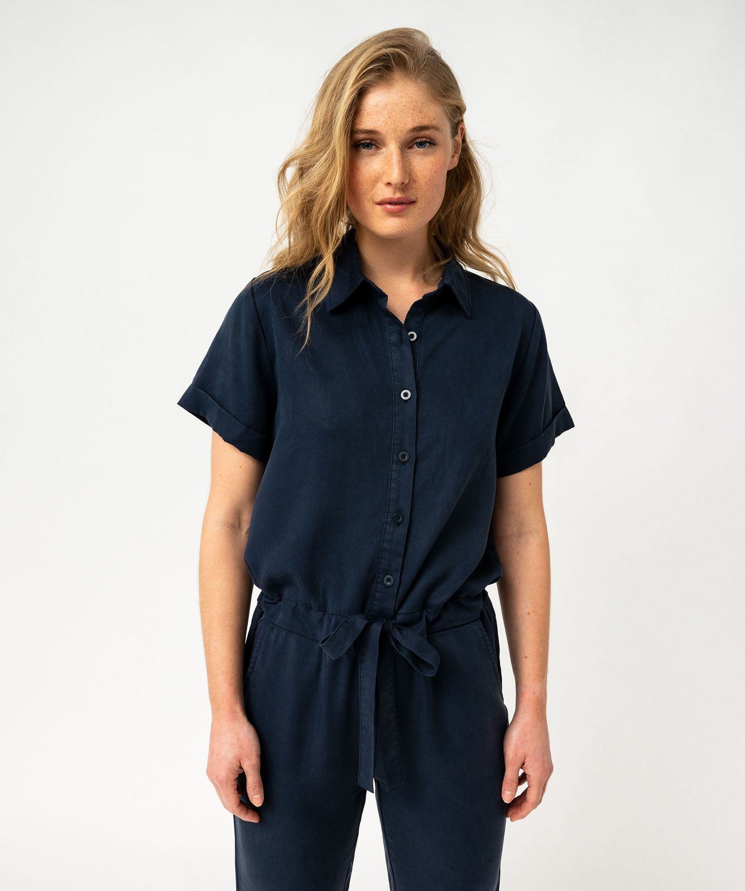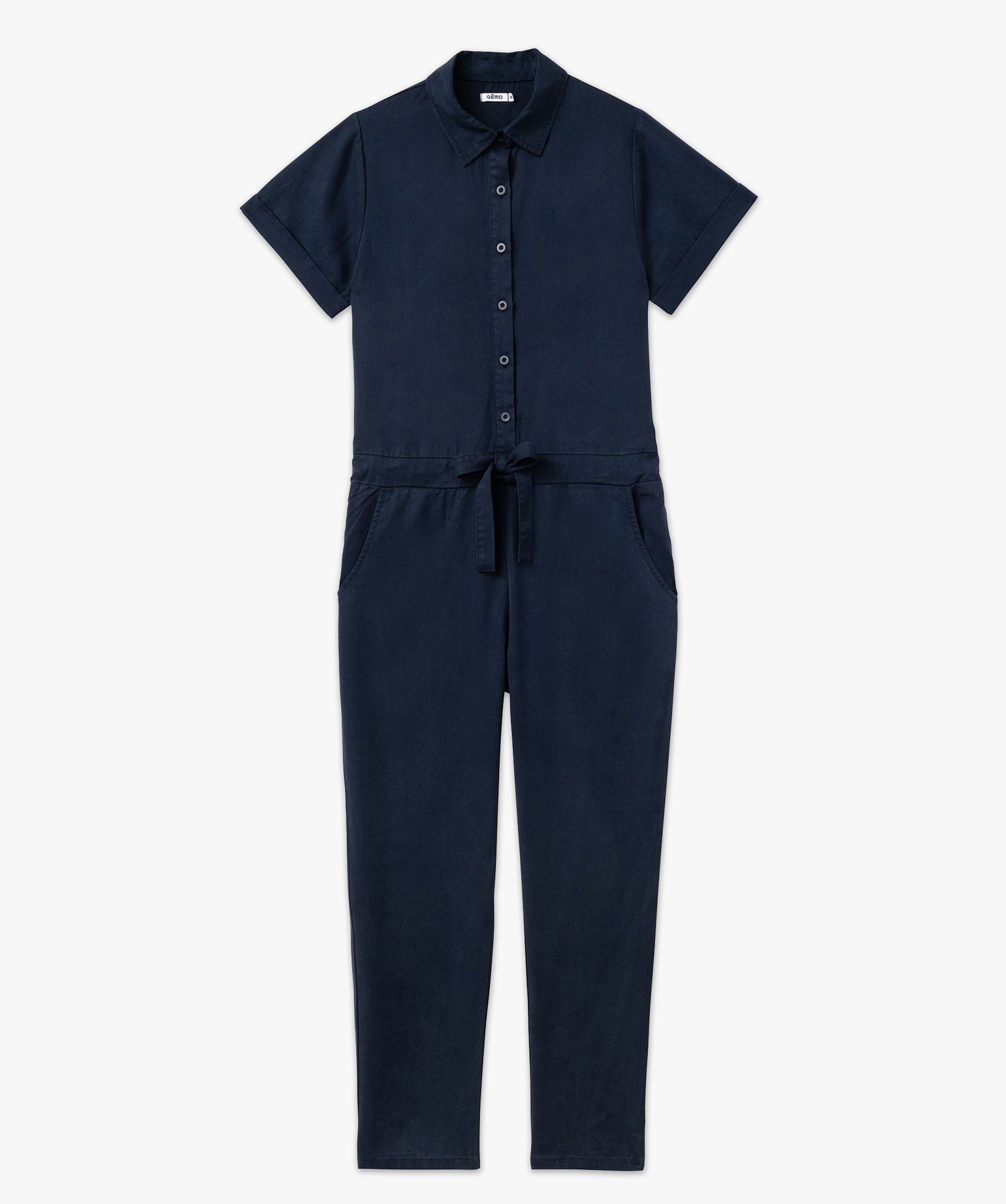 Succombez à l'incroyable douceur du Lyocell qui compose cette merveilleuse combinaison. Une combinaison femme au look casual chic avec son haut chemise : col chemise, boutonnière, manches courtes à revers cousus. Le bas est un pantalon droit, légèrement resserré aux chevilles avec deux poches italiennes. Un lien coulissant à la taille permet de marquer plus ou moins votre silhouette. En journée comme en soirée, vous ne vous passerez plus de cette combi-pantalon.