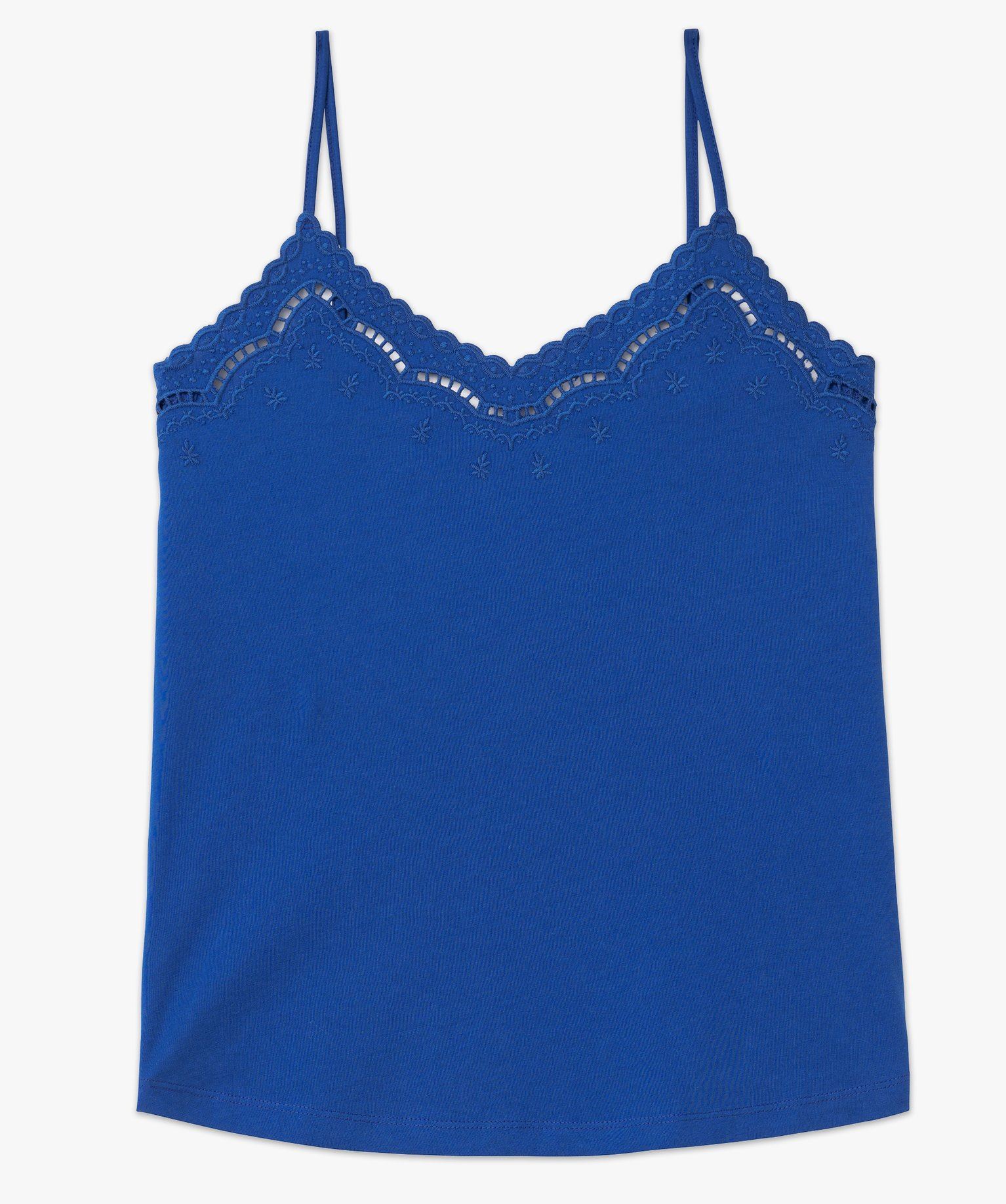 debardeur a fines bretelles avec broderie anglaise femme bleu debardeurs