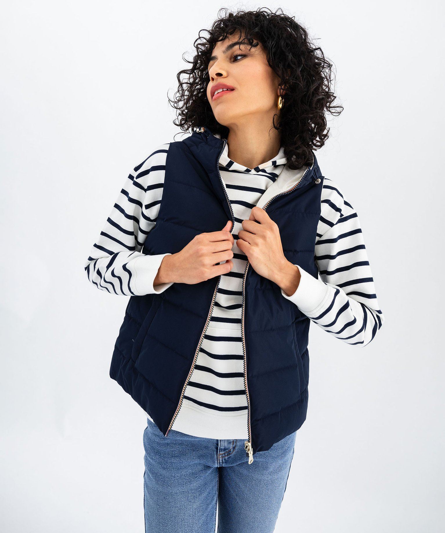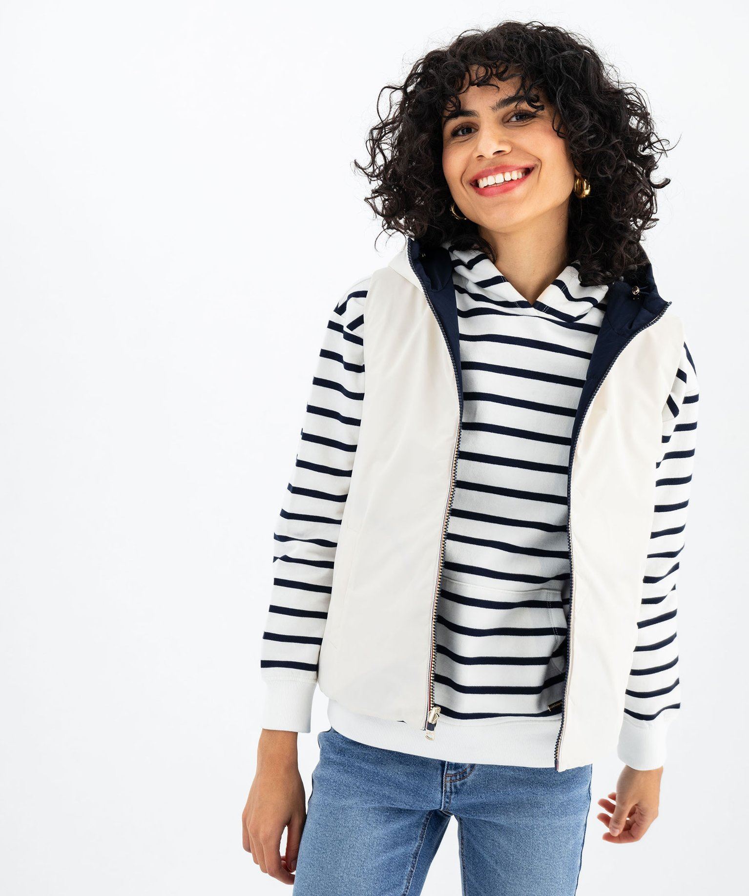 Laissez-vous séduire par l'originalité de ce blouson sans manches à capuche. Ce blouson femme au matelassage léger se porte en toute saison, sa capuche est ajustable grâce à un cordon coulissant. Spécialement conçue pour les adeptes de mode, cette doudoune sans manches offre un coloris intemporel d'un côté et un coloris métallisé de l'autre, vous permettant de changer de style en un clin d'œil ! Cette doudoune réversible apporte une touche distinctive à toutes les tenues tout en procurant une douce chaleur. Dotée d'une fermeture zippée et de deux poches raglan avec zip d'un côté et boutons pression de l'autre, elle allie praticité et élégance. Un incontournable pour une allure stylée en toutes circonstances.