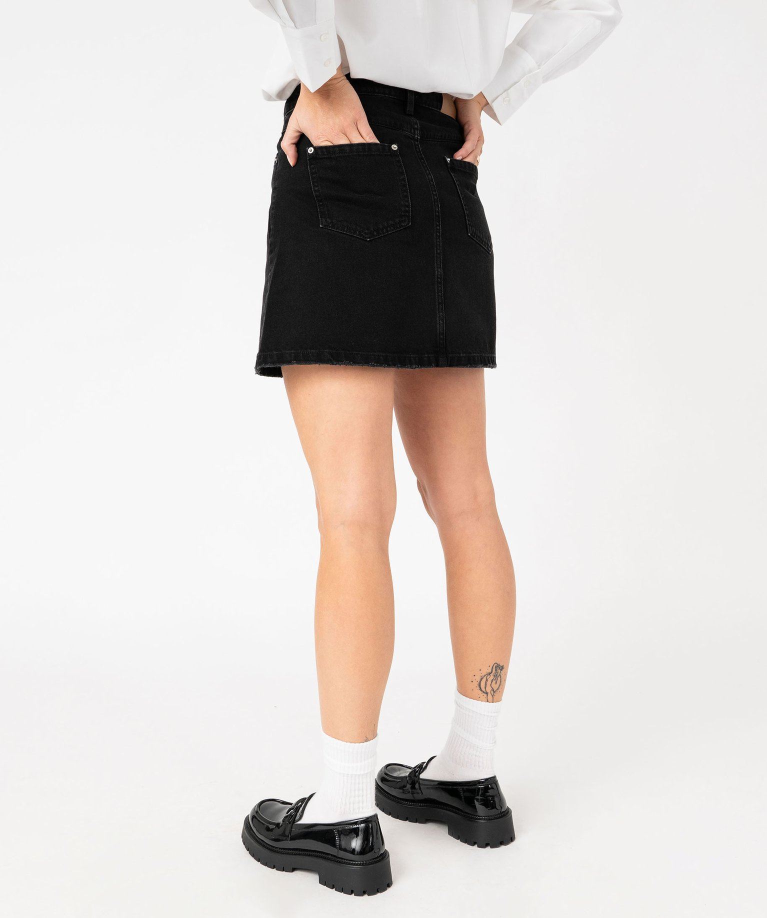 Basique ultra efficace : la jupe en jean coupe trapèze ! Cette jupe courte légèrement évasée est fabriquée dans un denim 100% coton tout doux, avec les bords élimés dans le bas, top pour une allure décontractée ! Vous porterez facilement cette jupe femme en hiver avec des collants épais et des boots, ou à la mi-saison avec des mocassins chunky ! Trois poches sur l'avant et deux au dos. Fermeture zip et bouton.