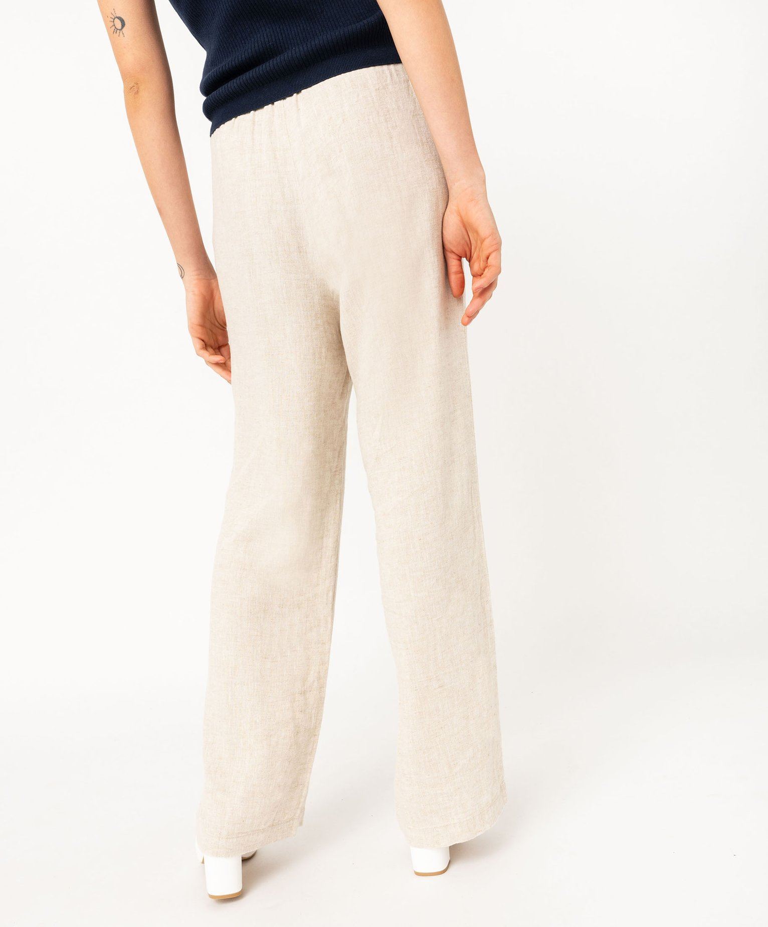Offrez-vous le confort et l’élégance d’un pantalon large en lin et viscose. Cette association de matières naturelles est fluide, légère et reste agréable à porter même en plein cœur de l’été. Le pantalon large, facile à enfiler grâce à sa ceinture élastique, se marie aussi bien avec un débardeur côtelé et des mules plates pour un look cool qu'avec une chemise et des sandales à talon pour une silhouette plus élégante. Sa taille élastiquée est ajustable par cordon coulissant terminé de petites perles. Un pantalon femme LuluCastagnette avec 2 poches italiennes devant et une fausse patte de boutonnage décorative.