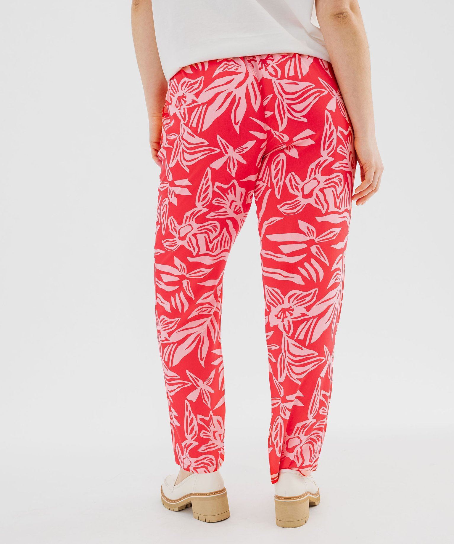 Indispensable du vestiaire estival, le pantalon fluide s’affiche dans un camaïeu de couleurs pétillantes et orné de jolis motifs fleuris. Ce pantalon femme grande taille (du 46 au 54) est confectionné en viscose et offre un confort exceptionnel. Il affiche une coupe large légèrement resserrée en bas de jambe et une large ceinture élastique ajustable par cordon coulissant, qui s’adapte à toutes les morphologies. Un pantalon imprimé à porter avec un tee-shirt ou une blouse unie. Deux poches italiennes.