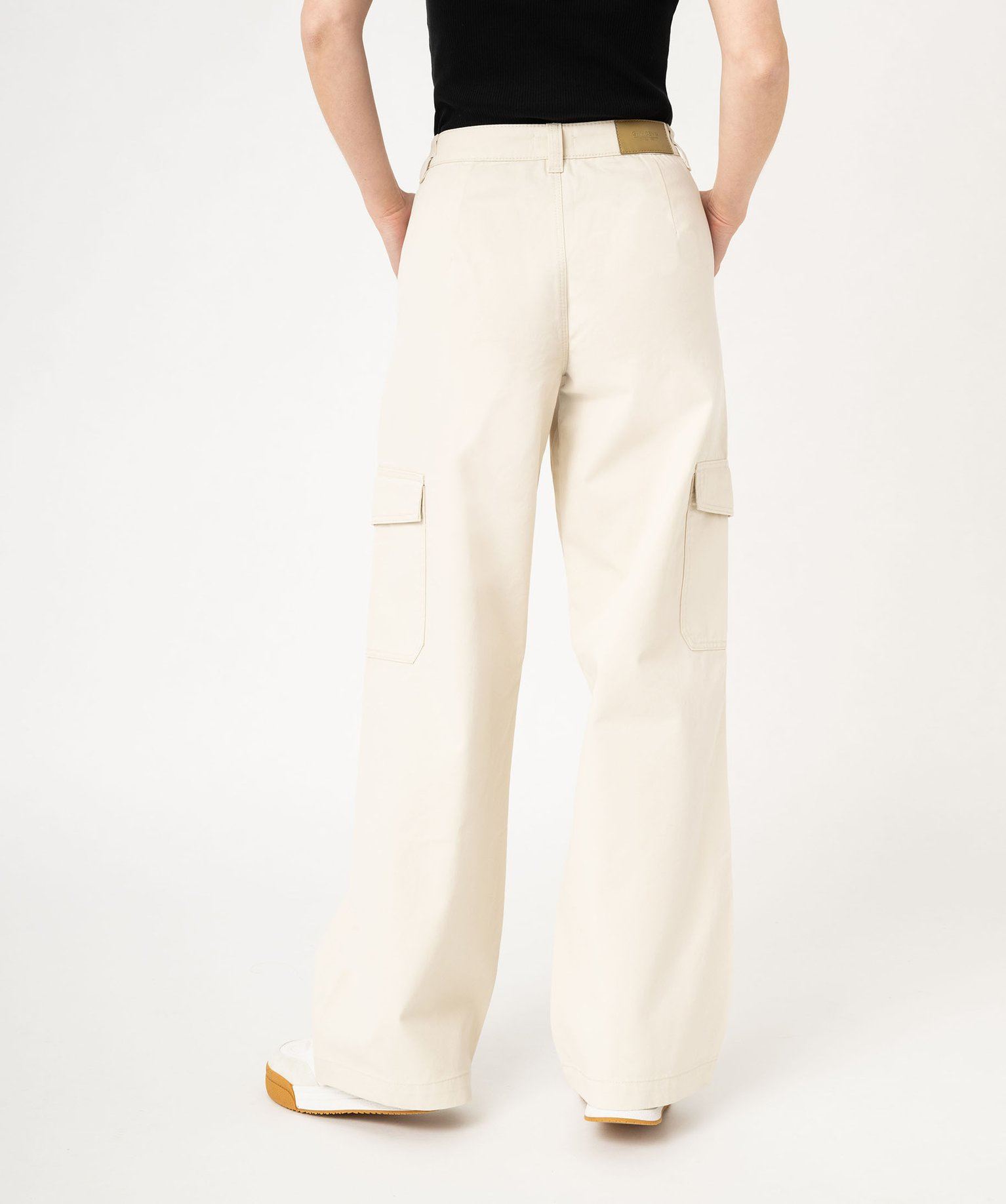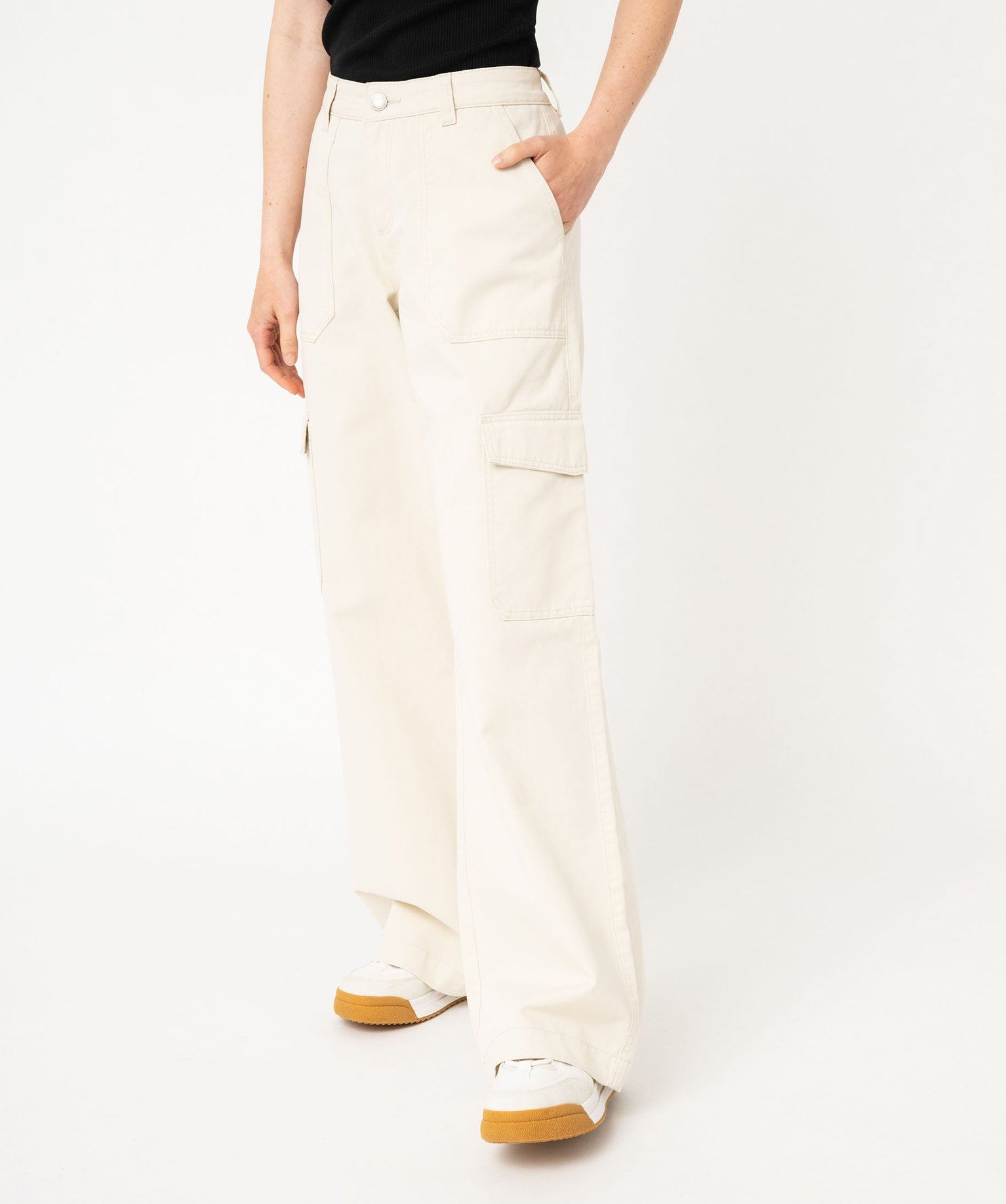 Le pantalon large est au top de la tendance cette saison. Ce pantalon femme se distingue par ses larges poches à rabat sur les cuisses inspirées du pantalon cargo, et ses deux larges poches surpiquées sur l’avant. Ce pantalon en toile affiche un coloris légèrement délavé. Il peut se porter avec des revers en bas de jambes. Accompagné d’un tee-shirt imprimé ou d’un sweat à capuche, il trouvera sa place dans tous les looks streetwear.