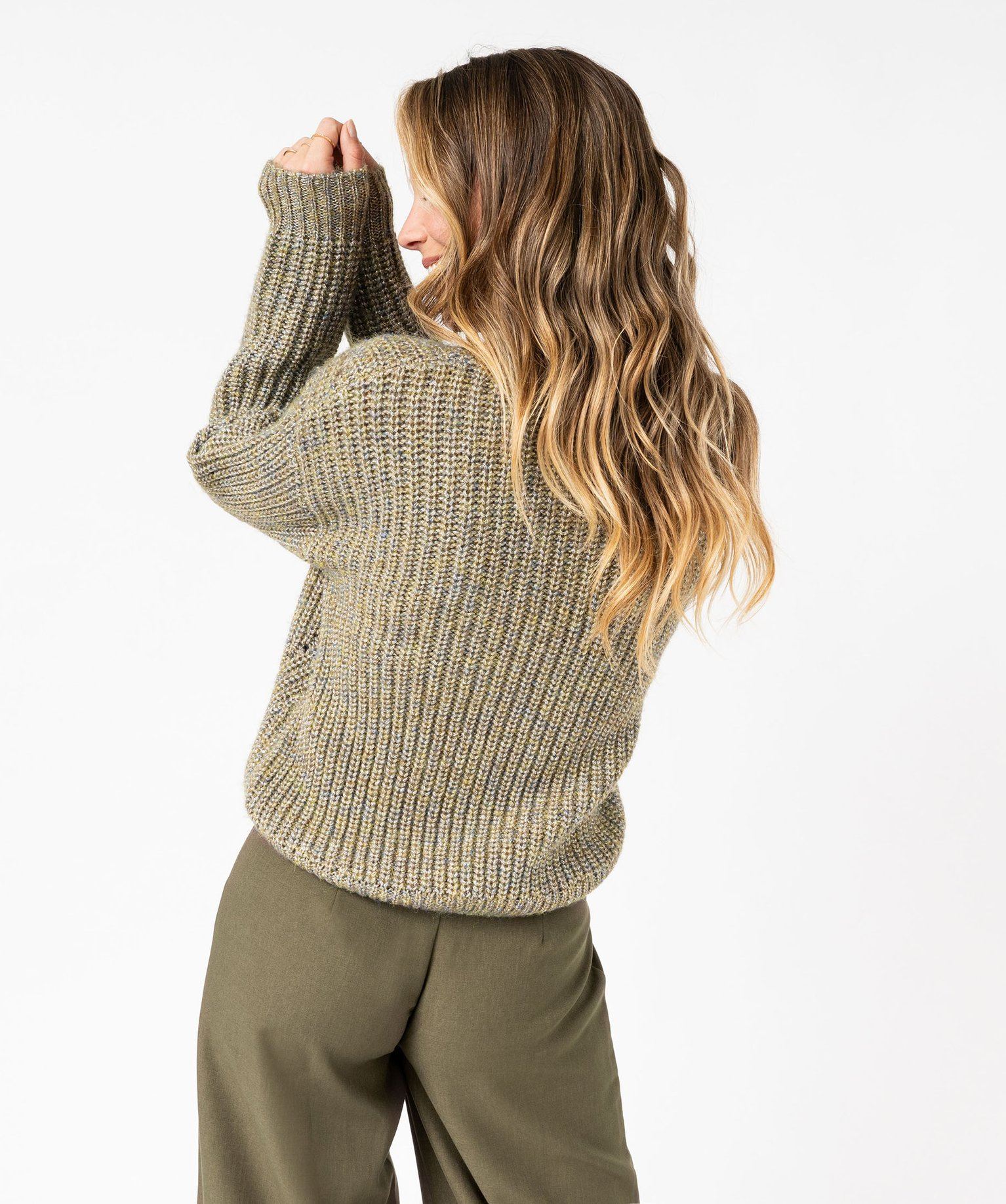 Cet hiver, lovez-vous dans ce sublime pull en grosse maille ! Un pull femme à la coupe légèrement loose, féminisé par un tricot fantaisie et un fil métallisé. Ce pull apportera beaucoup de lumière à votre jean fétiche ou à une simple jupe noire.