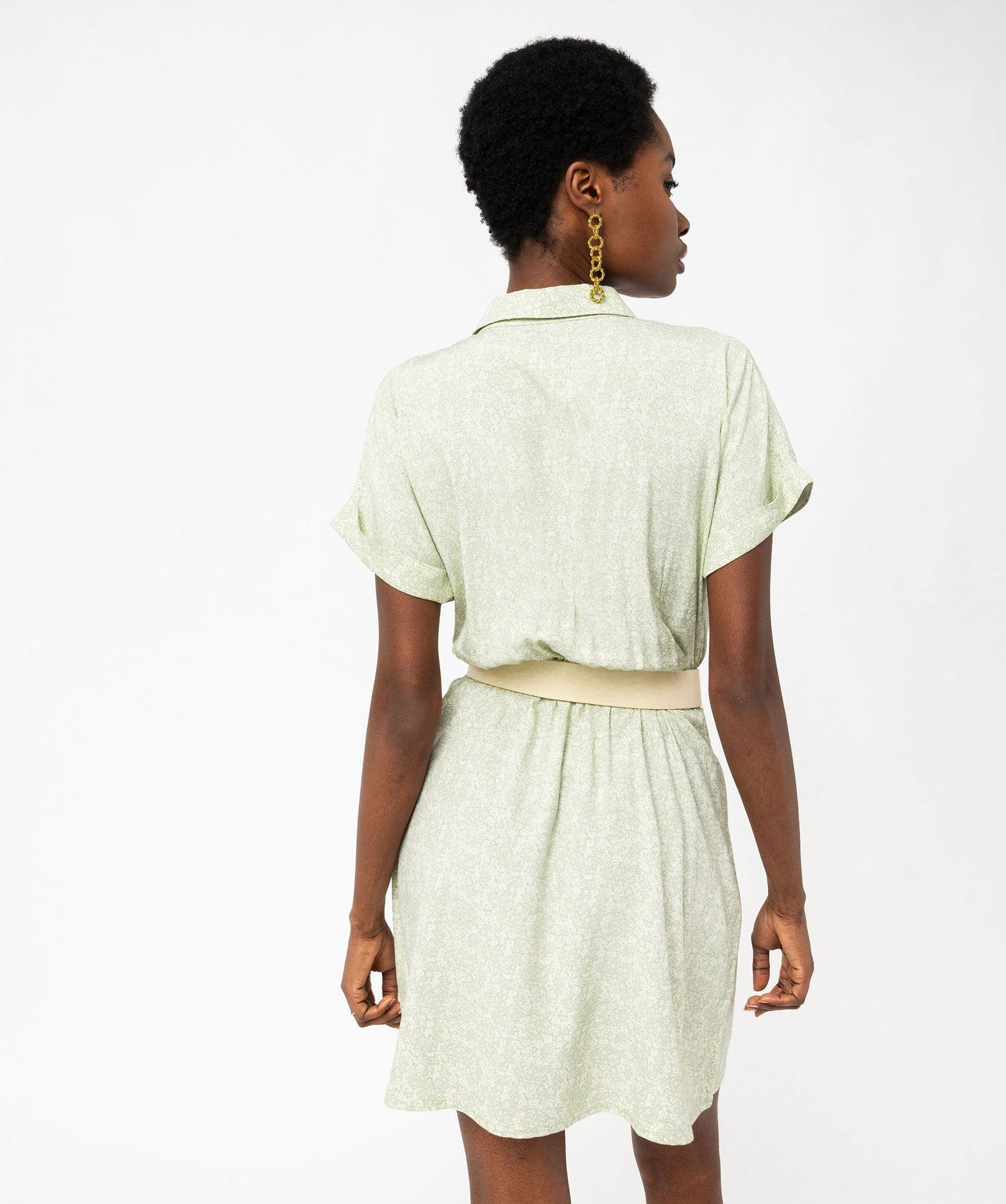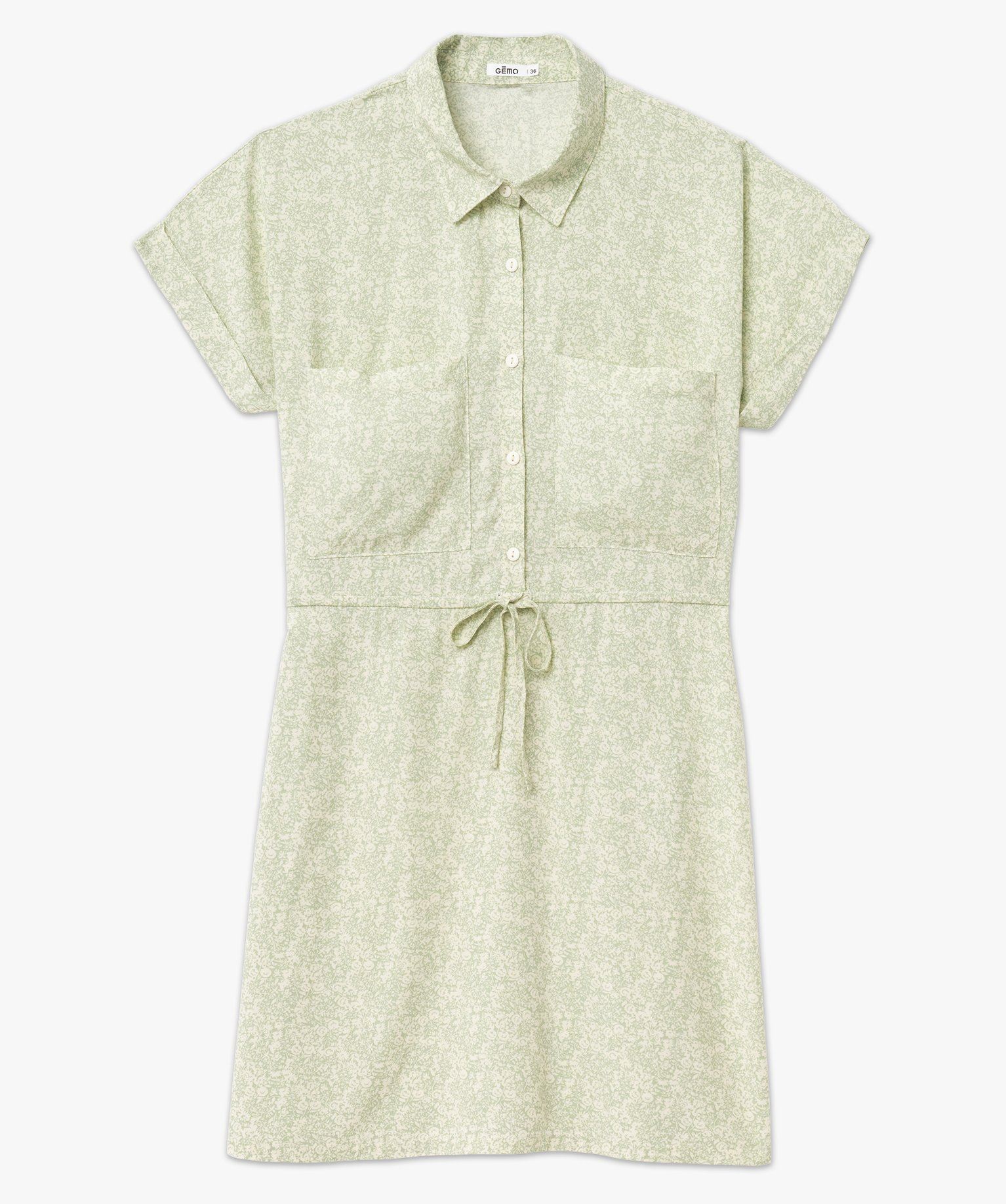 Laissez-vous charmer par cette ravissante robe d'été ! Une robe femme confectionnée dans une viscose fluide, légère et fleurie dans une teinte douce et subtil. Cette robe courte s'inspire de la robe chemise avec son col classique, ses manches courtes à revers, ses poches poitrine et sa boutonnière. Mais la partie jupe est d'une pièce sous son cordon de serrage à la taille. Une robe légère, casual, hyper agréable à porter.
