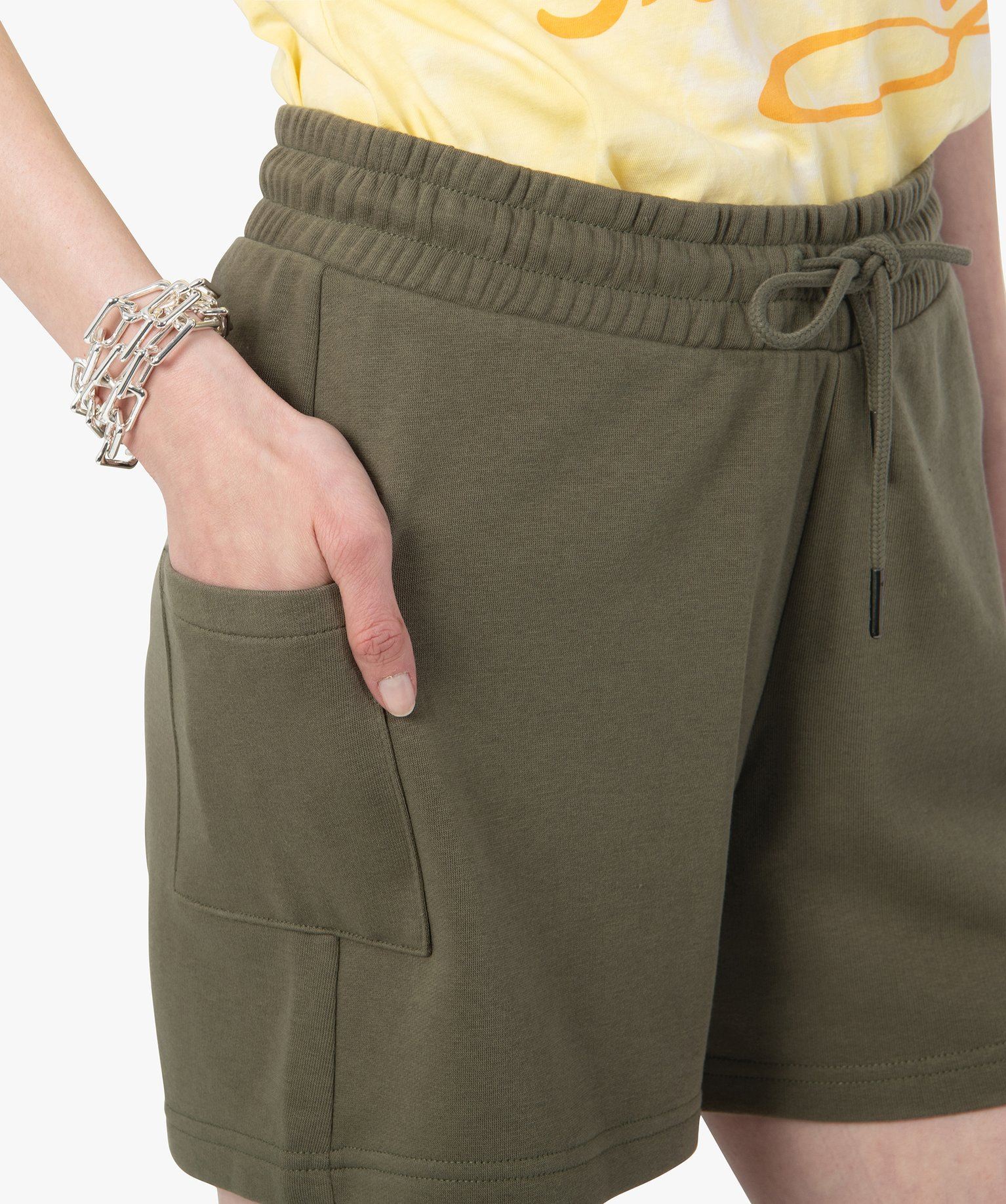Un short en maille souple à porter sans modération toute la saison. Ce short femme se plie à toutes vos envies et se porte aussi bien pour faire du sport que pour adopter un look décontracté. Très pratique avec sa ceinture élastiquée ajustable par cordon coulissant, ce short uni se distingue par ses deux poches plaquées sur les hanches. Un must-have du vestiaire casual !
