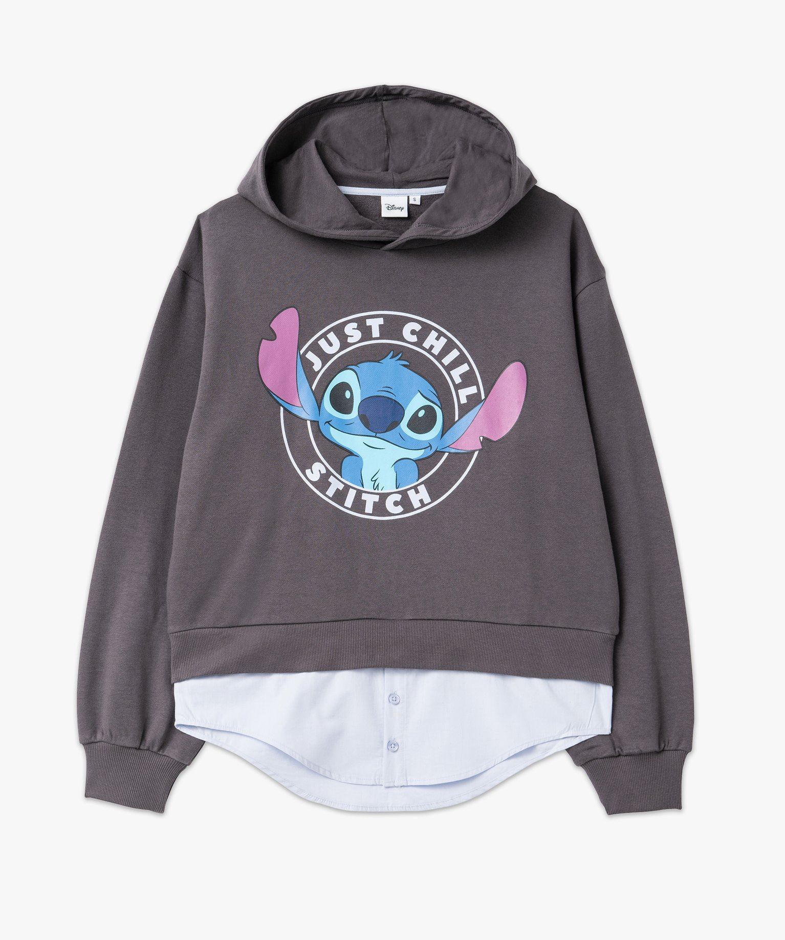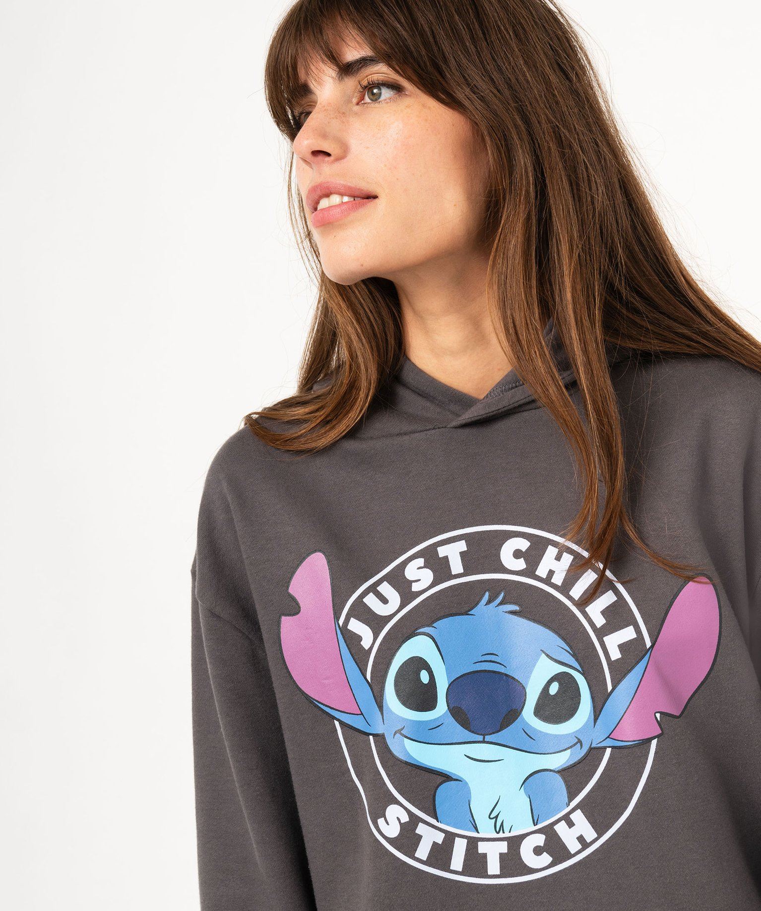 Ce sweat à capuche s’intégrera à merveille dans tous les looks décontractés tout en ajoutant une touche de fun avec son large motif représentant le malicieux Stitch ! Un sweat femme avec intérieur molletonné et finitions bord-côte aux poignets et dans le bas. Il affiche une coupe ample avec épaules tombantes et se distingue par un empiècement boutonné dans le bas, en toile de coton, qui donne l’illusion qu’il est porté sur une chemise. Un sweat Disney effet 2 en 1 à porter avec un jean large et des baskets.