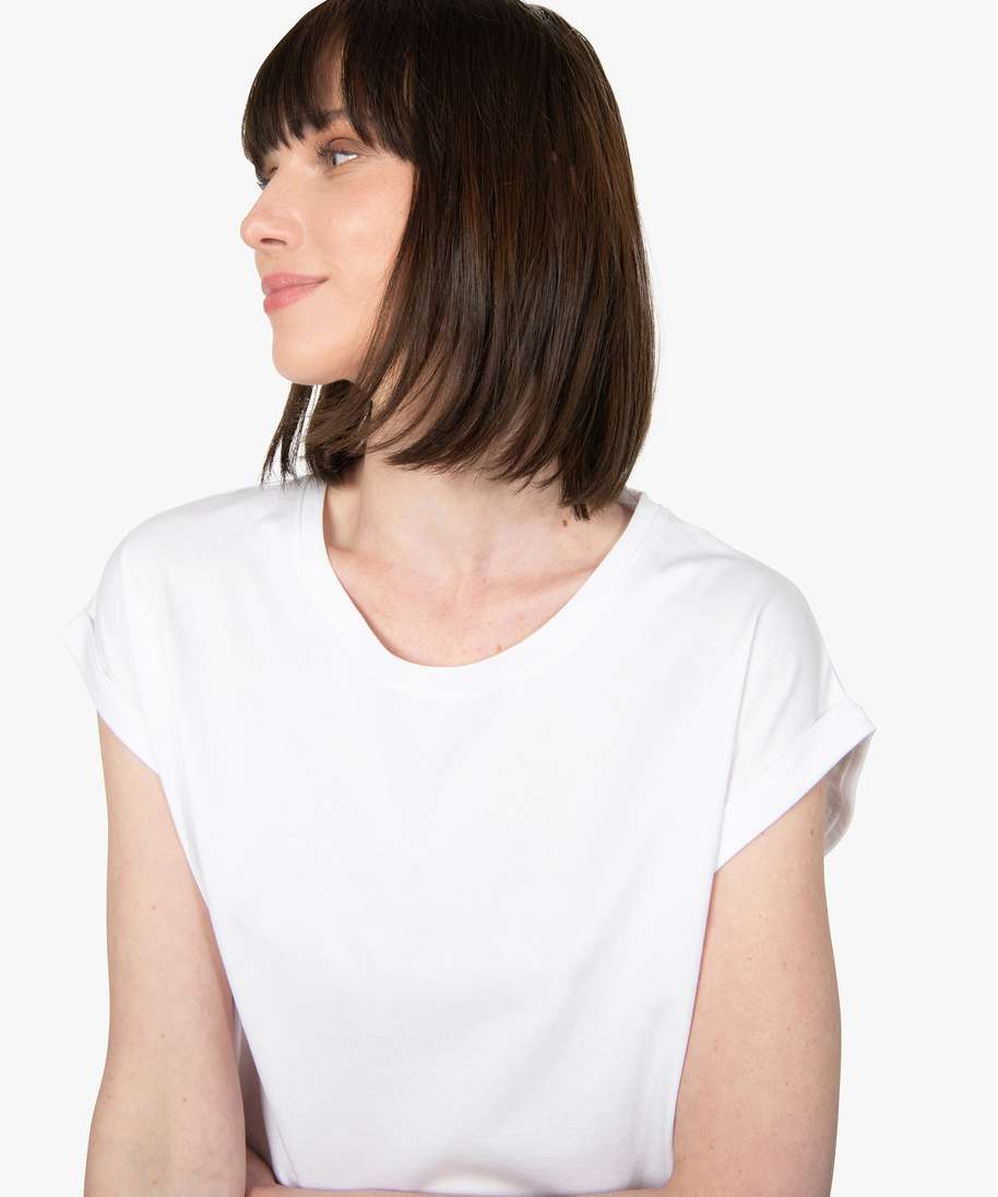 On craque pour ce tee-shirt à manches courtes au coloris uni. Un tee-shirt femme coupe droite et ample, offrant un effet loose, avec large col rond et manches courtes sans emmanchures et revers cousus. Un top totalement dans la tendance qui s’affiche comme LE tee-shirt indispensable de la saison ! Il se porte seul ou sous un gilet, et permet de composer de nombreux looks casual.