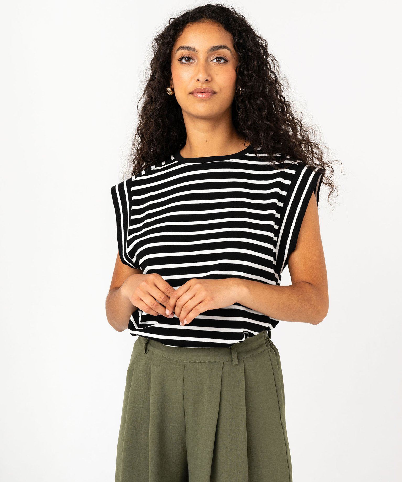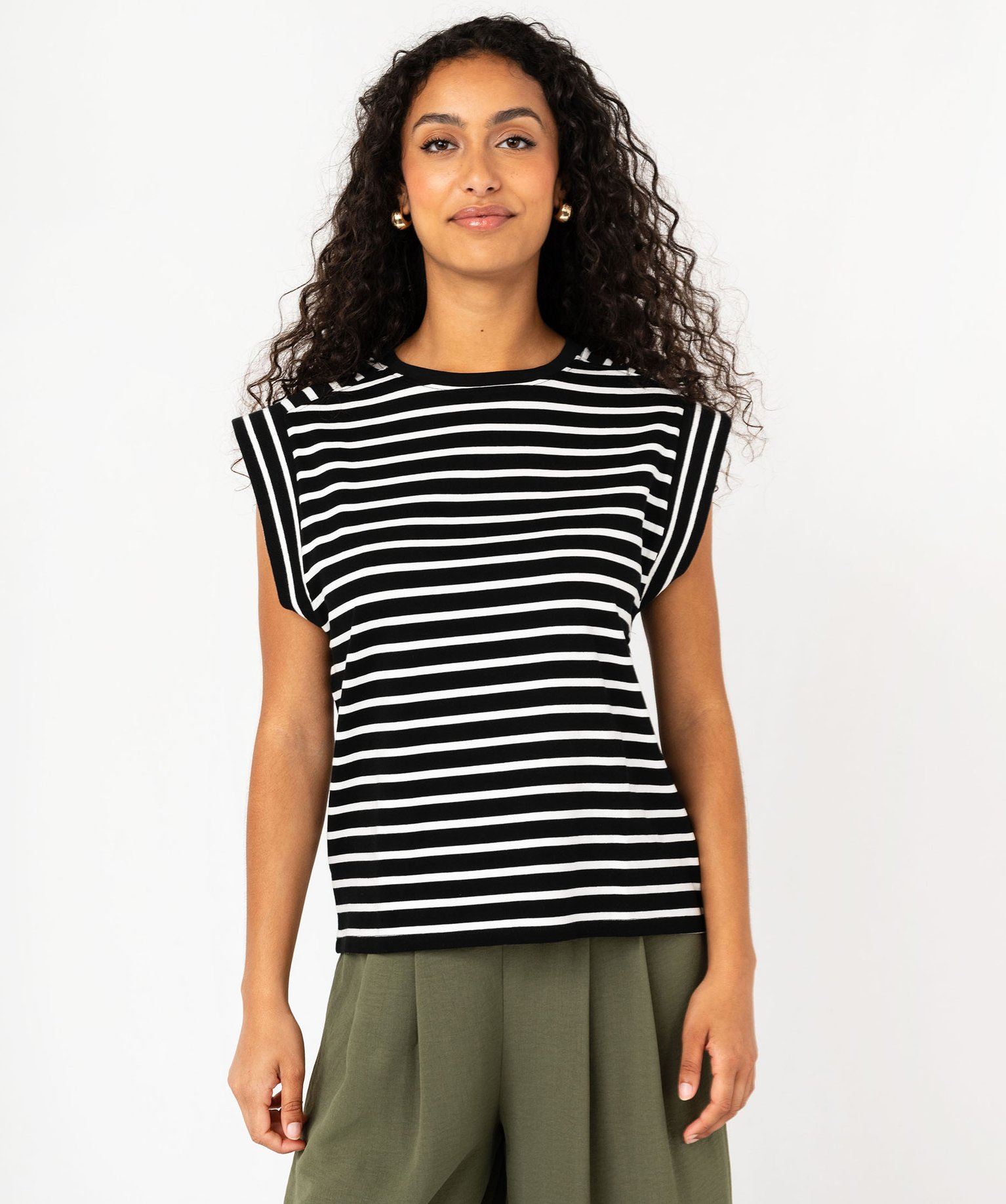 Gémo présente une version originale du traditionnel tee-shirt rayé. Il se distingue par ses larges finitions en bord-côte aux emmanchures ornées de rayures verticales qui forment des manches ultra courtes. Ce tee-shirt femme arbore un col rond et des doubles surpiqûres sur les épaules. Ample, confortable et totalement dans la tendance, ce tee-shirt à manches courtes se mariera à la perfection avec un jean slim.