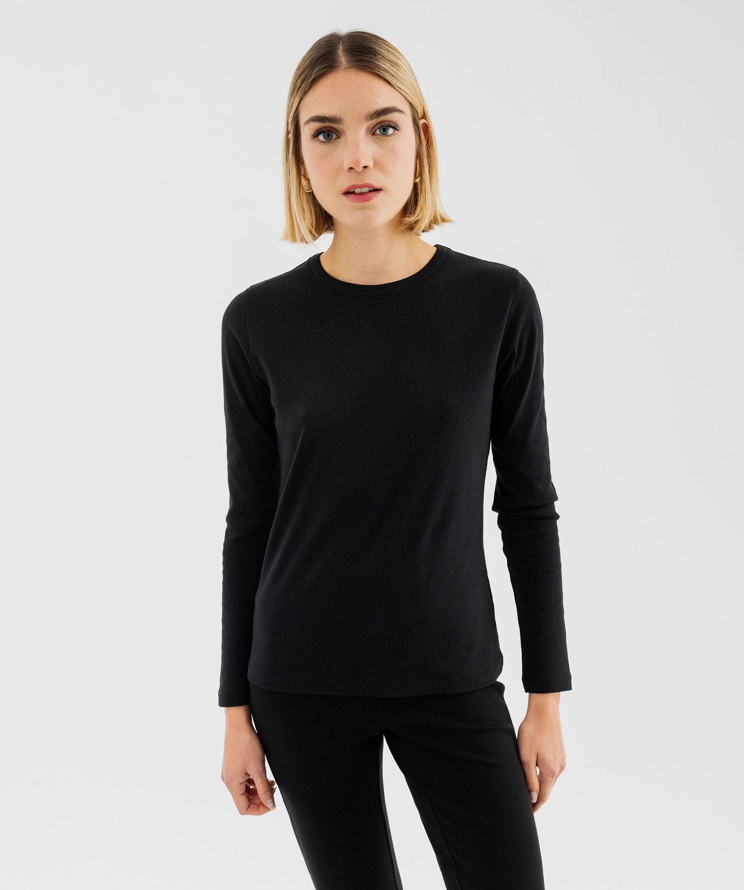 Basique du dressing féminin à posséder impérativement, ce tee-shirt à manches longues permet de composer une multitude de looks différents. Un tee-shirt femme en coton côtelé avec une pointe d’élasthanne pour plus de confort, affichant une coupe droite et un joli col rond souligné par un biais. Une pièce facile à associer autant dans les looks casual que dans les tenues élégantes.