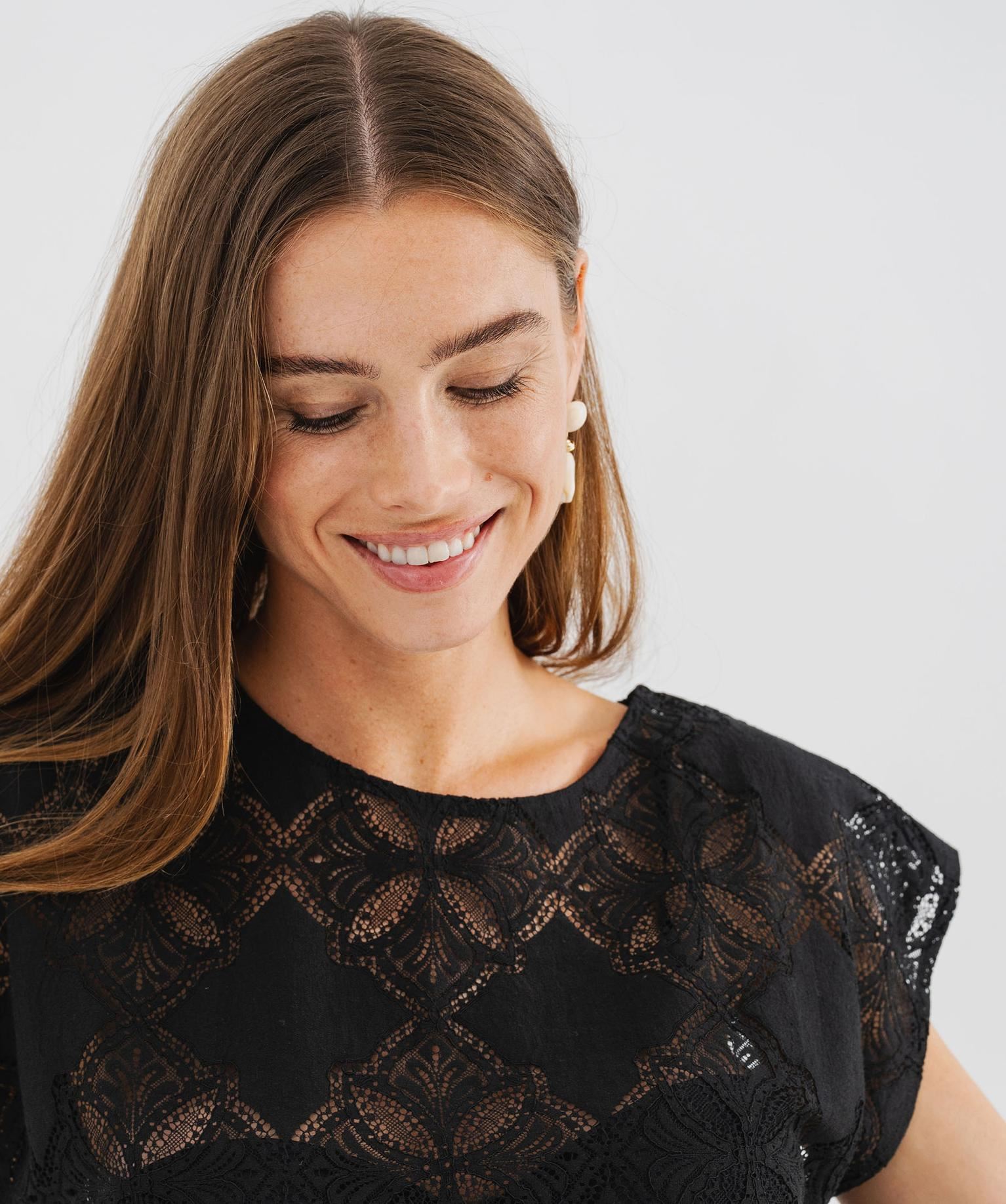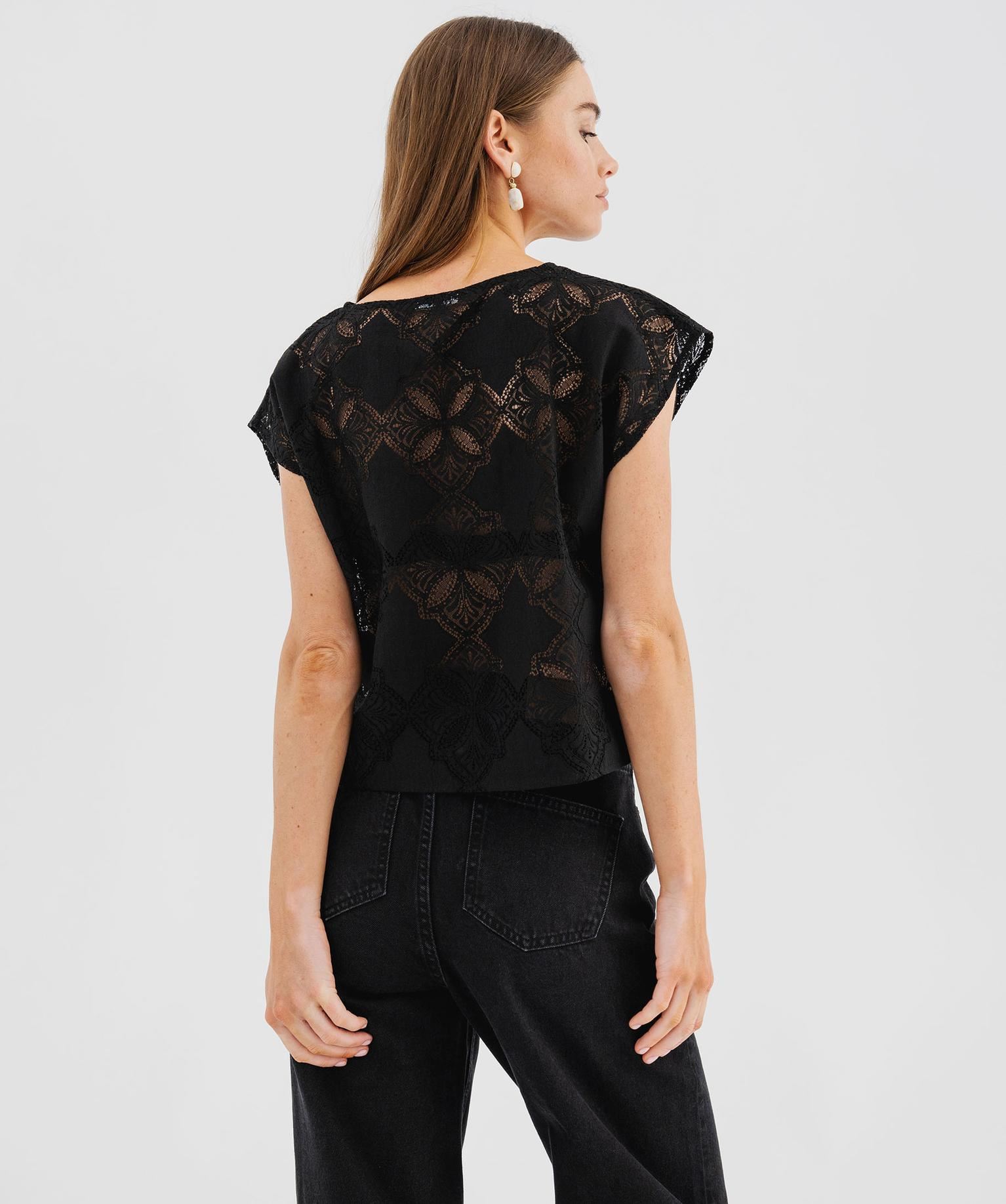 Ce tee-shirt sans manches revisite l'esprit rétro avec modernité. Confectionné dans une maille légère qui présente de délicats motifs fantaisie en dentelle, il joue subtilement avec la transparence tout en restant facile à porter. Sa coupe droite et loose, associée à des emmanchures tombantes, crée une silhouette décontractée et féminine. Le tee-shirt femme présente un col rond classique qui équilibre l’ensemble avec sobriété. Raffiné, ce top se glisse parfaitement sous un blazer pour aller au bureau ou se rehausse votre short en jean préféré, pour un look bohème tendance.