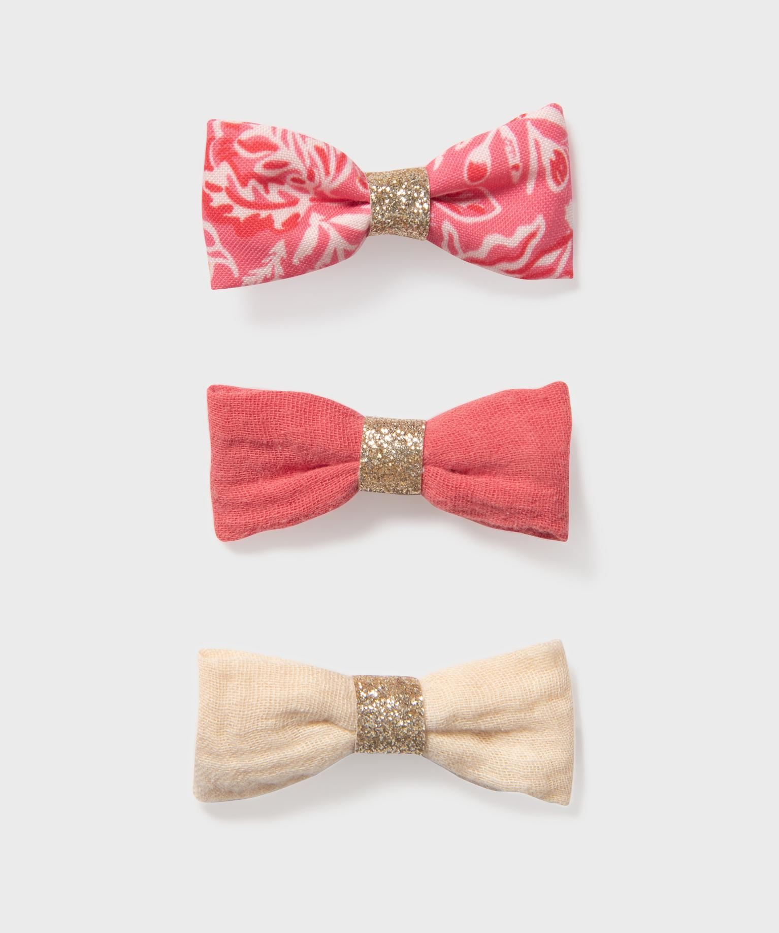 Ce lot de barrettes pour les cheveux pour fille ajoutera de la couleur et de la lumière dans les cheveux de votre enfant. De sublimes barrettes noeuds papillons en gaze de coton posées sur des pinces croco faciles à positionner. Ce lot se compose de 3 barrettes de couleurs différentes, toutes agrémentées d’un ruban pailleté.