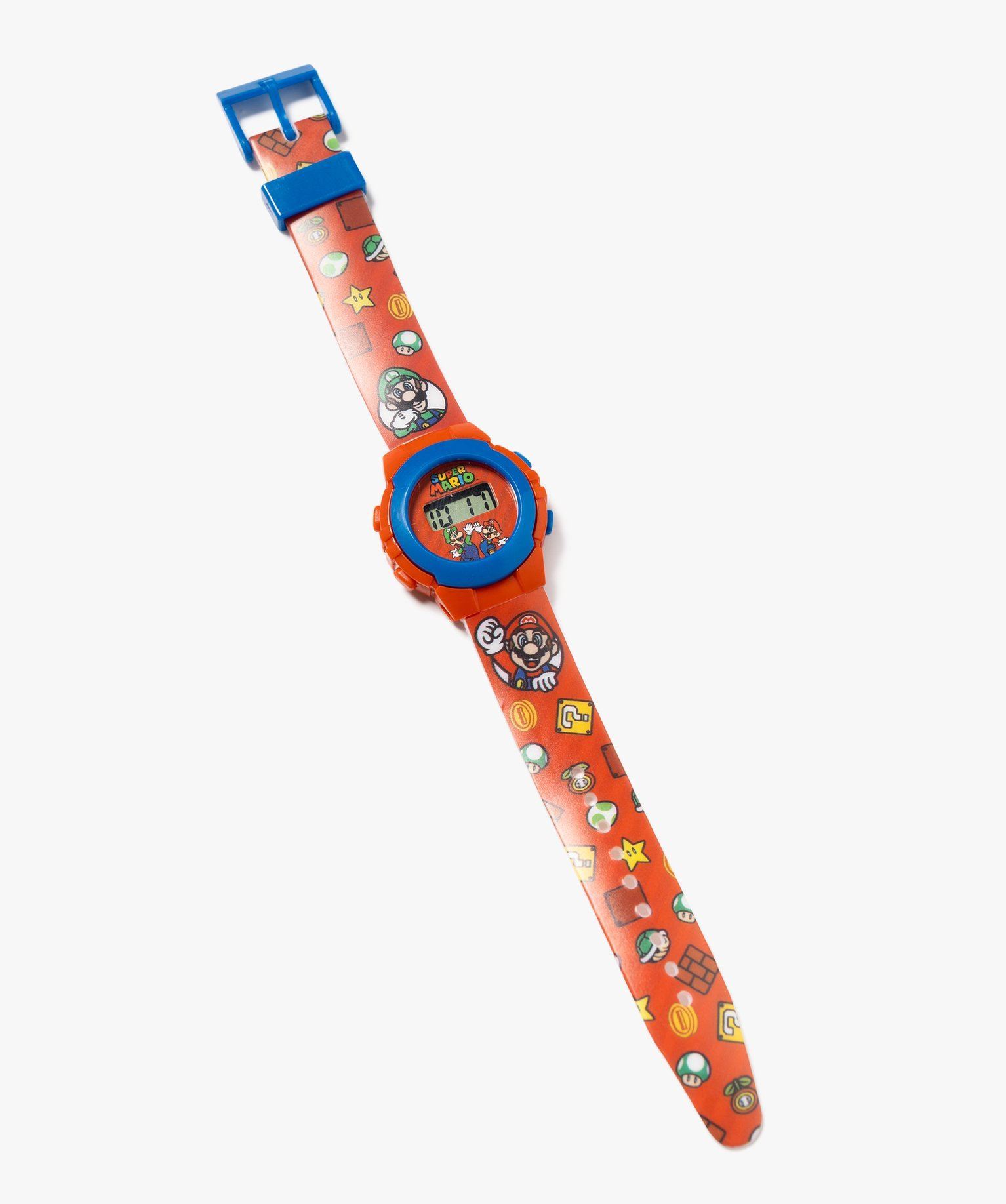 Les adeptes du célèbre jeu vidéo Super Mario vont adorer cette montre aux couleurs vives ornée de motifs rigolos ! Une montre pour enfant avec bracelet flexible très confortable qui s’ajuste au poignet grâce à une boucle. Cette montre Super Mario est dotée de 2 boutons permettant la mise à l’heure et à la date et 2 boutons factices. Elle fonctionne grâce à une pile LR41 (1,5V) incluse.