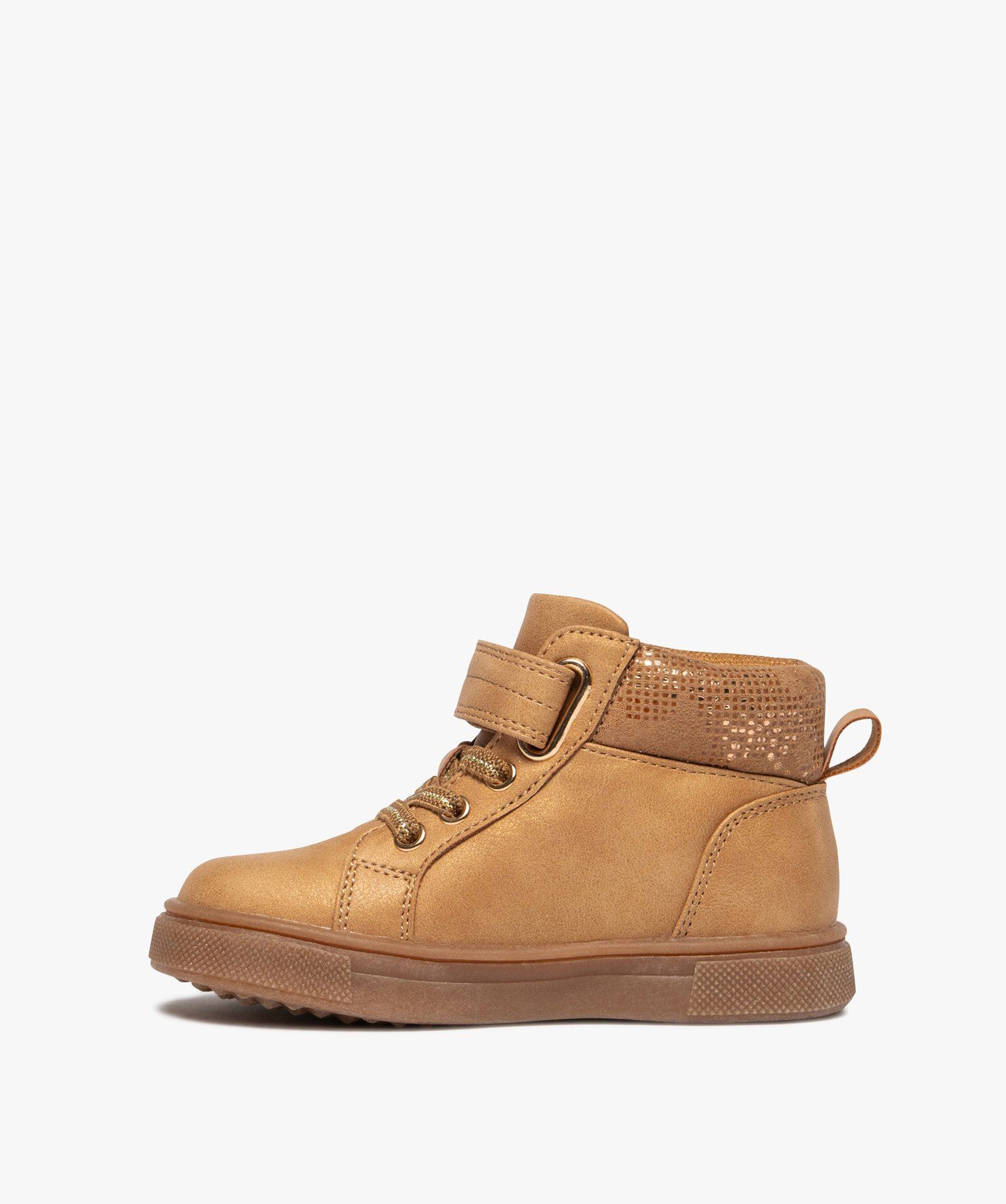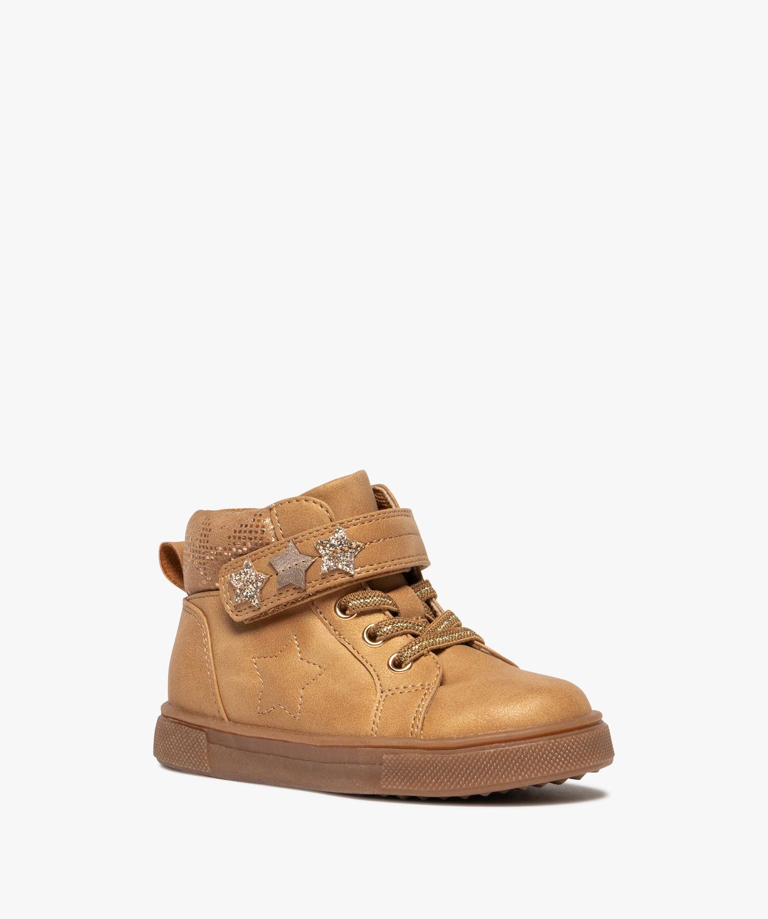 La tendance mid-cut s'adresse aussi aux petites filles ! Avec de jolis détails pailletés, un scratch décoré d'étoiles et une autre surpiquée sur le côté, ces baskets pour fille ont de quoi plaire. Confortables, elles s'équipent d'un col, d'une languette et d'une semelle intérieure moussés. Il ne reste plus qu'à enfiler une tenue de saison comme un jean et un perfecto ou un ensemble oversize uni et chausser ces baskets montantes. Fermeture à scratch + lacets élastiques.