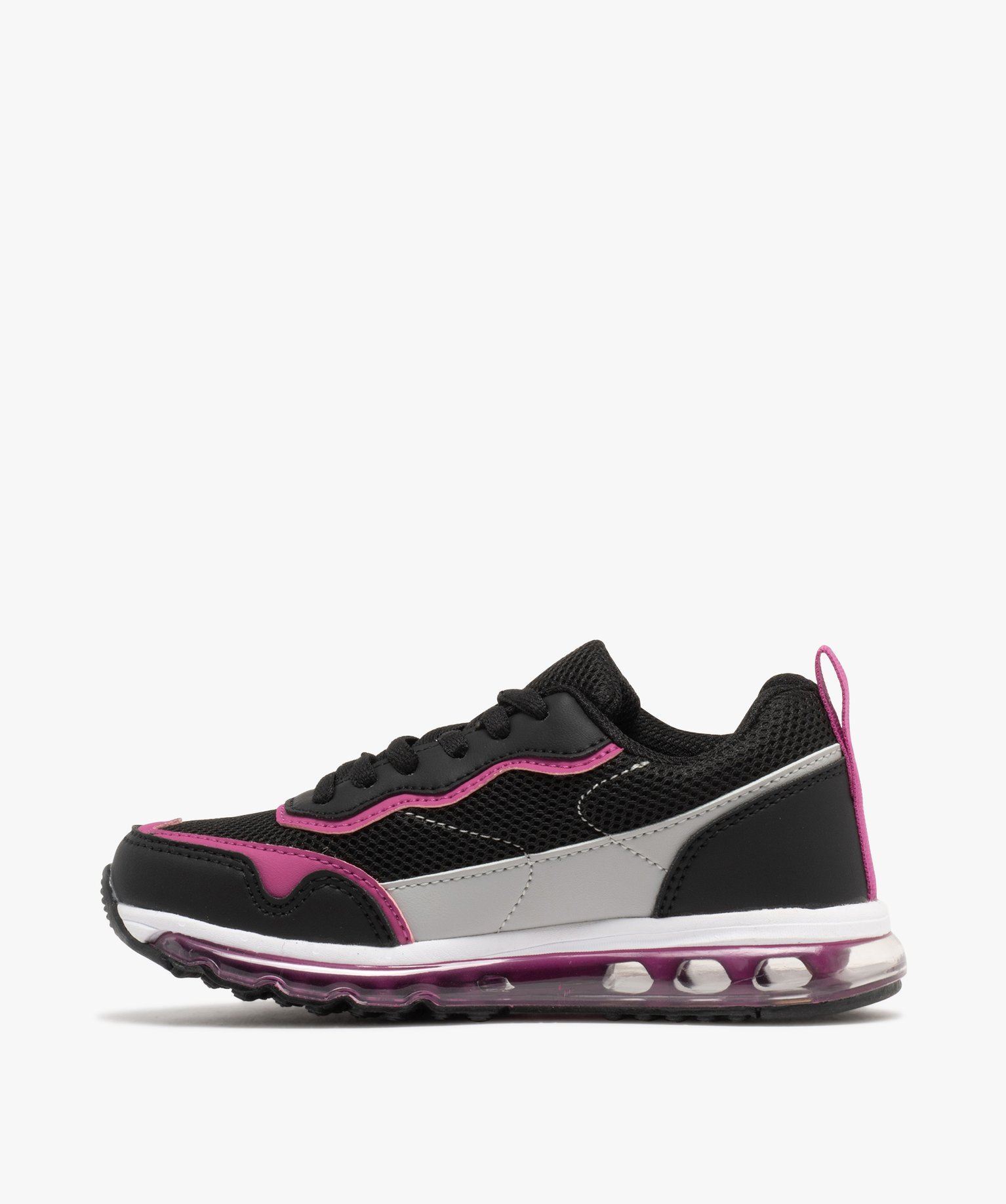 Pour se balader ou pour pratiquer leurs activités sportives préférées, ces baskets pour fille sont dotées d'une semelle à bulle sur toute la longueur de la chaussure. Des détails colorés contrastent et donnent du pep's à cette paire de running. La tige en mesh est renforcée l'avant et sur les côtés pour davantage de robustesse. Ces chaussures pour fille se portent avec un ensemble de jogging confortable et girly. Fermeture à lacets 6 oeillets.