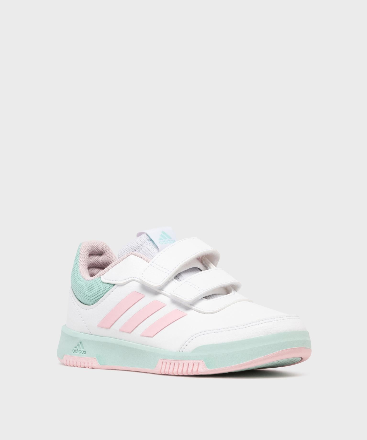 Dans cette version aux couleurs tendres, inspirée des crèmes glacées, les baskets Adidas Tensor Sport 2.0 ajouteront une fraîche et dynamique aux tenues sportswear des jeunes fashionistas. Confectionnées en matière grainée cuir imitation, elles affichent les trois bandes signatures de la marque en contraste sur le côté externe du pied et sous forme de perforations sur la face interne. Ces baskets fille sont dotées d’une doublure rembourrée au niveau de la cheville, offrant un maximum de confort. Fermées par deux brides à scratch, ces sneakers s’enfilent et se retirent en un clin d’oeil !