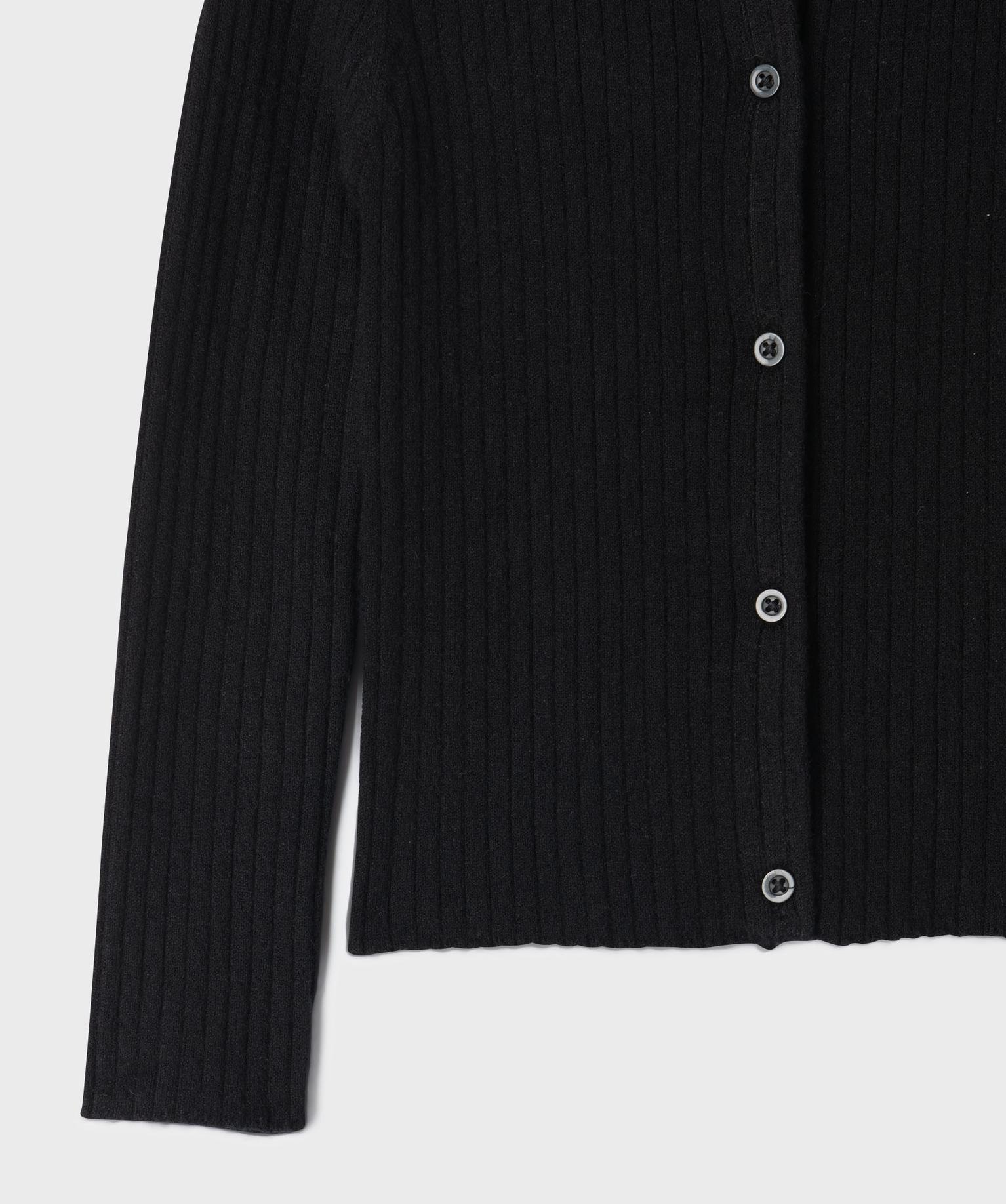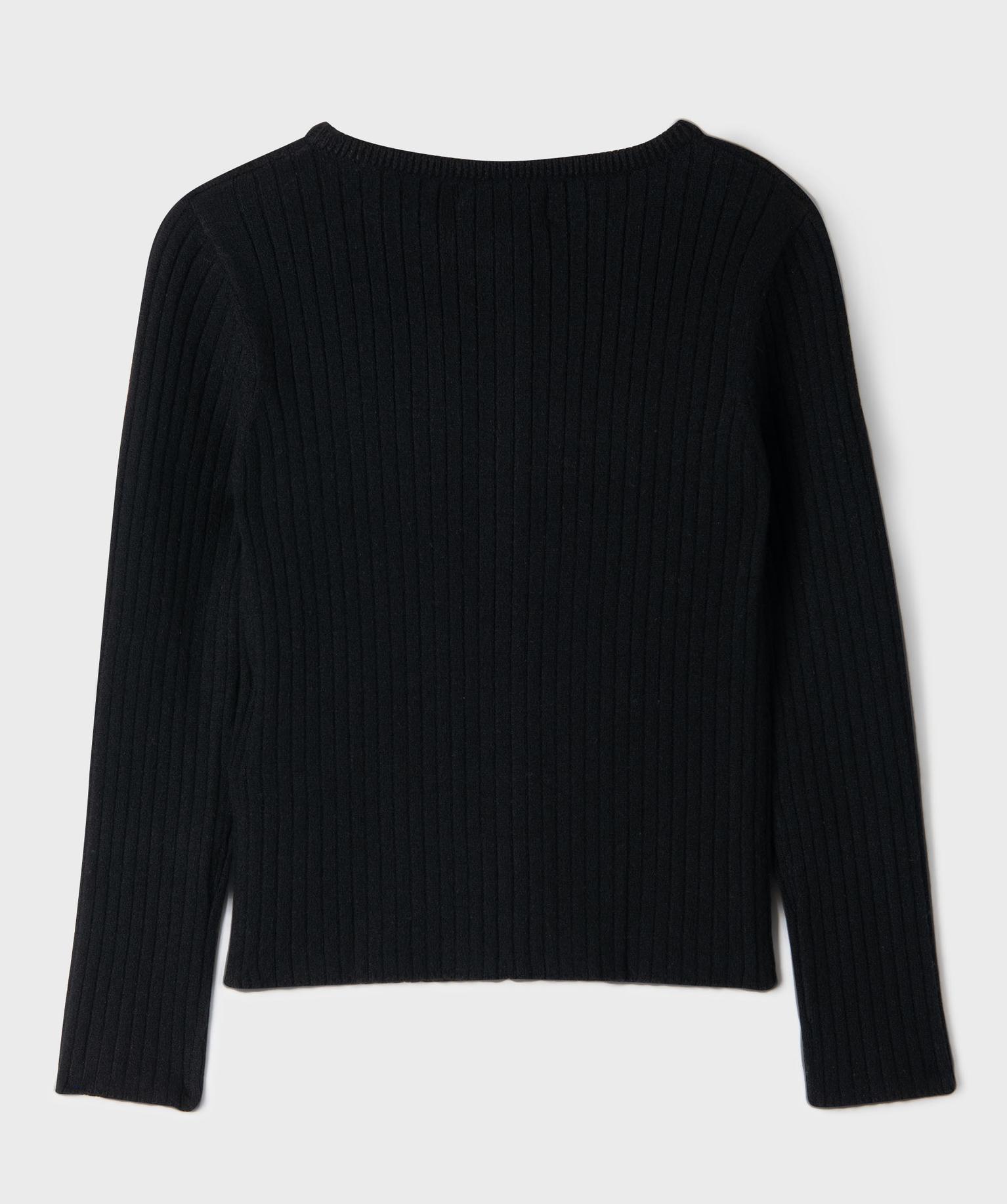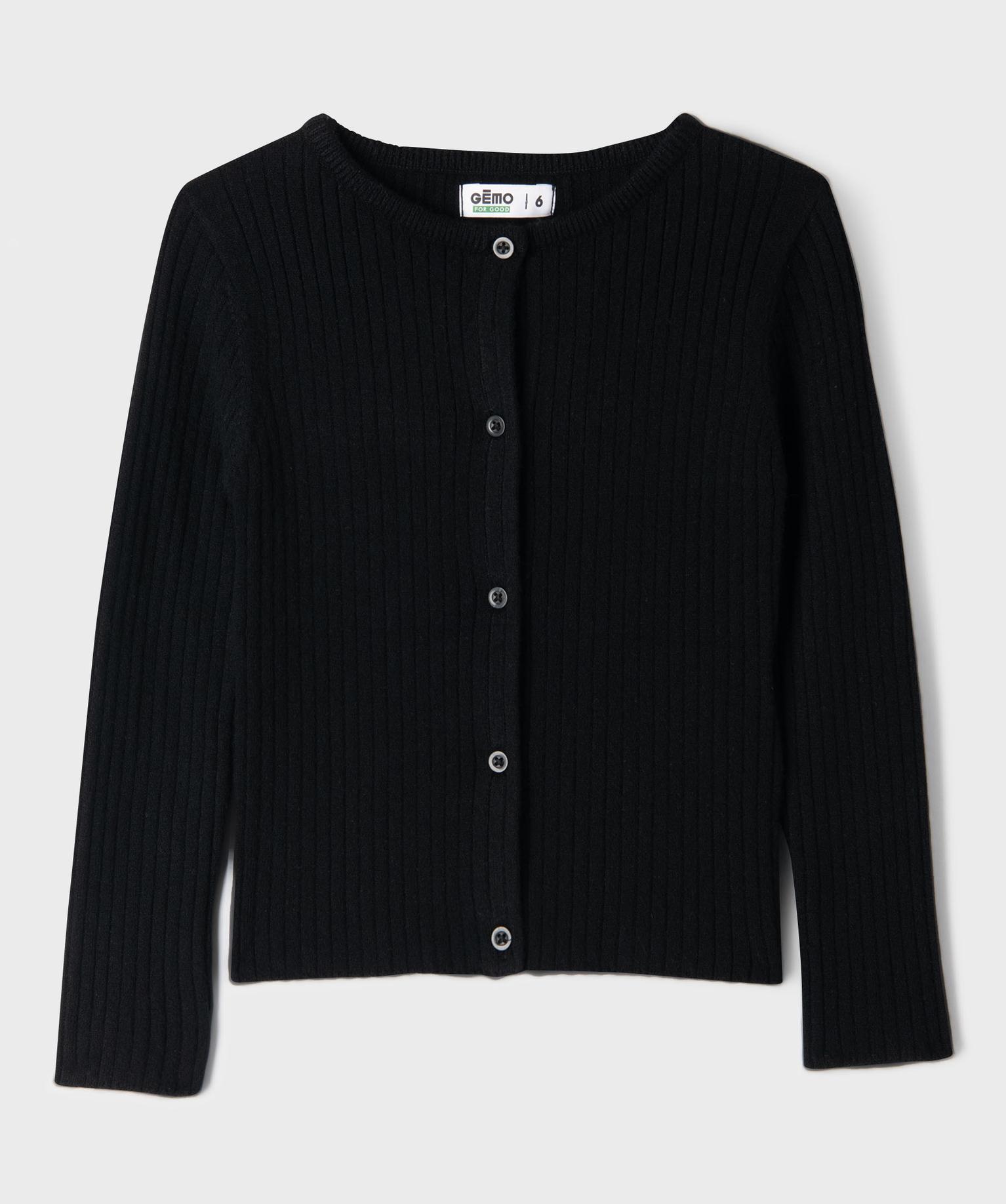 gilet en maille cotelee coupe ajustee fille noir standard gilets
