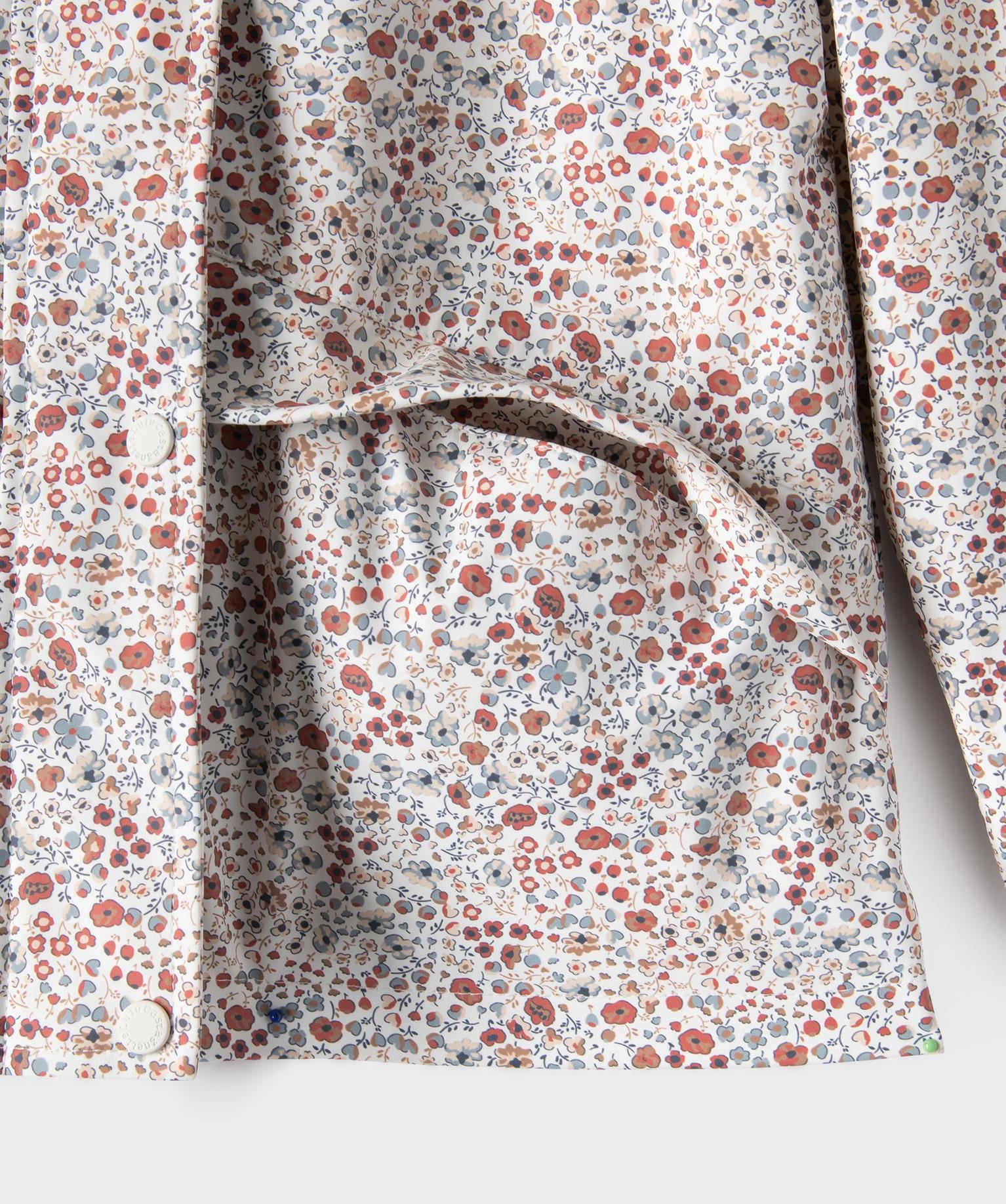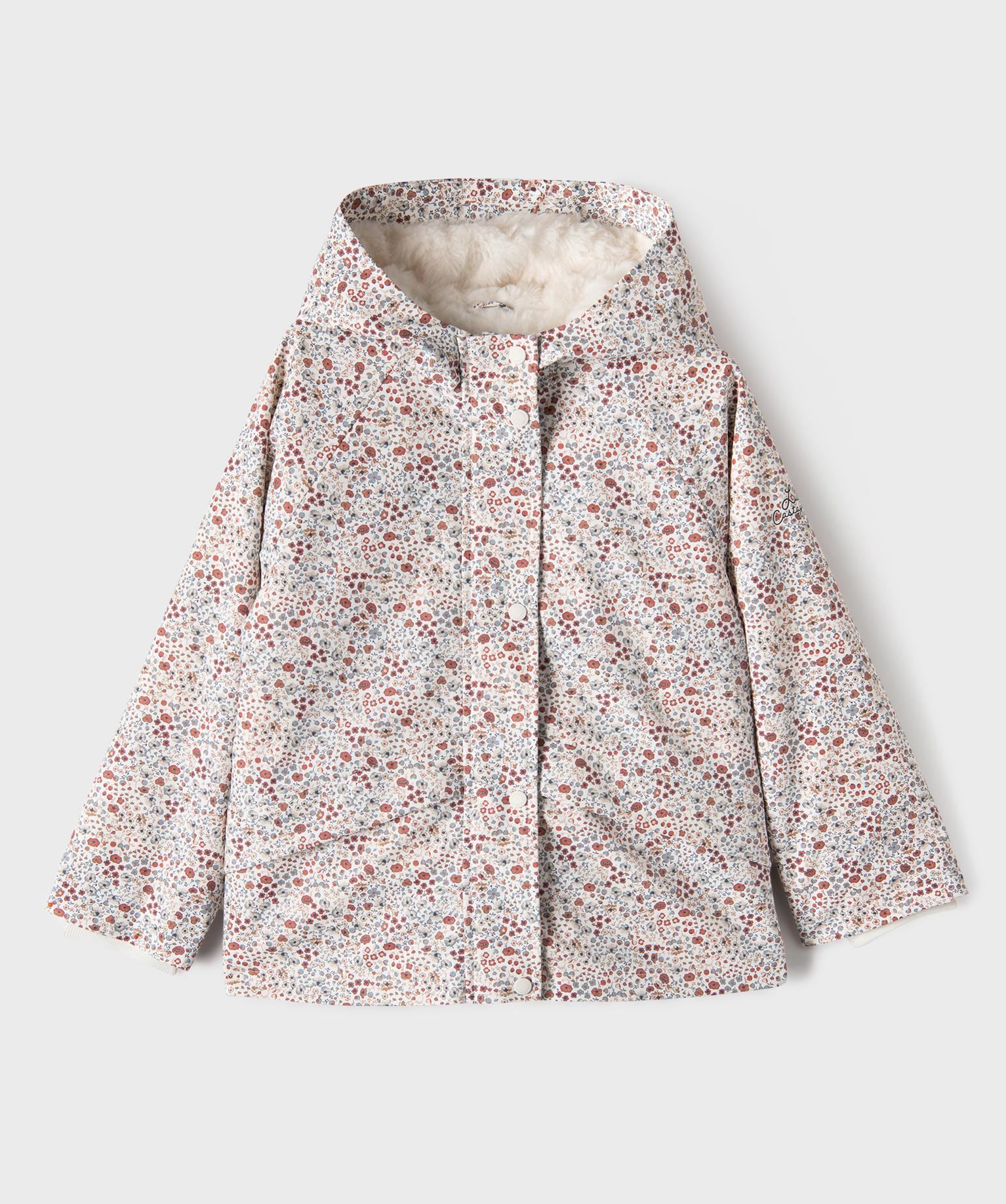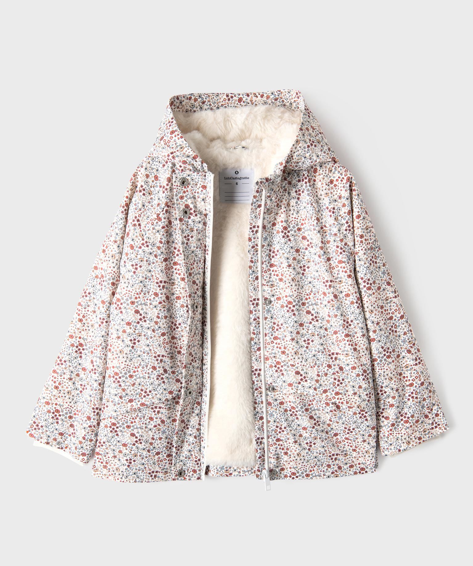 Ce sublime imperméable LuluCastagnette protégera efficacement les filles contre la pluie tout en ajoutant une délicate touche de romantisme à leurs looks. Confectionné dans une matière déperlante parsemée de petits motifs fleuris, cet imperméable fille possède une doublure chaude en fourrure imitation sur le buste et dans la capuche. Les manches sont doublées d’une matière finement matelassée et dotées de manchons en bord-côte aux poignets. Ce manteau se ferme par un zip sous patte pressionnée et possède deux poches à rabat sur l’avant.