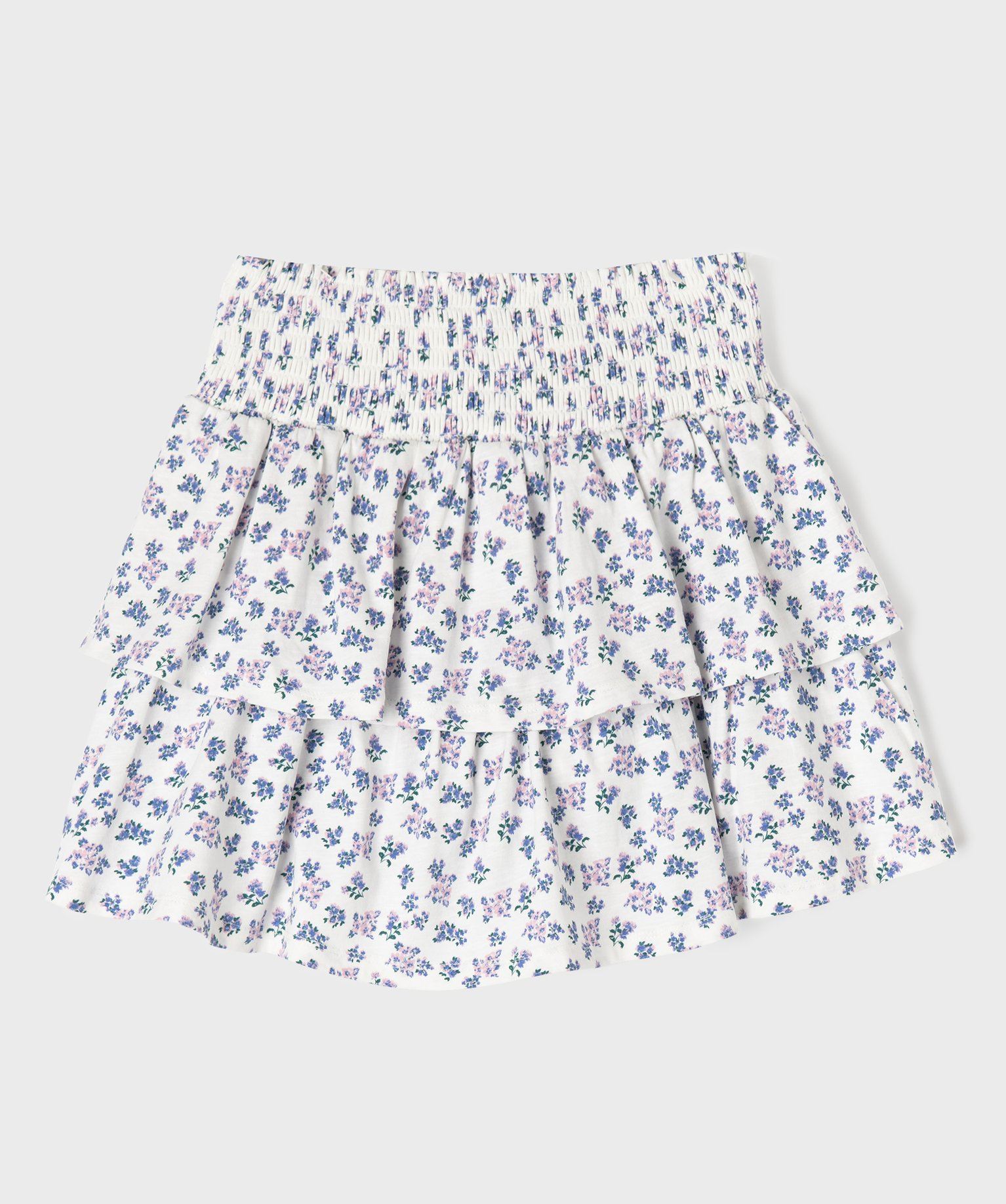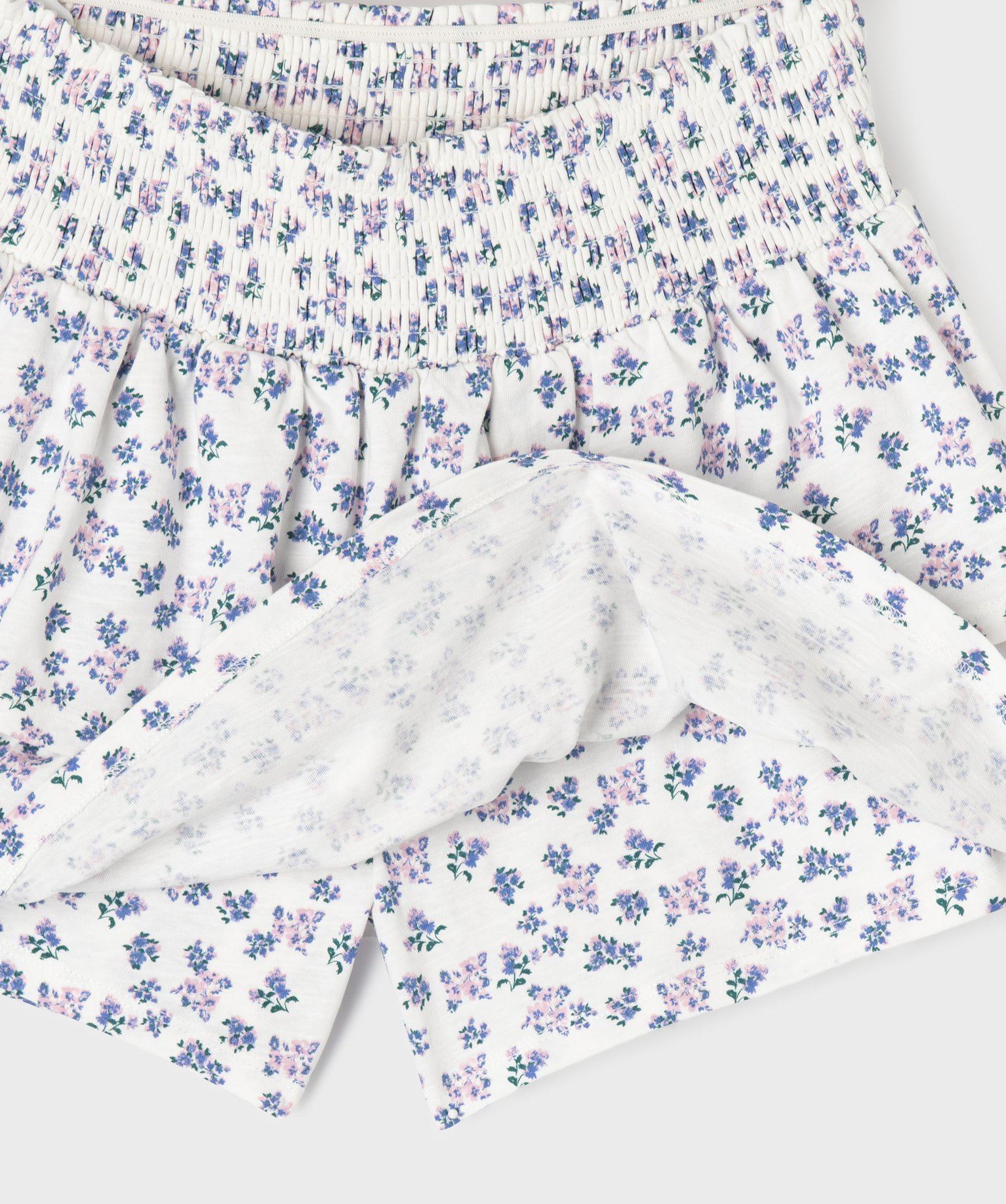 Pour un look girly et un confort optimal en été, offrez à votre enfant cette ravissante jupe-short pour fille ! Une jupe courte et ample avec de larges volants sous lesquels se cache un short très pratique. La jupe-short s'enfile en un clin d'œil et reste super confortable grâce à sa large ceinture à smocks. Une jupe-short fleurie à porter avec un crop top uni et des ballerines pour une silhouette girly !