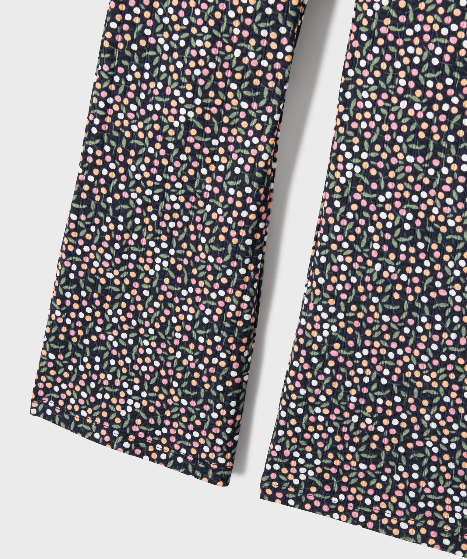 Donnez un coup de frais au legging classique : adoptez le legging flare, la coupe tendance du moment ! Le legging flare est parfaitement ajusté à la taille et aux hanches, il est évasé en bas des jambes. Une coupe inspirée des années 70 et du bootcut. Le legging fille est confectionné dans une maille à larges côtes rehaussée d'un adorable motif fleuri. Il s’enfile facilement et reste confortable toute la journée grâce à son large élastique plat à la taille. Un chouette legging à porter avec un crop-top, une chemise ample ou un tee-shirt loose.